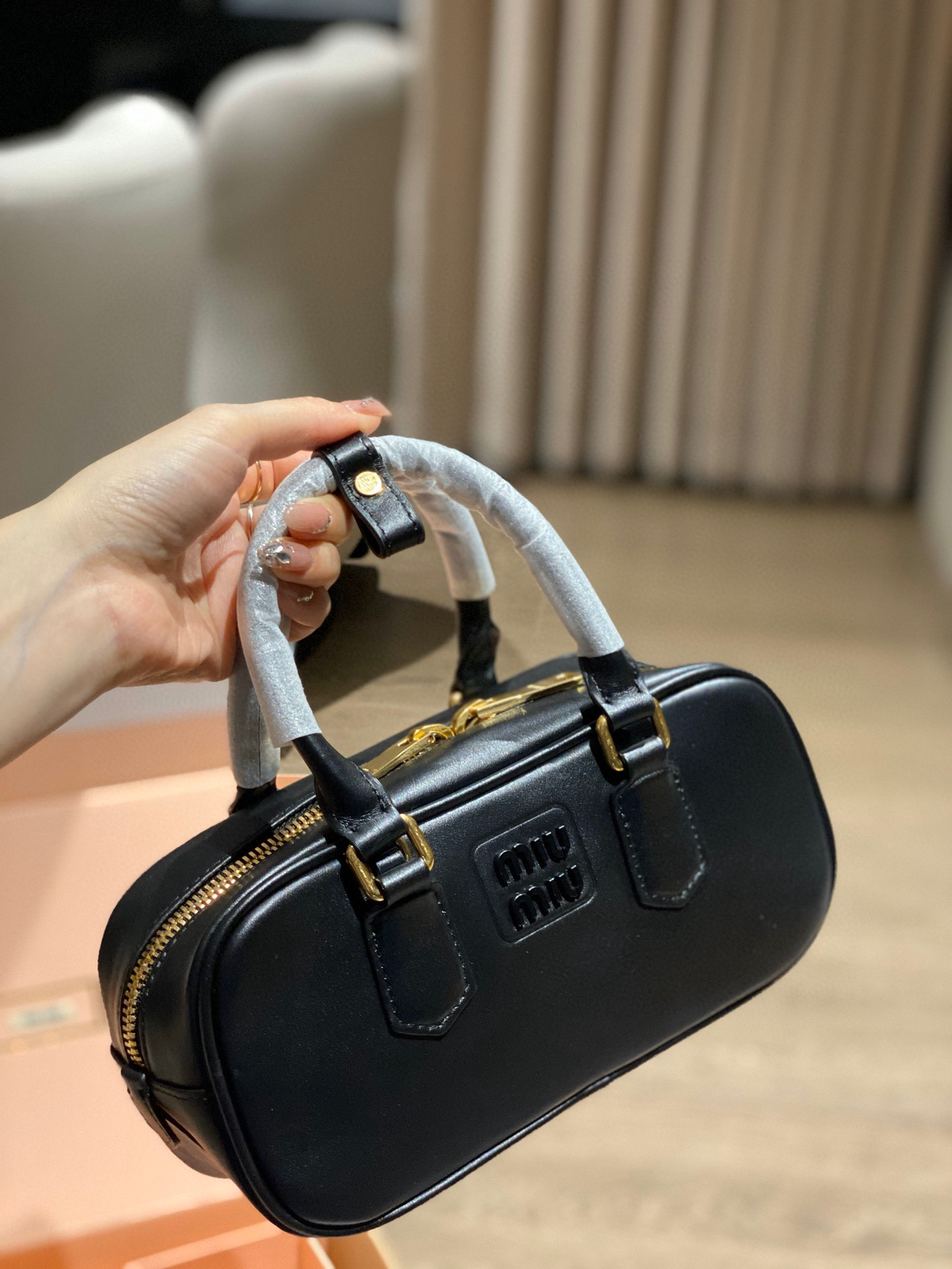 原单品质miumiu复古手提包-黑色