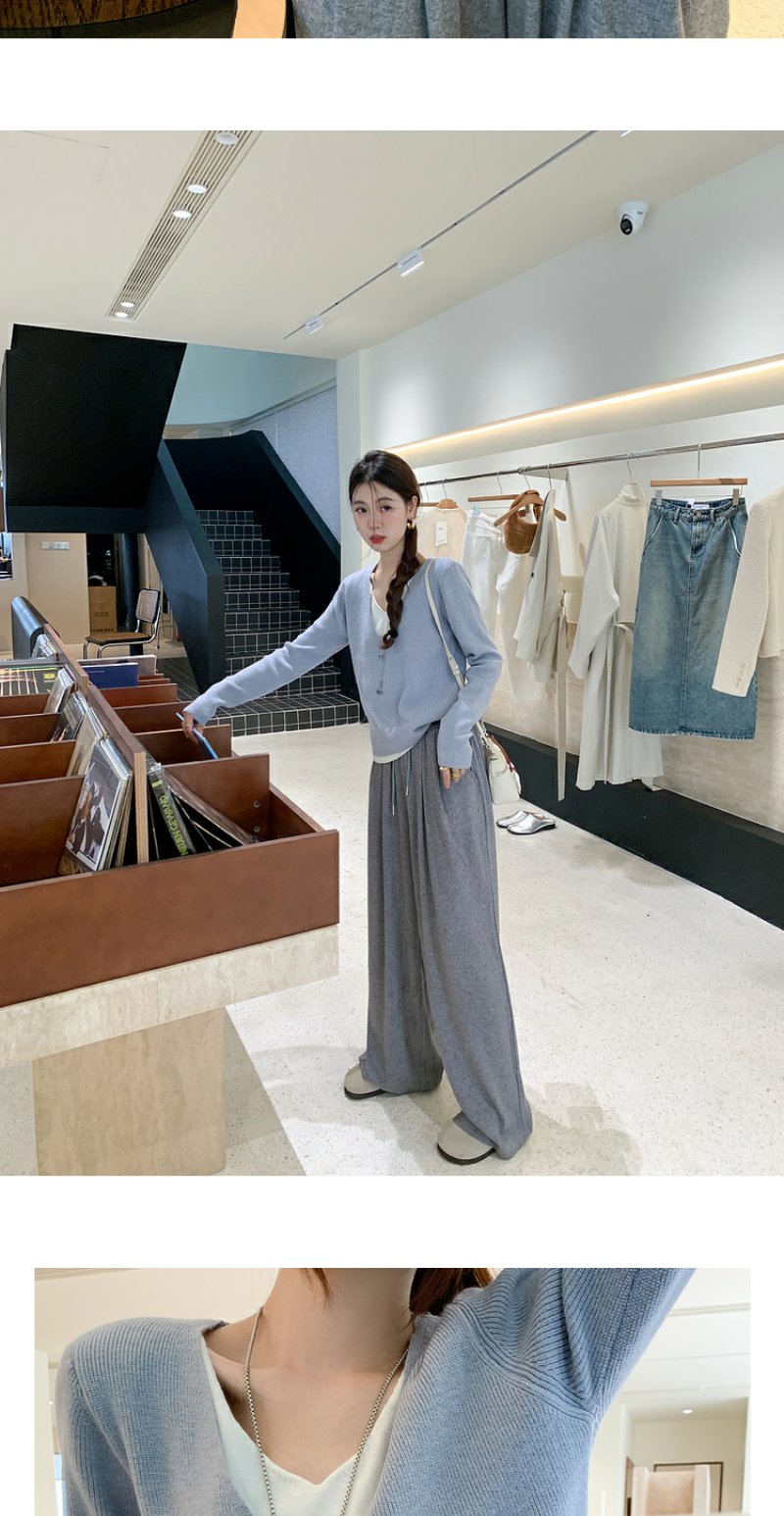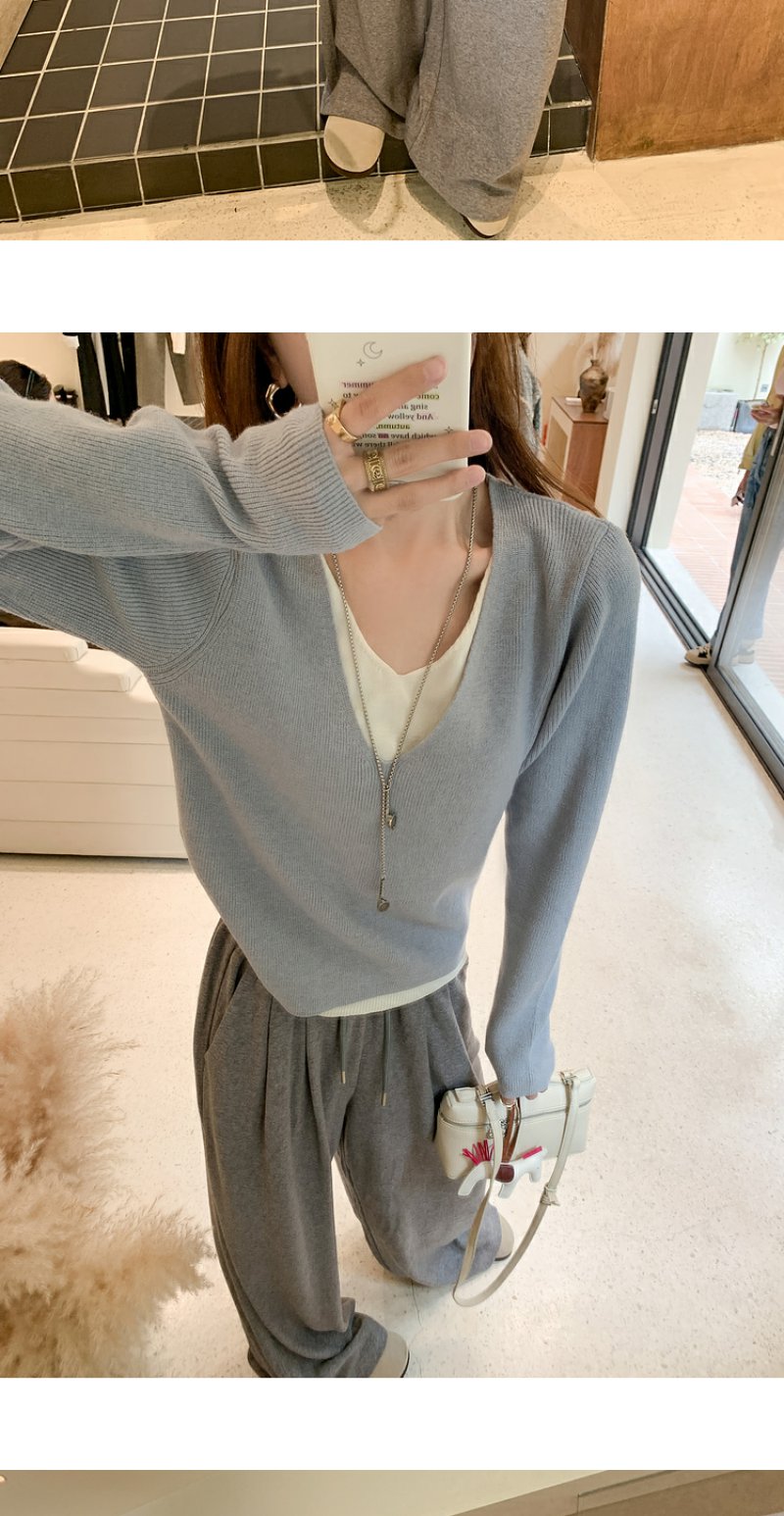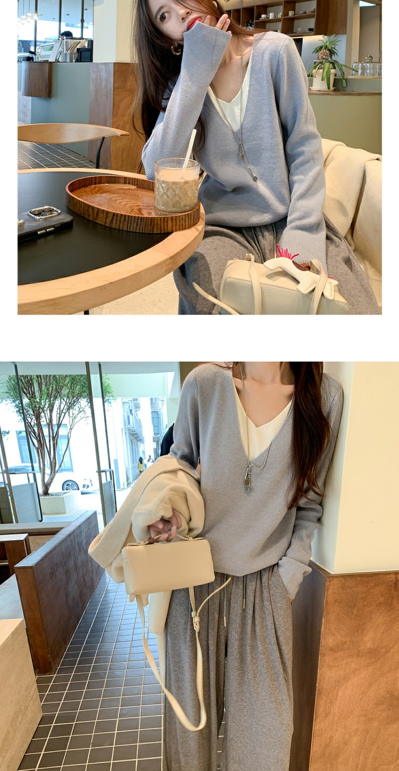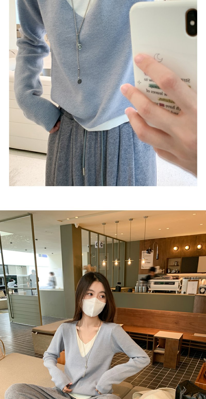<曾小咸推荐>韩系假两件V领蓝色长袖针织衫女