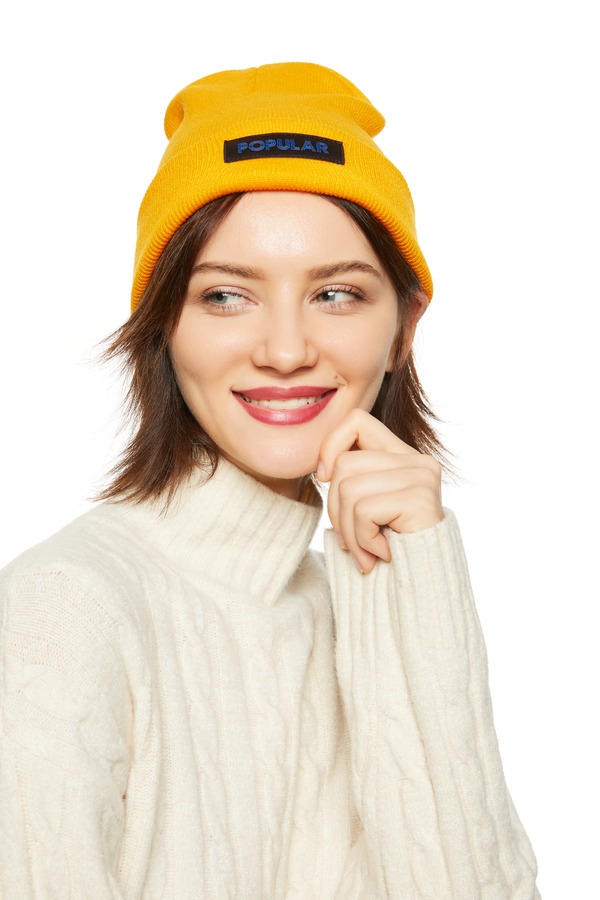 AVA 字母贴布橙色针织帽 8550