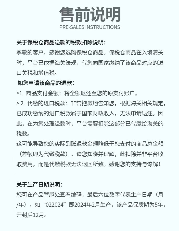 | 【重要说明】保税仓商品退款时已成功缴纳的金库税款无法退回! |