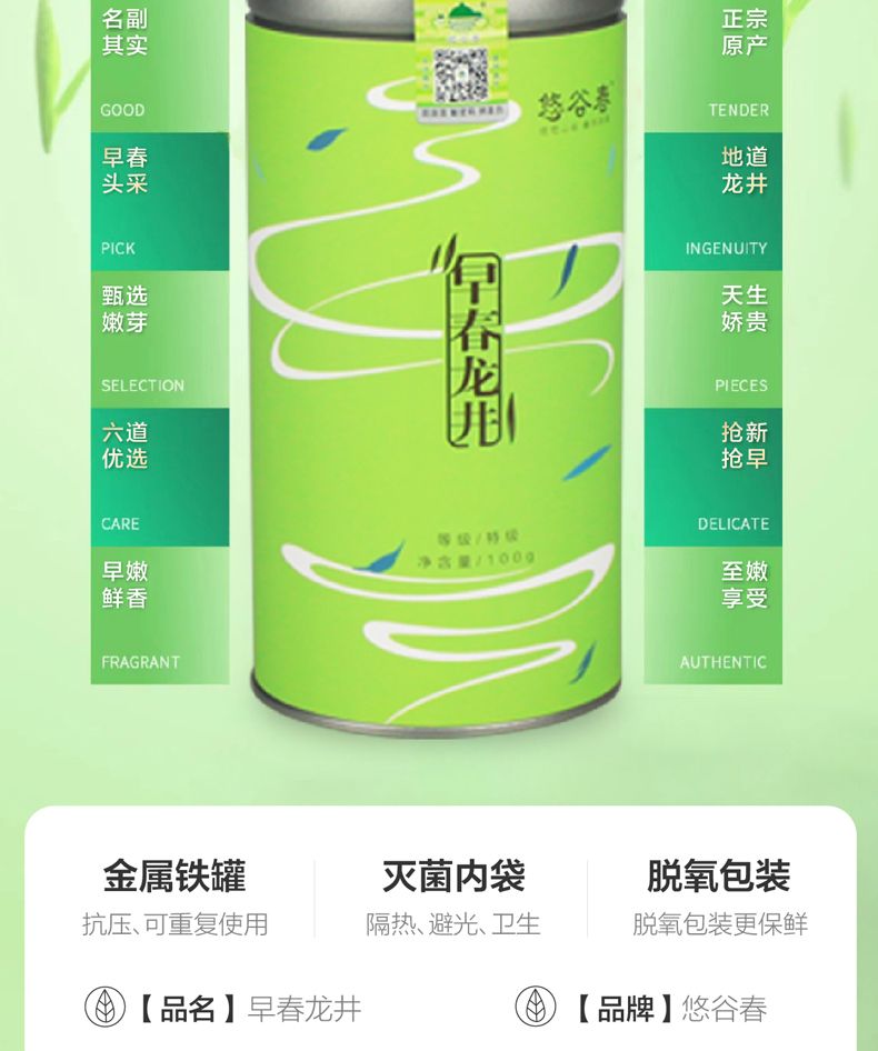 【2025年新茶!下单立即发货】悠谷春 特级 早春龙井 100g/罐(天猫同款)