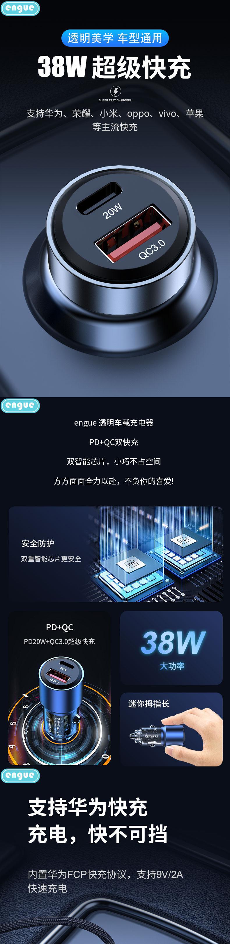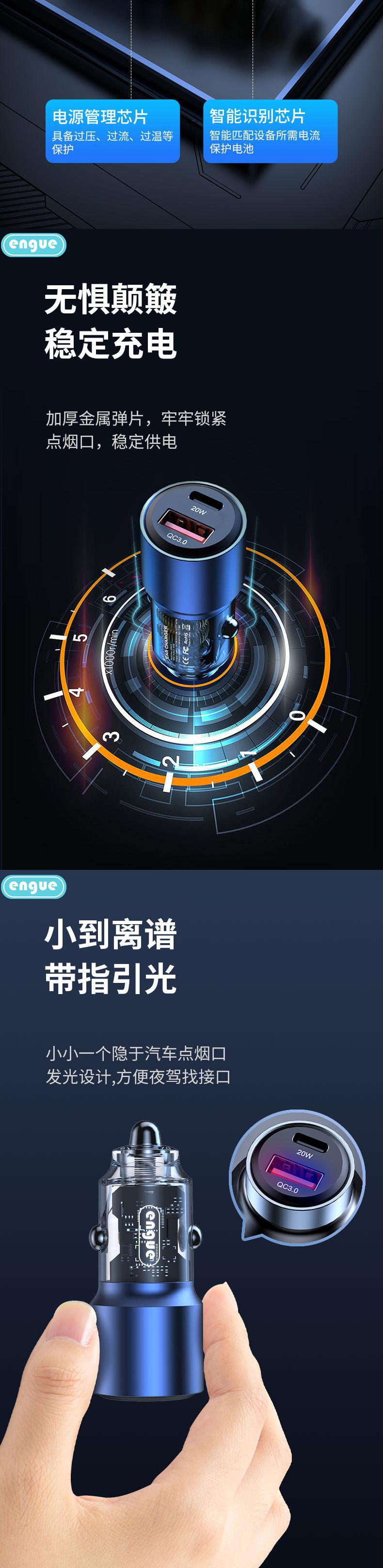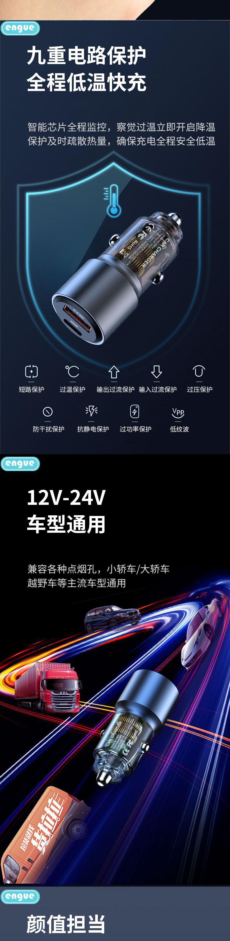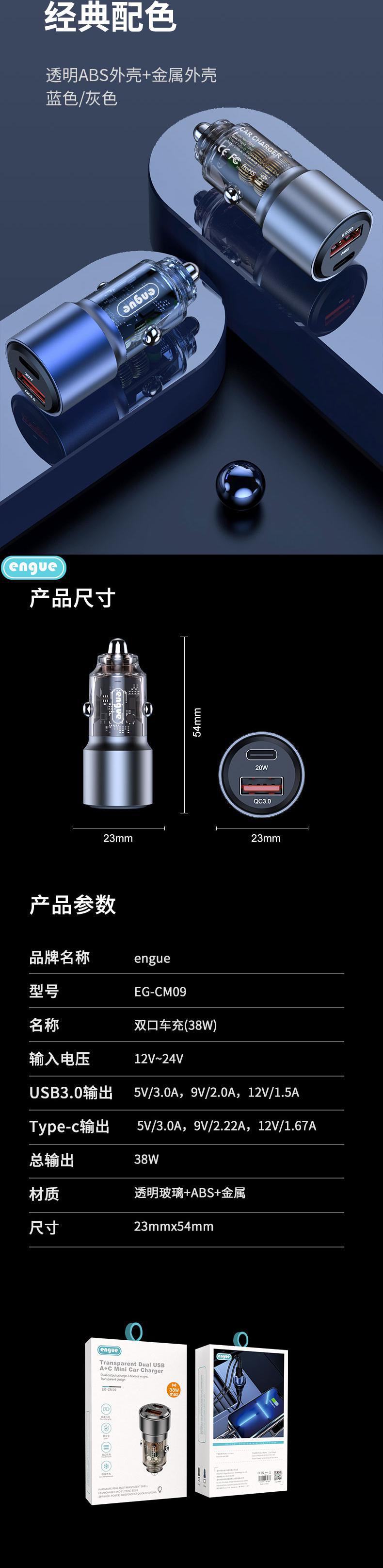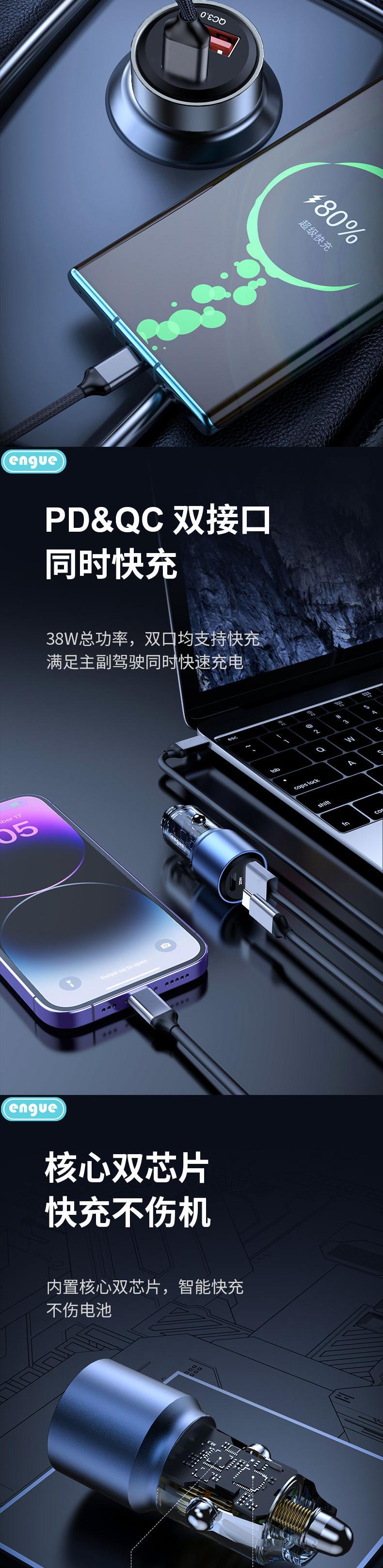 【自营】恩谷 乐途EG-CM09 /38WA+C 车载充电器双口快充苹果华为通用金属机身