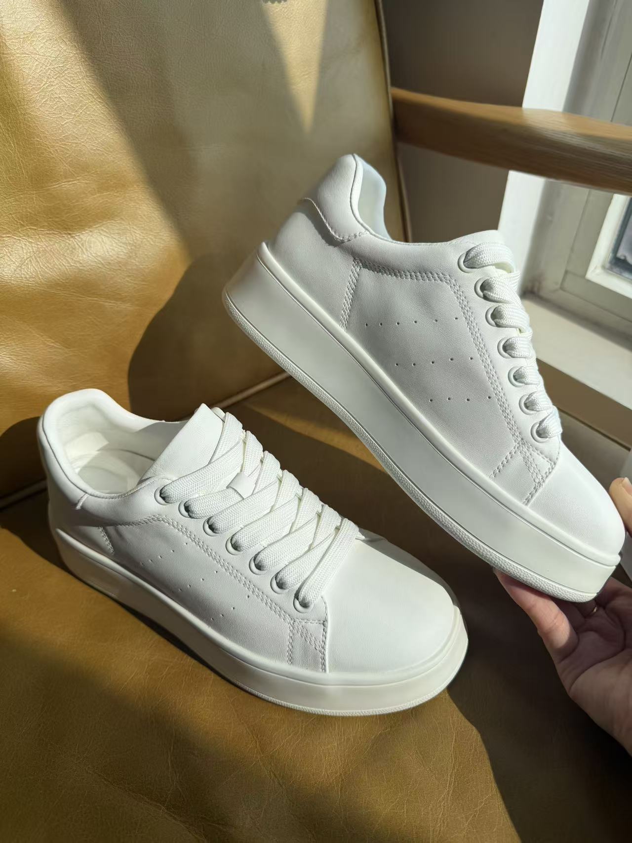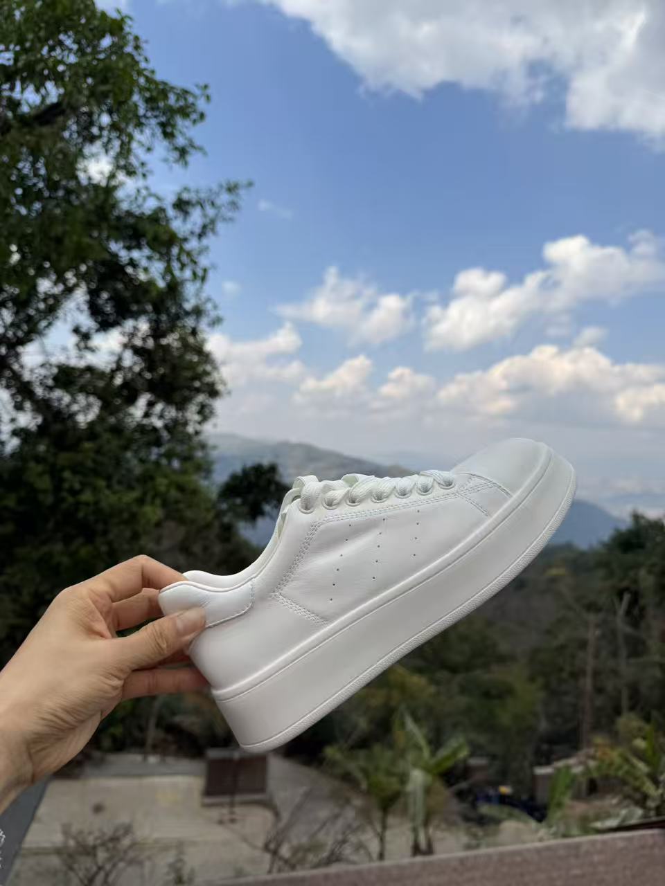 【春款定制真皮小白鞋】3.5cm超轻厚底、一双会呼吸的小白鞋~ 进口牛皮里层羊皮 柔软舒适 四季百搭