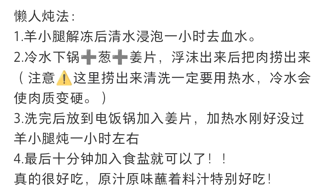 焦香;时间自己根据羊腿大小决定,不要太久,