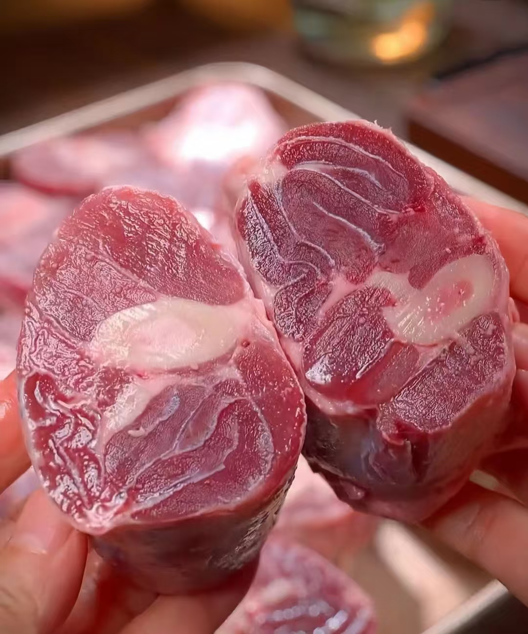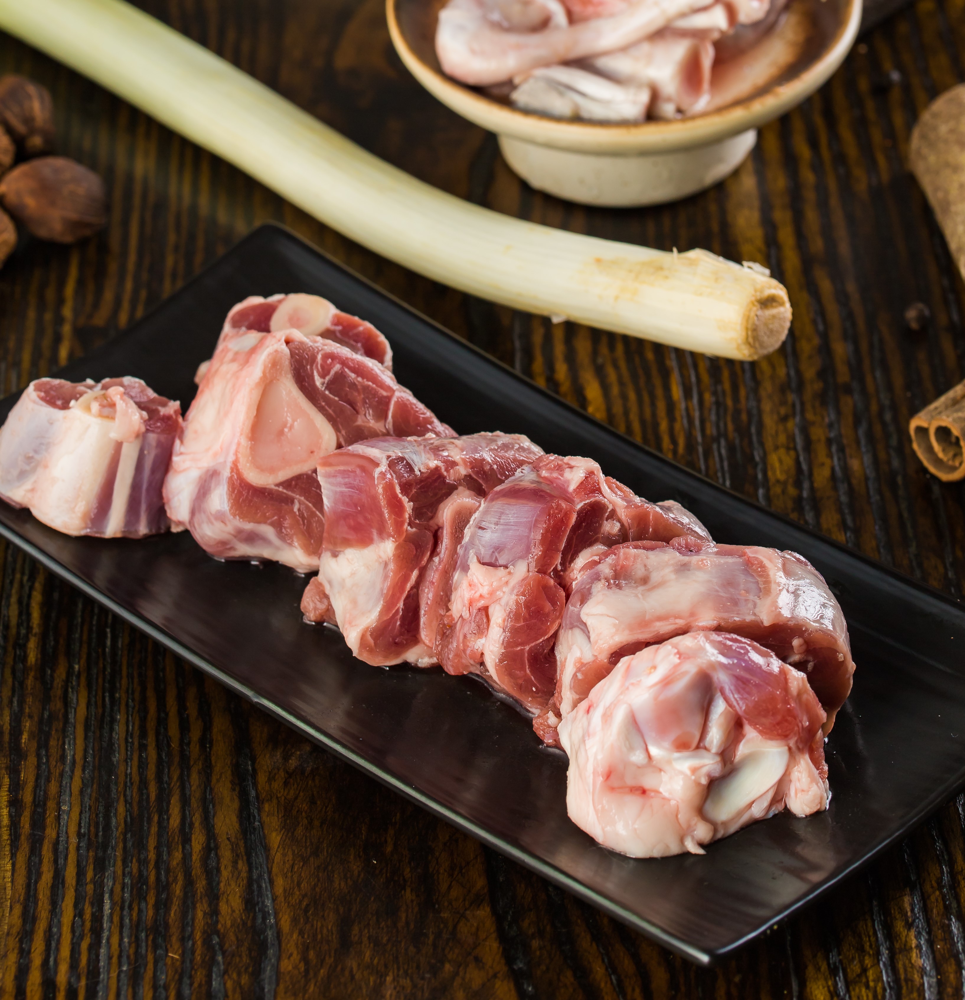 1、山野禾间小羊腿清洗干净,不需要泡水,表面的,筋膜也都不需要去掉