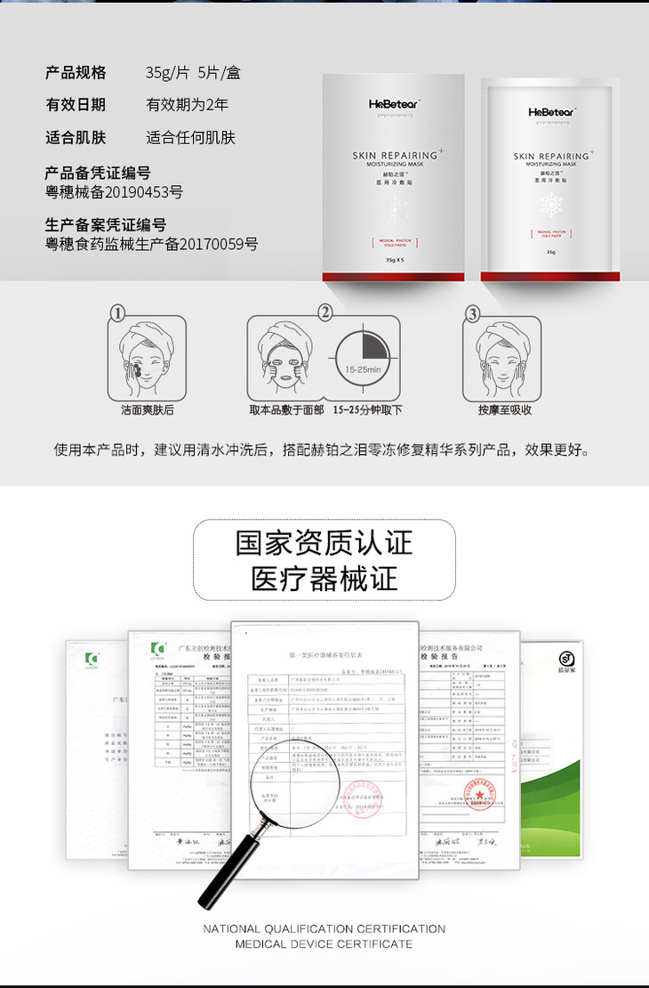 【已下架】5.8秒杀 | 赫铂之泪/HeBetear 高端修护医用冷敷贴5片/盒(不支持无理由退换)有效期至2022年10月[福利品]