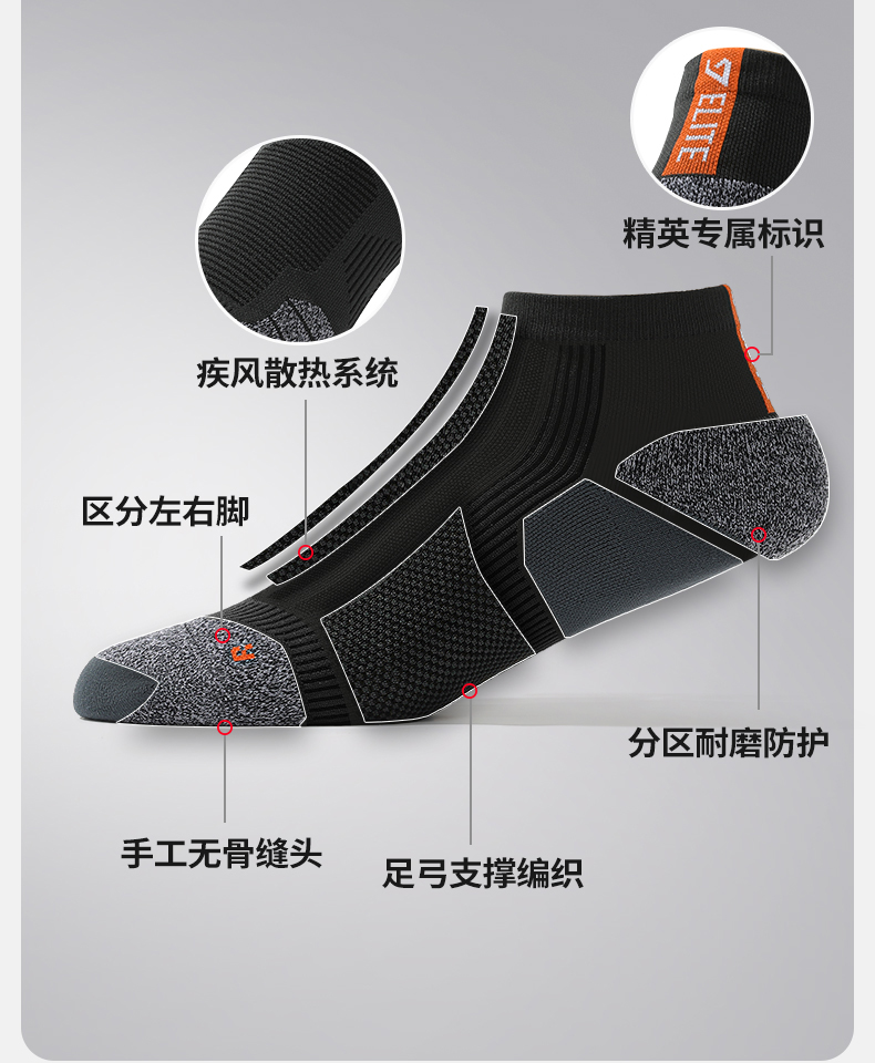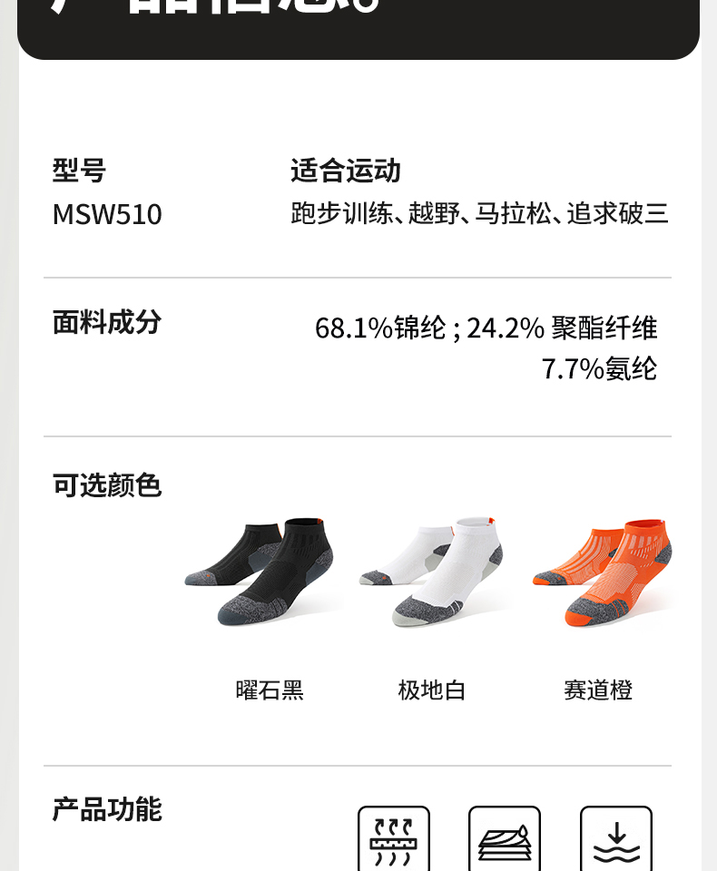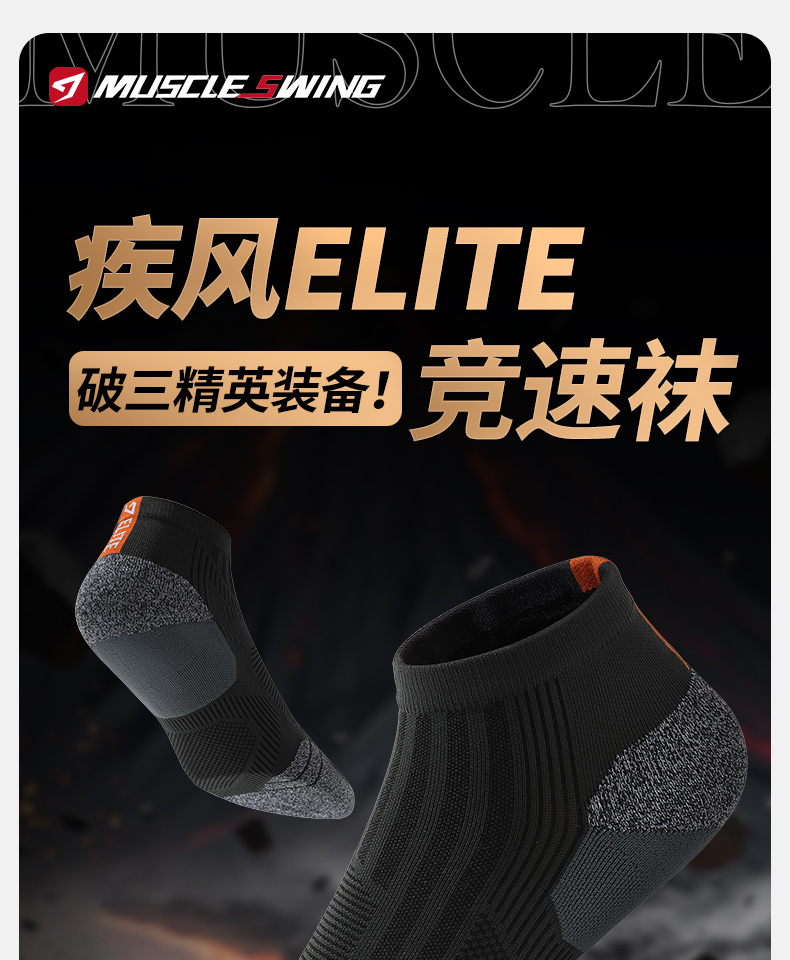 510肌动疾风春夏竞速跑步袜精英破三专业马拉松袜春夏短筒毛巾底运动袜子