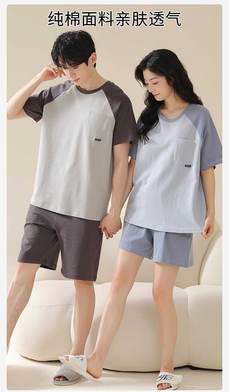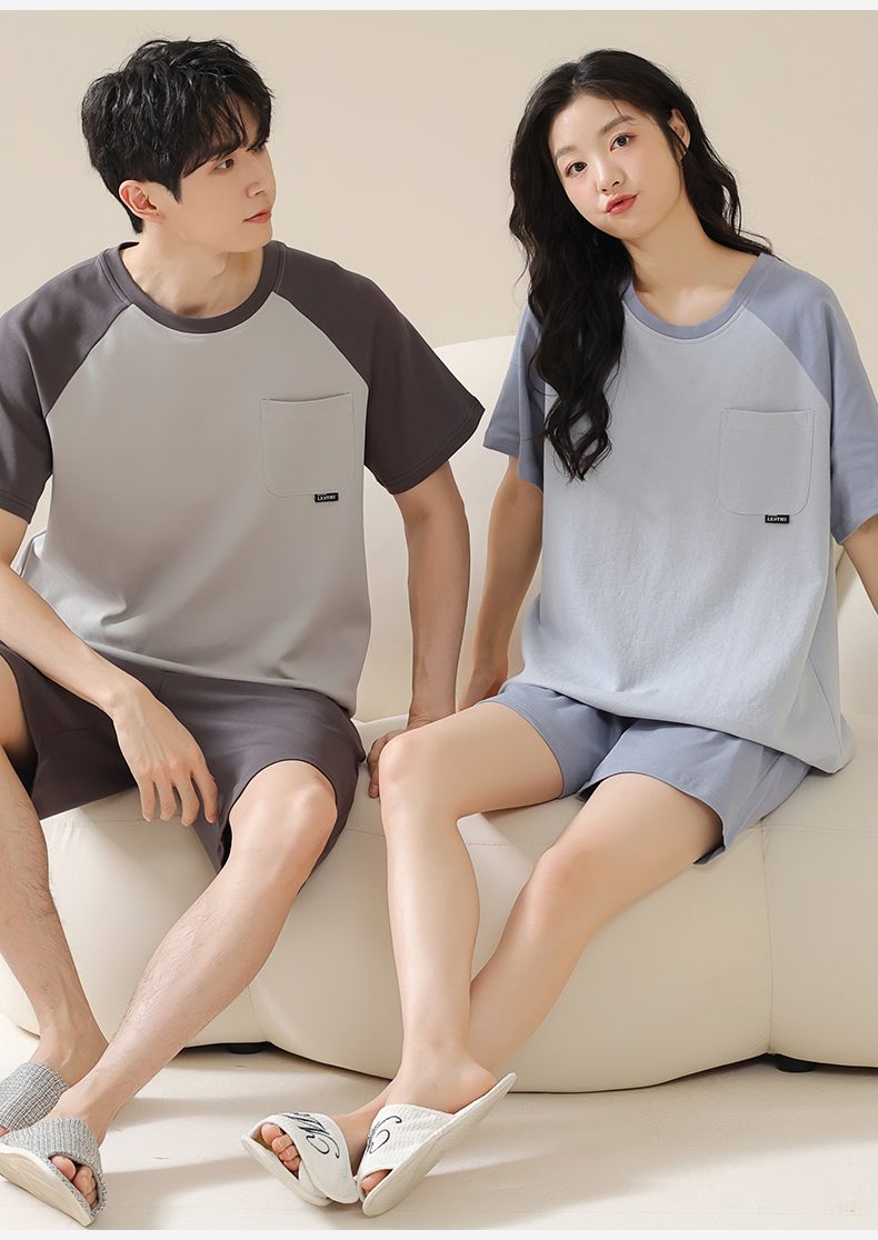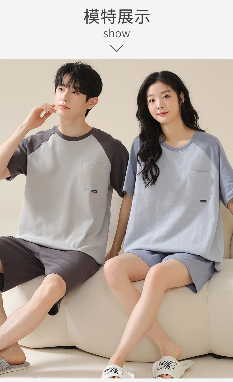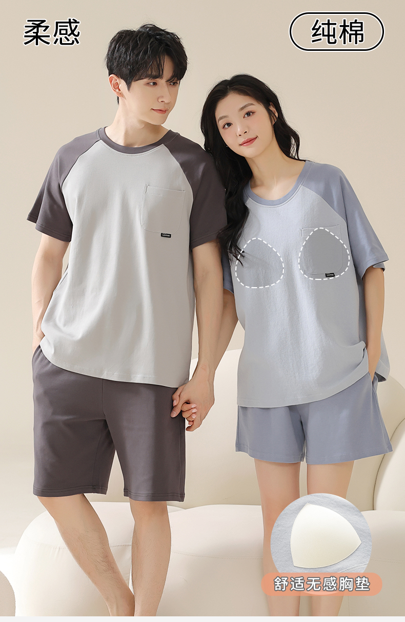 AILISCOCO纯棉拼色情侣家居服,舒适无感胸垫、亲肤透气【G】