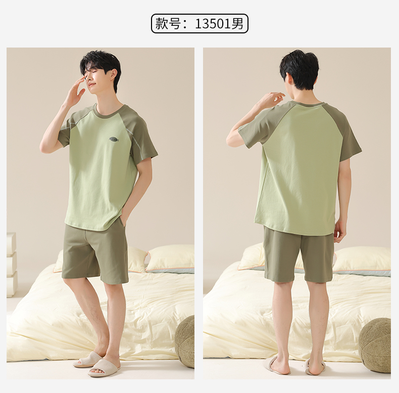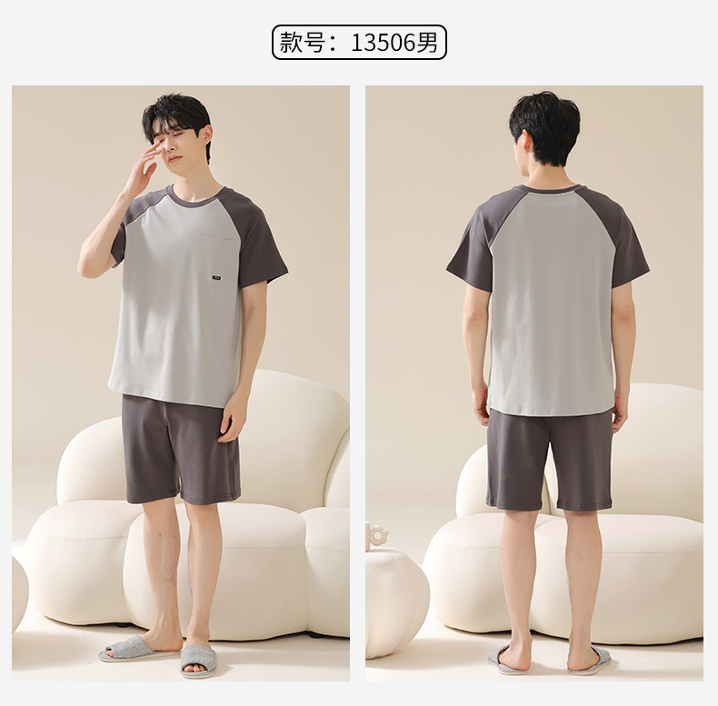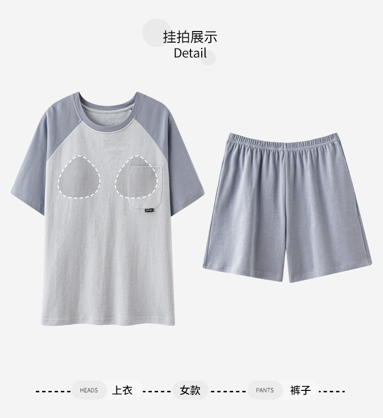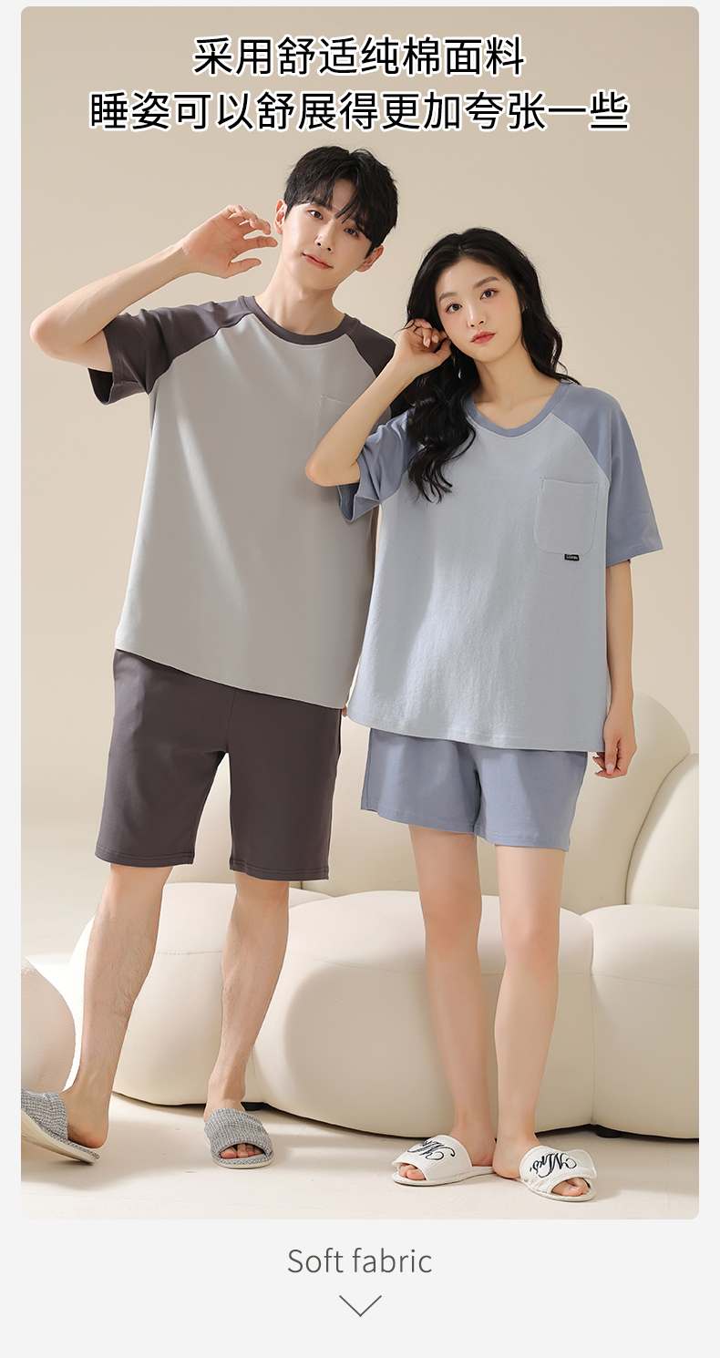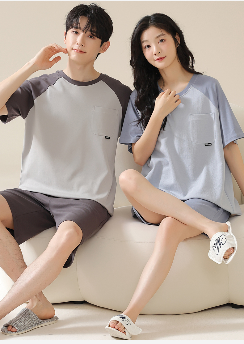 AILISCOCO纯棉拼色情侣家居服,舒适无感胸垫、亲肤透气【G】