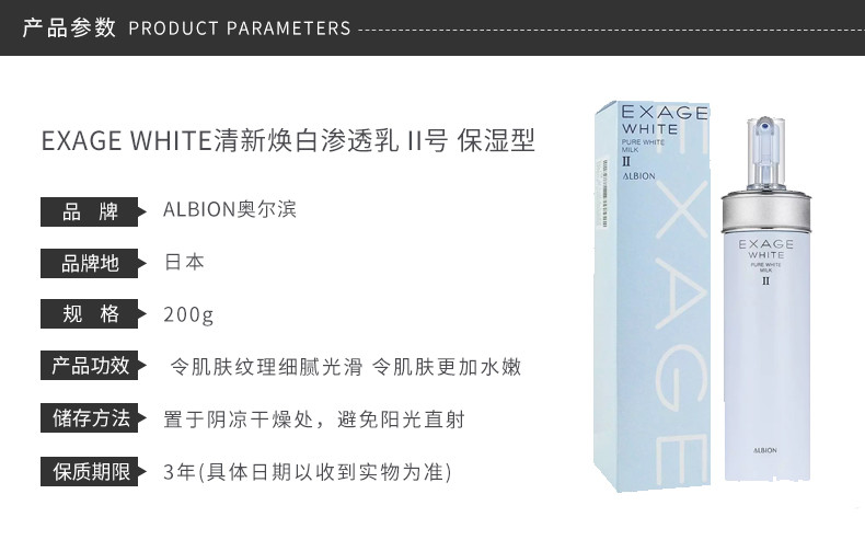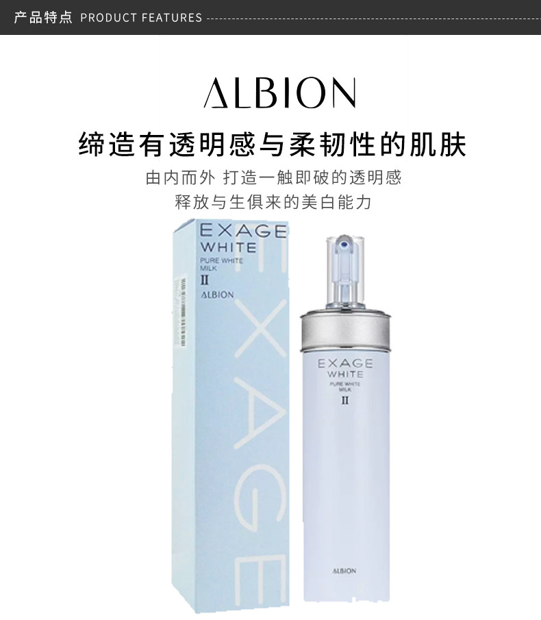 ALBION奥尔滨 EXAGE WHITE清新焕白渗透乳 II号 保湿型 200g 日本