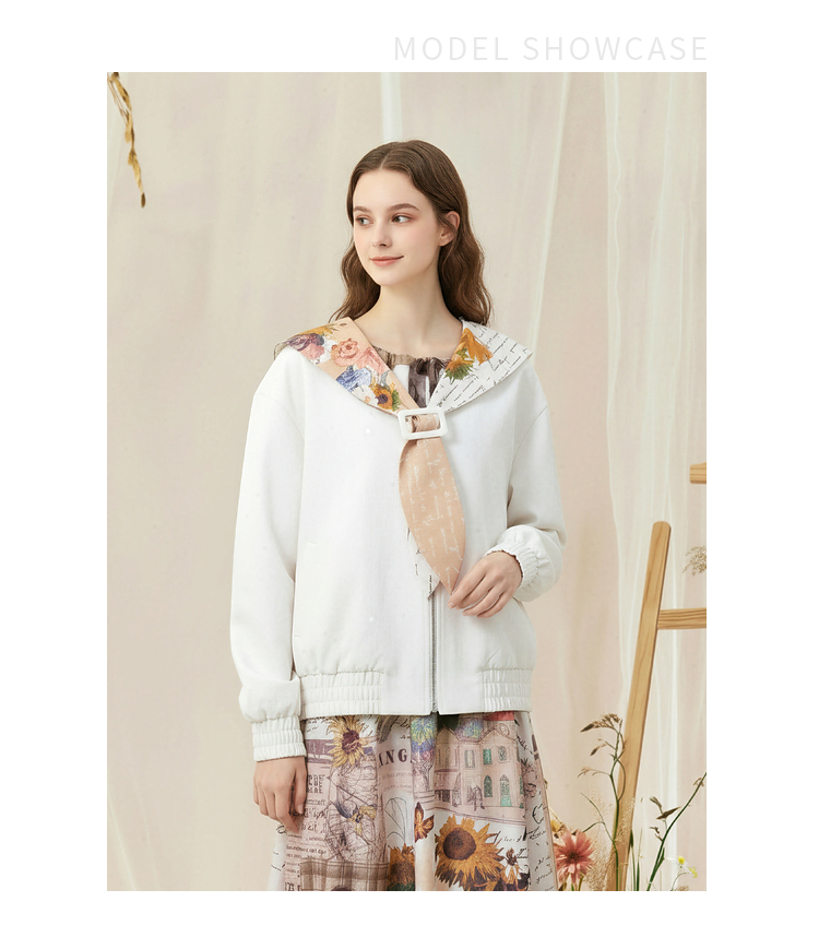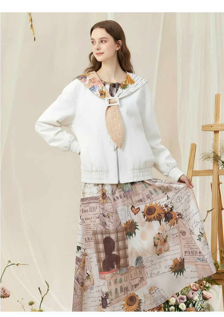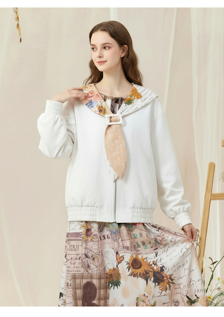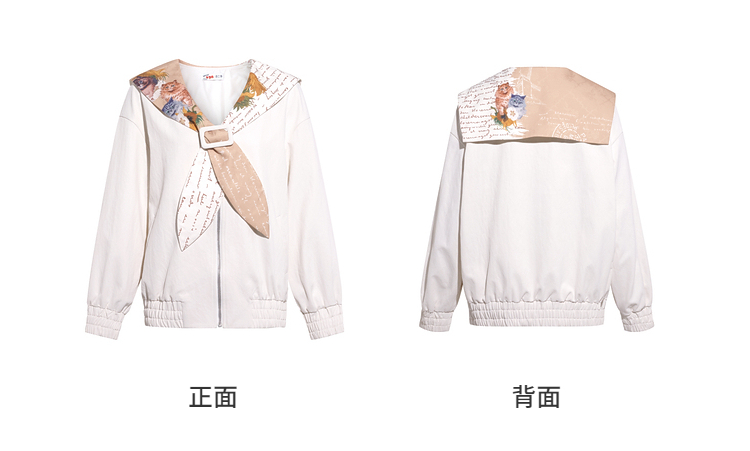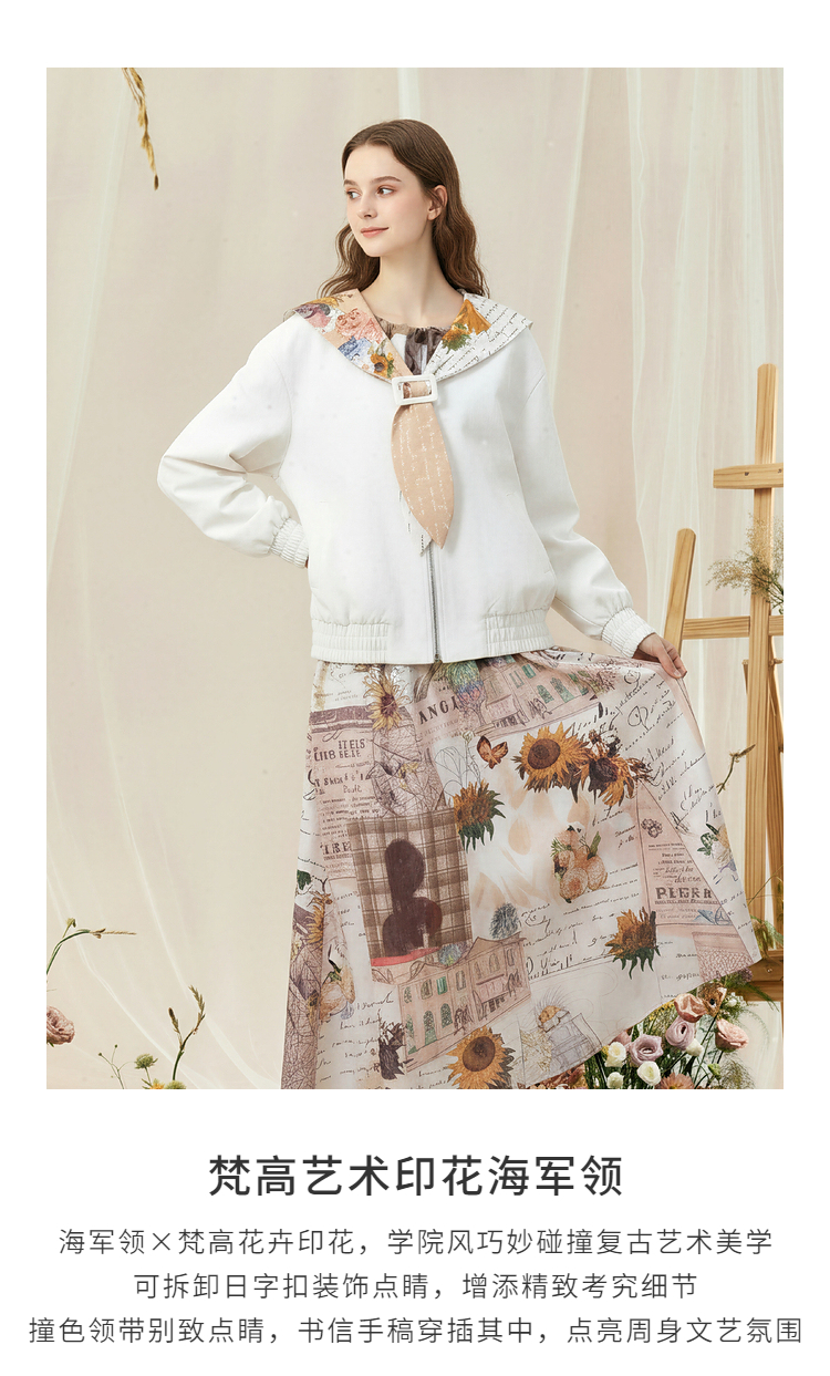 两三事梵高文艺 自在简意 2026春季新款可拆印花海军领拉链外套女