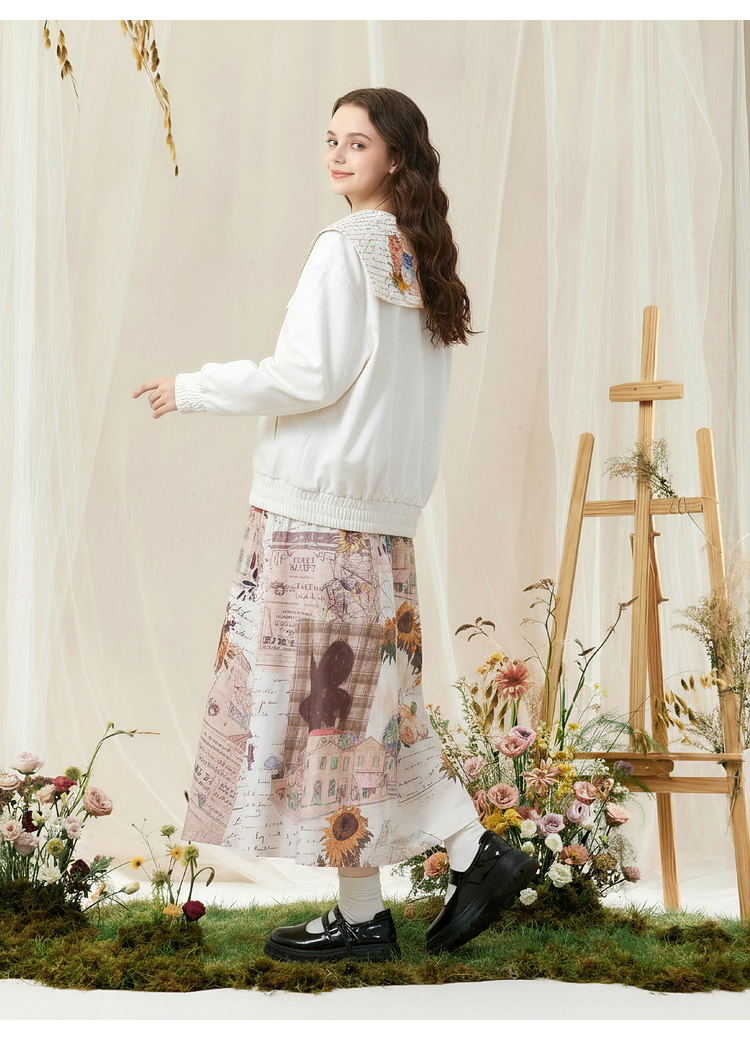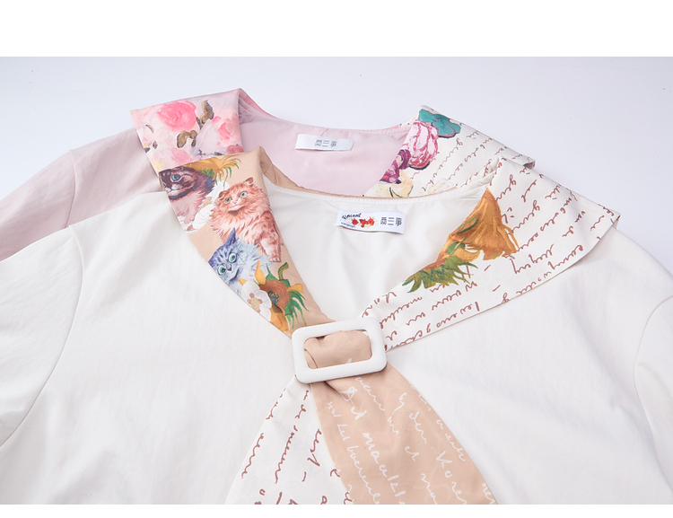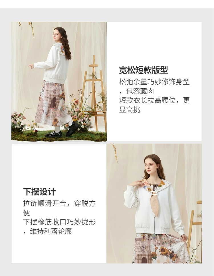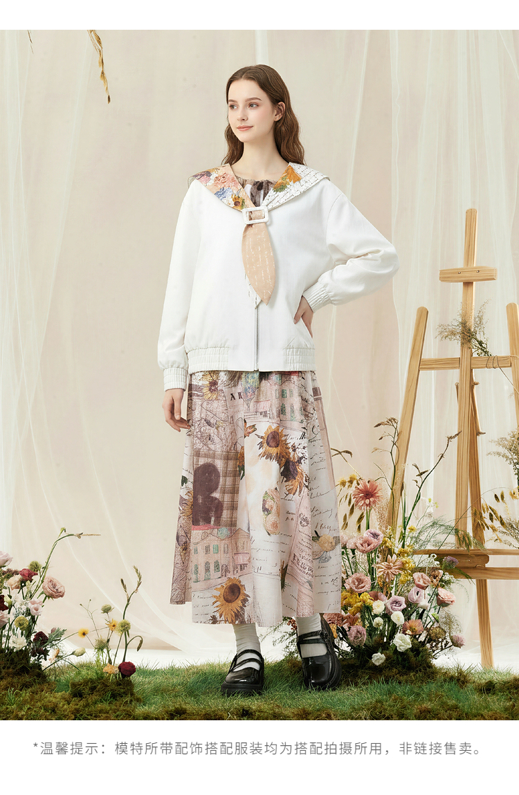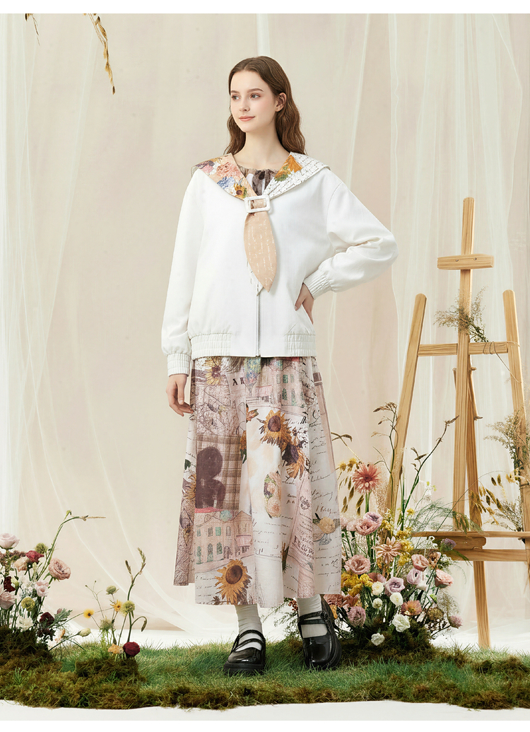 两三事梵高文艺 自在简意 2026春季新款可拆印花海军领拉链外套女