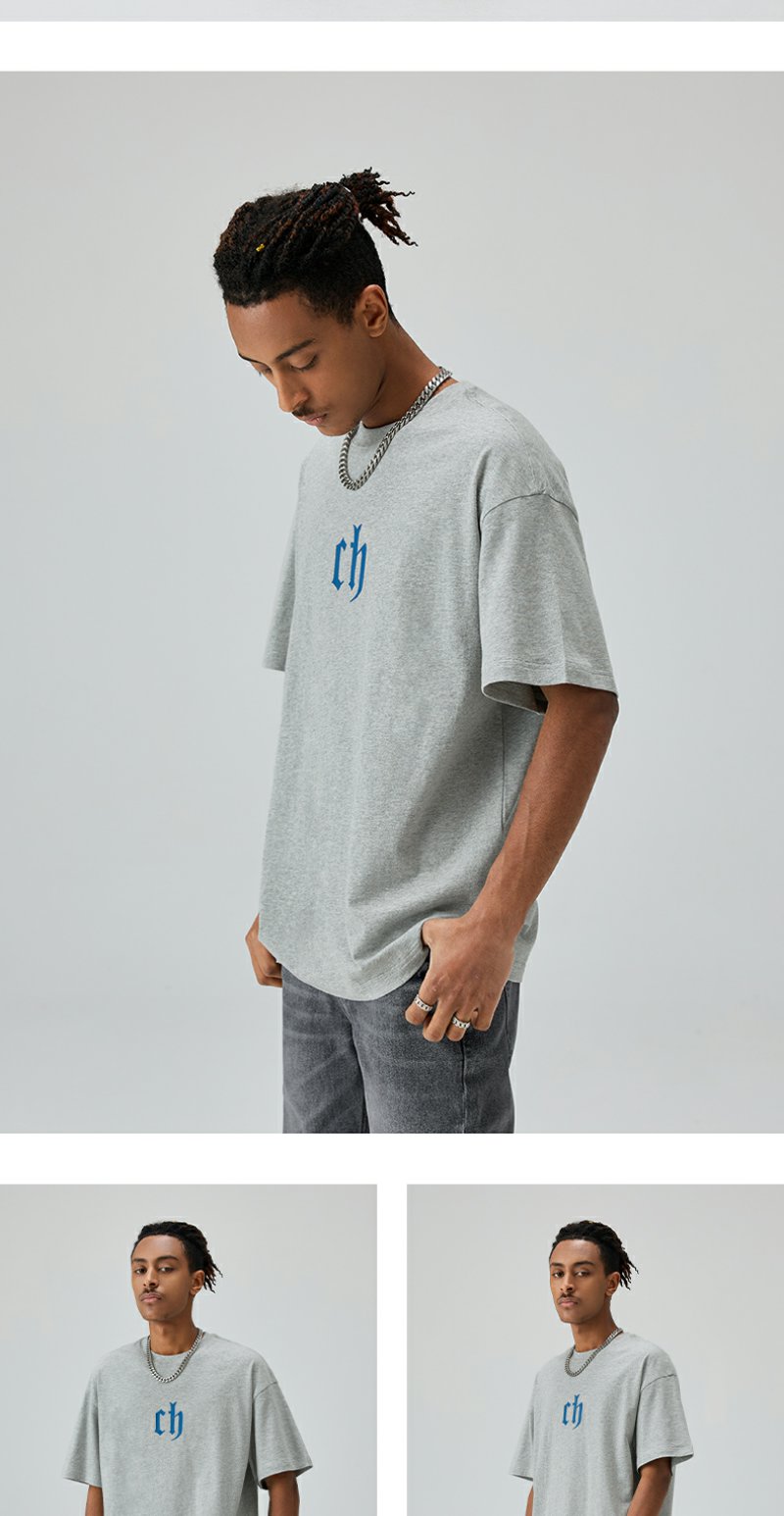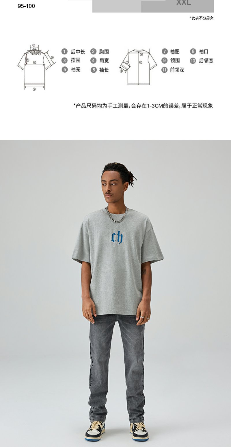 CHINISM CH白色T恤男短袖潮牌夏季宽松圆领纯棉简约百搭情侣半袖