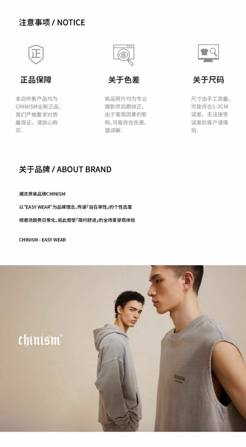 - 中国潮流快时尚男装品牌 CHINISM ,始创于2012年,正式成立于2014年。灵感源自每一位青年的穿衣需求。CHINISM - EASY WEAR