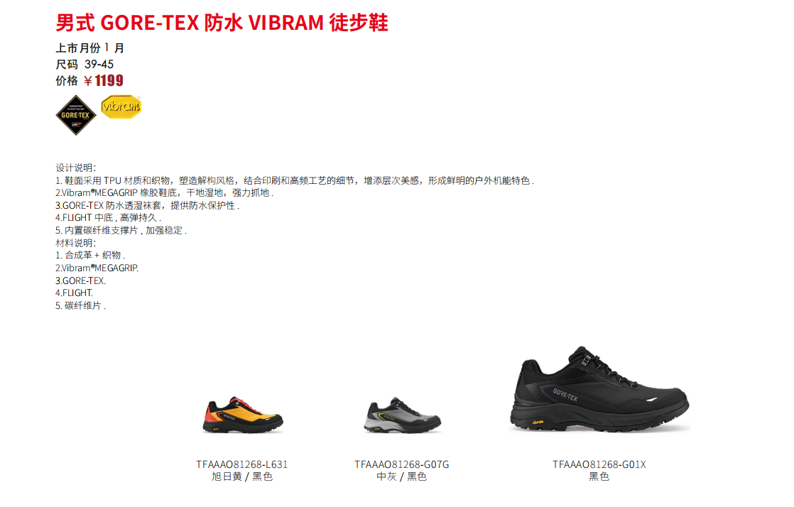 探路者男式GORE-TEX防水VIBRAM徒步鞋TFAAAO81268