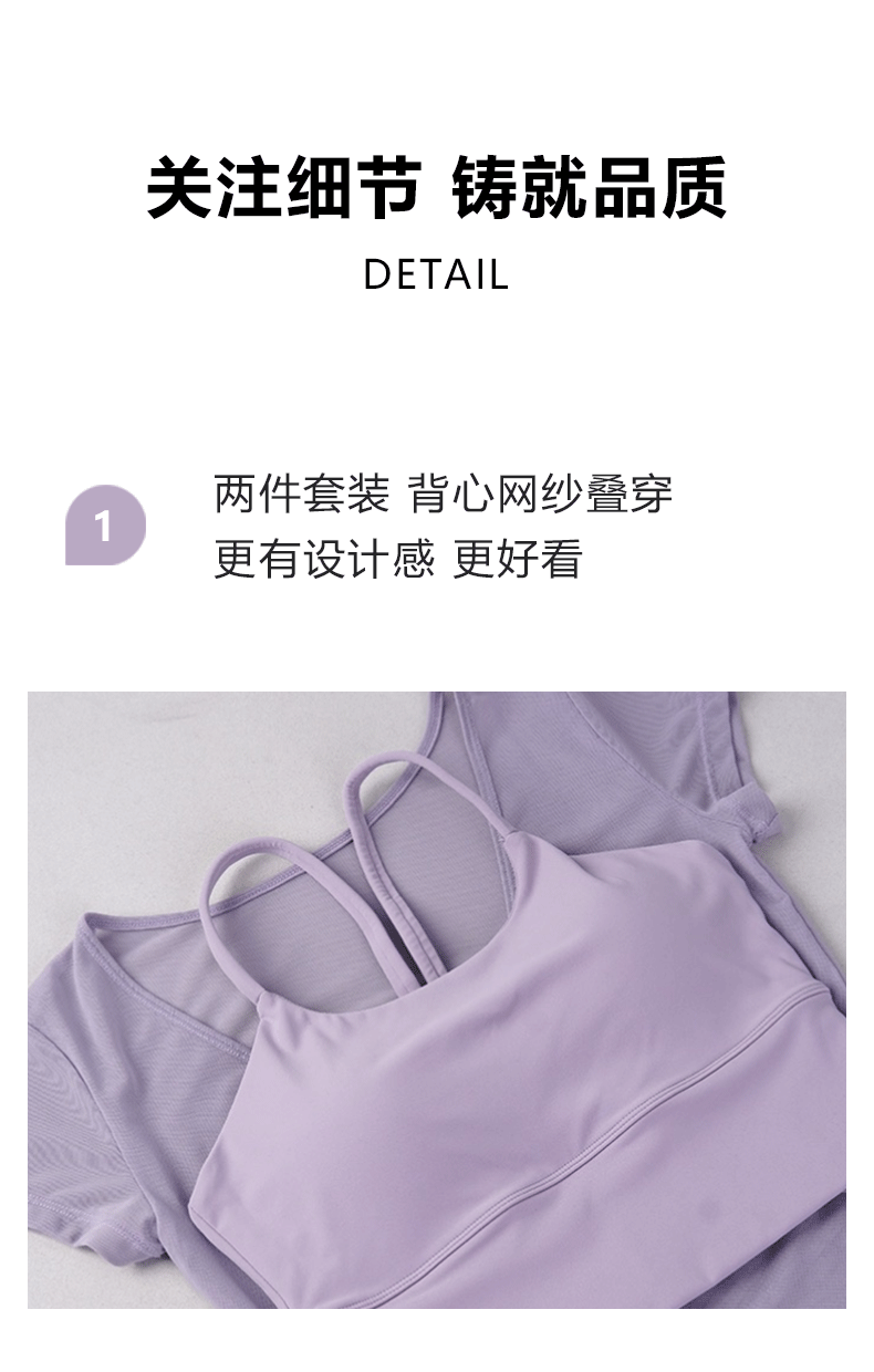 beemen 夏季网纱美背真两件 可独立穿搭 一体杯瑜伽背心 低强度舒适聚拢
