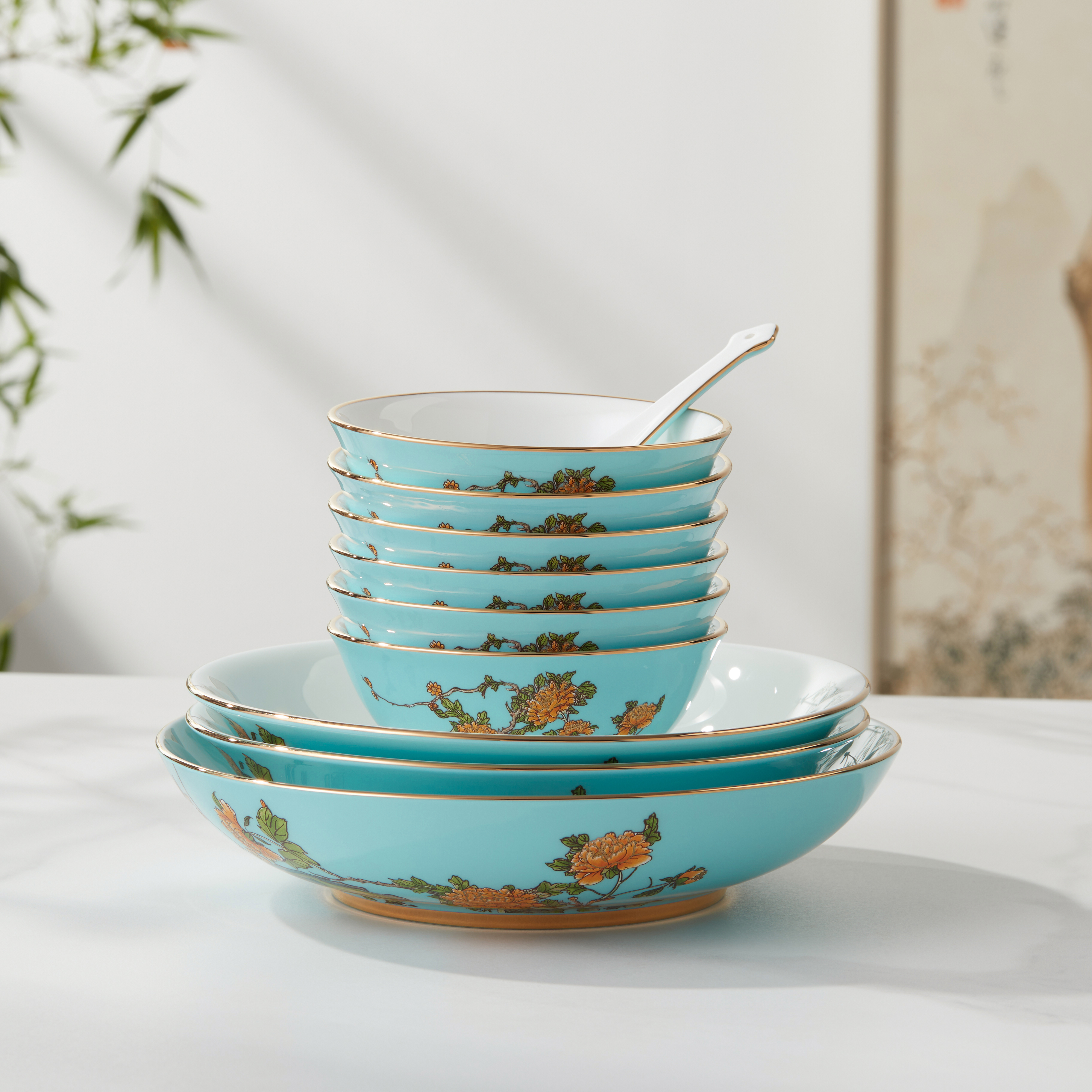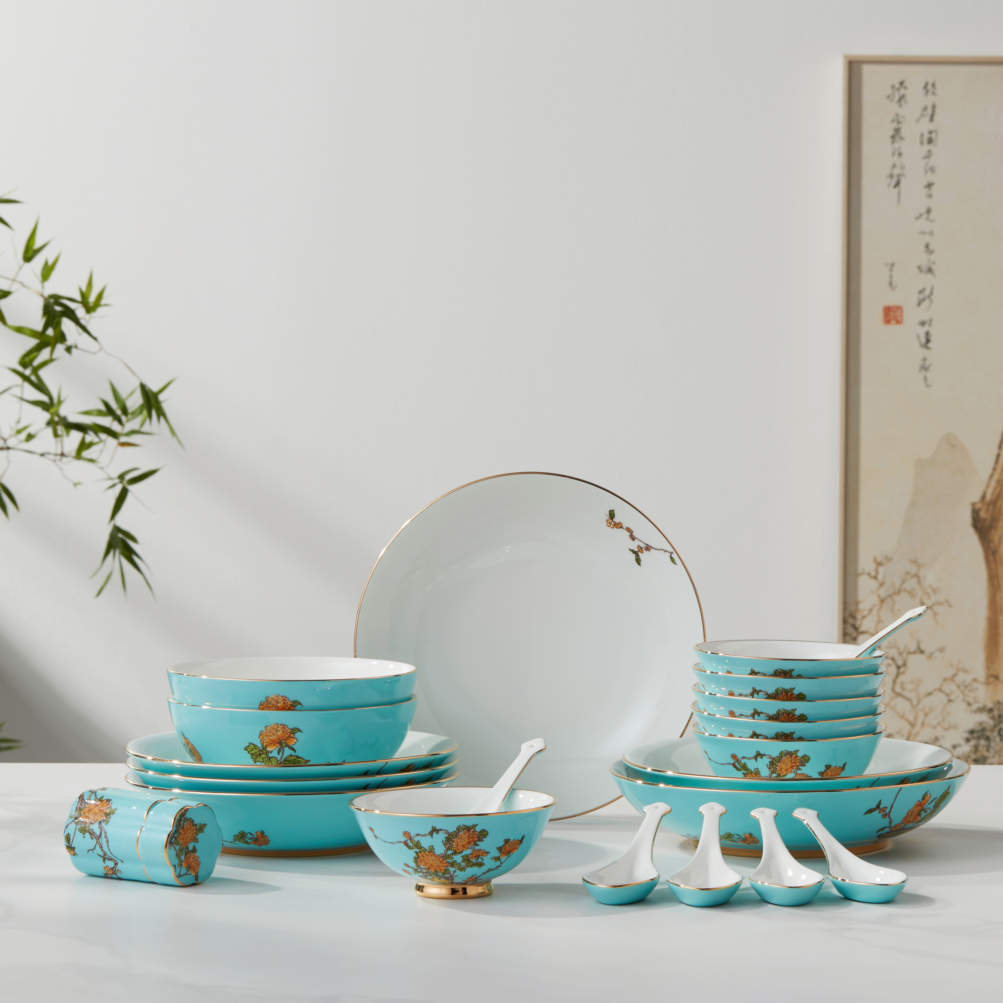 国瓷永丰源西湖蓝22头中餐具 YFY