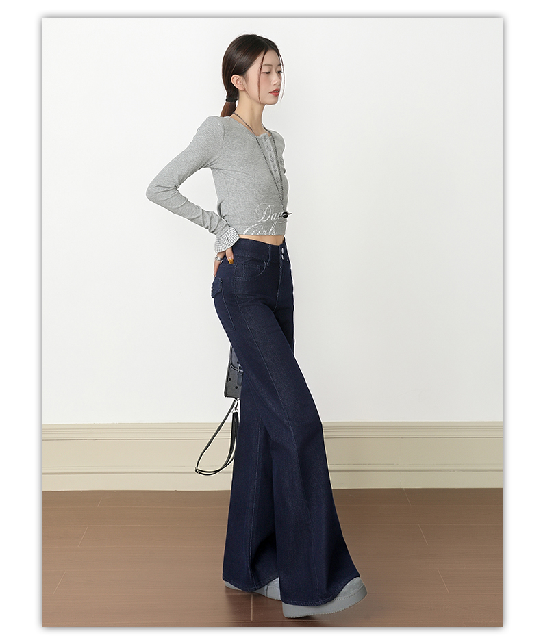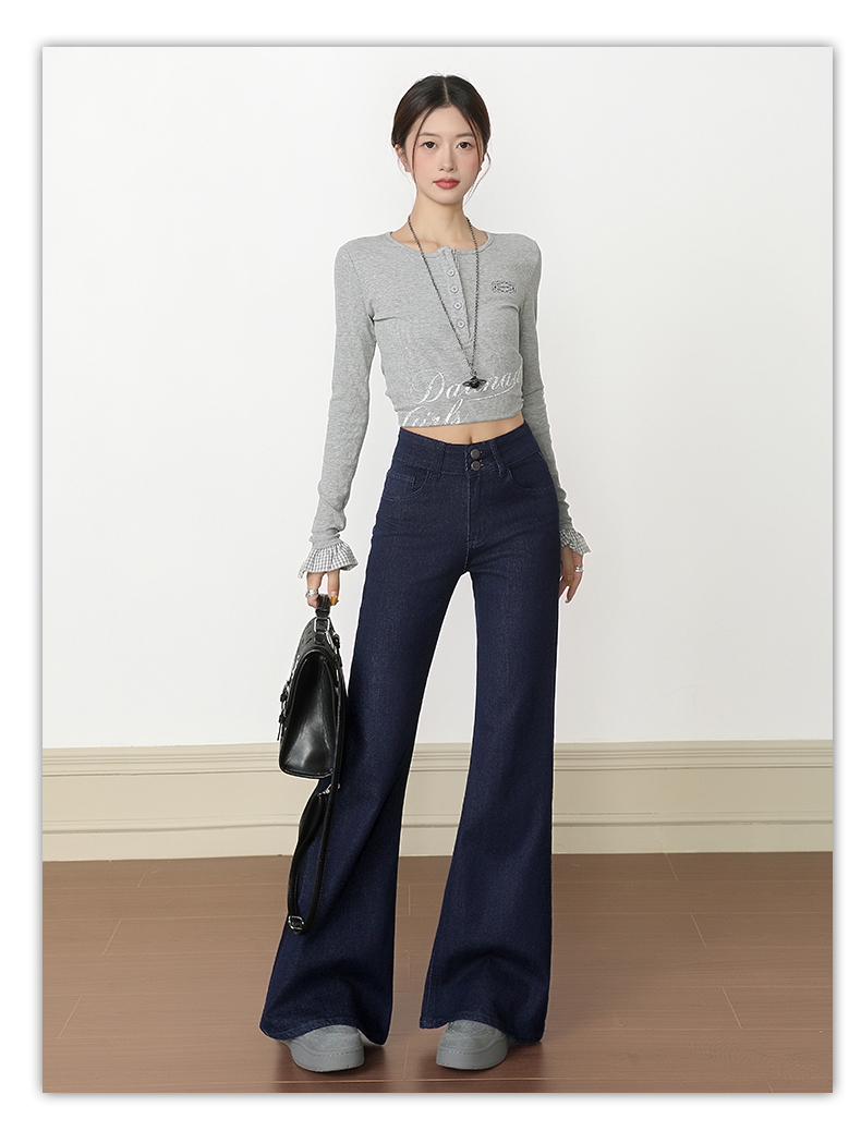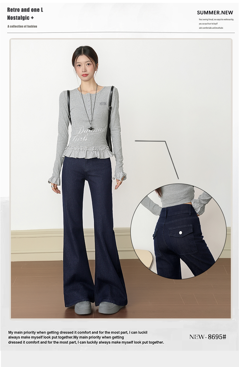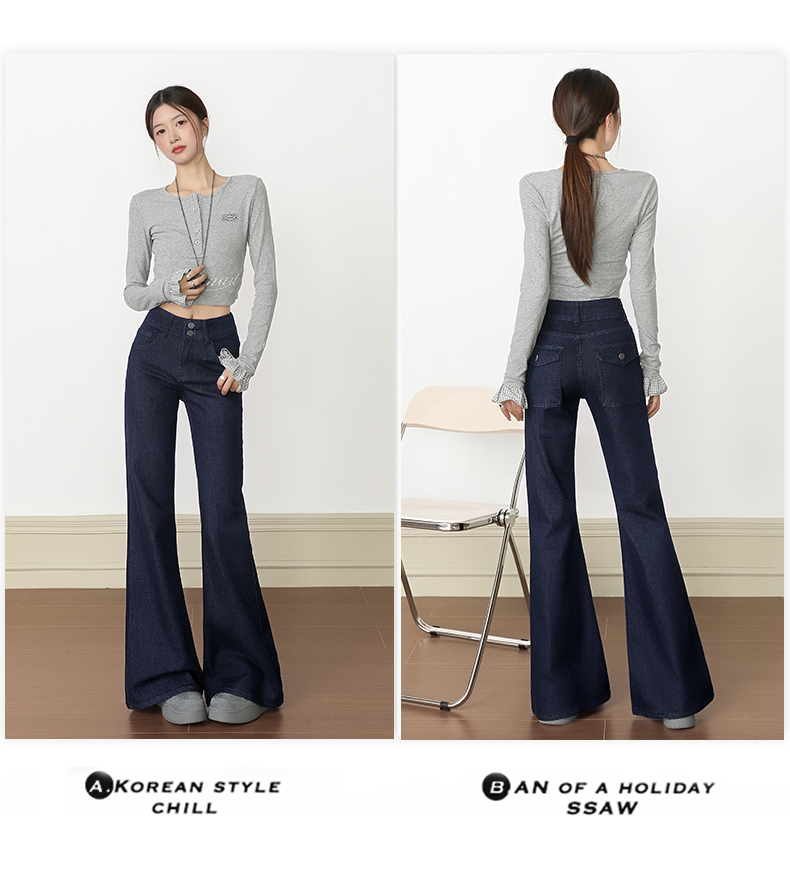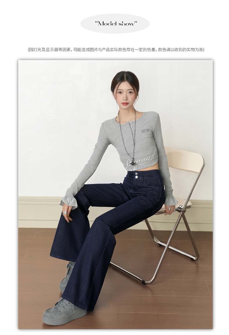 罗蒙女士微喇叭牛仔裤百搭修身垂感马蹄长裤高腰显瘦设计拖地喇叭裤