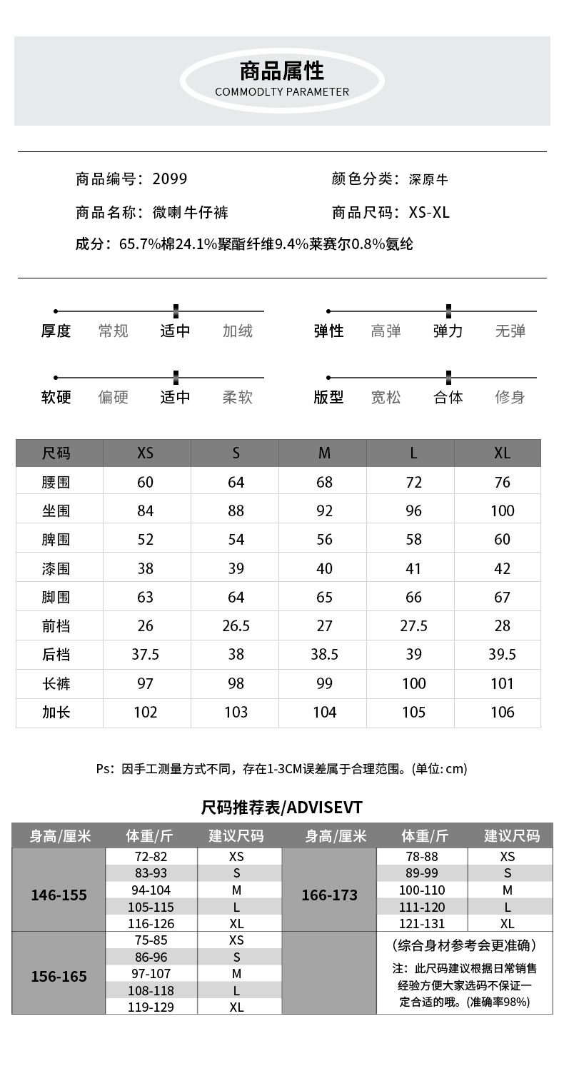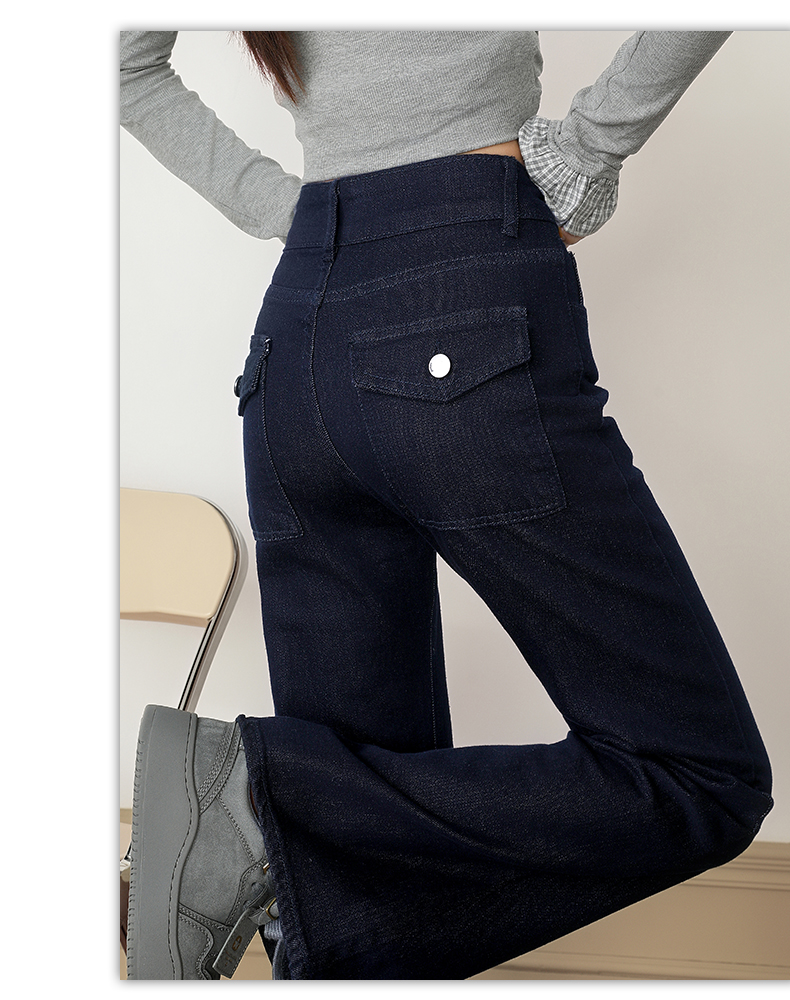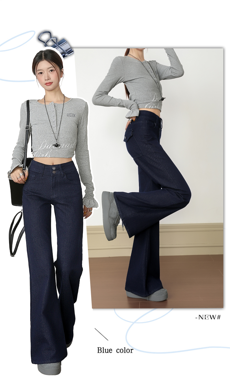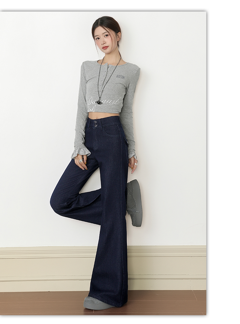 罗蒙女士微喇叭牛仔裤百搭修身垂感马蹄长裤高腰显瘦设计拖地喇叭裤