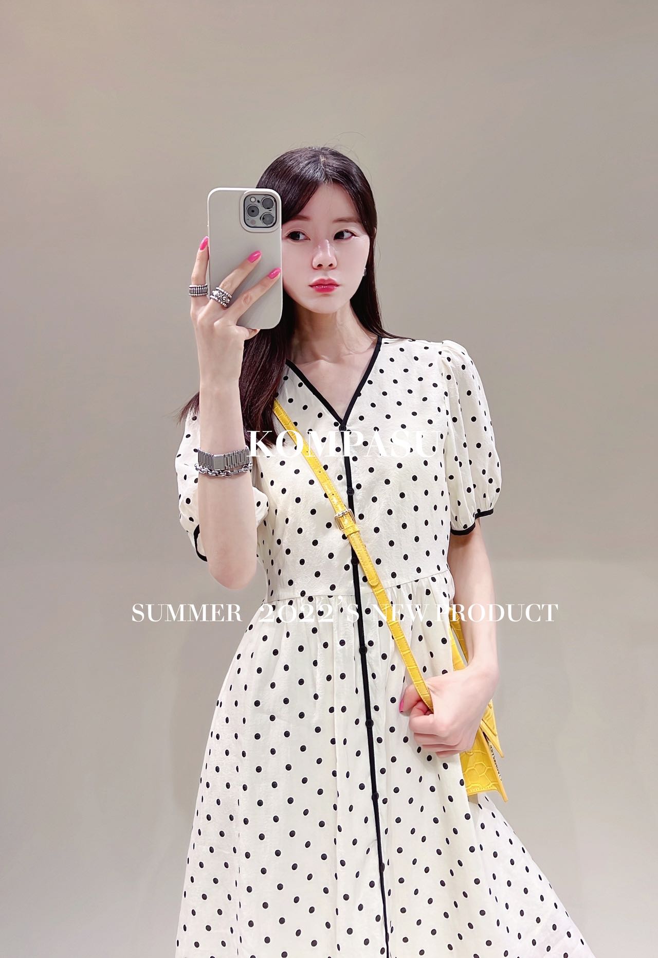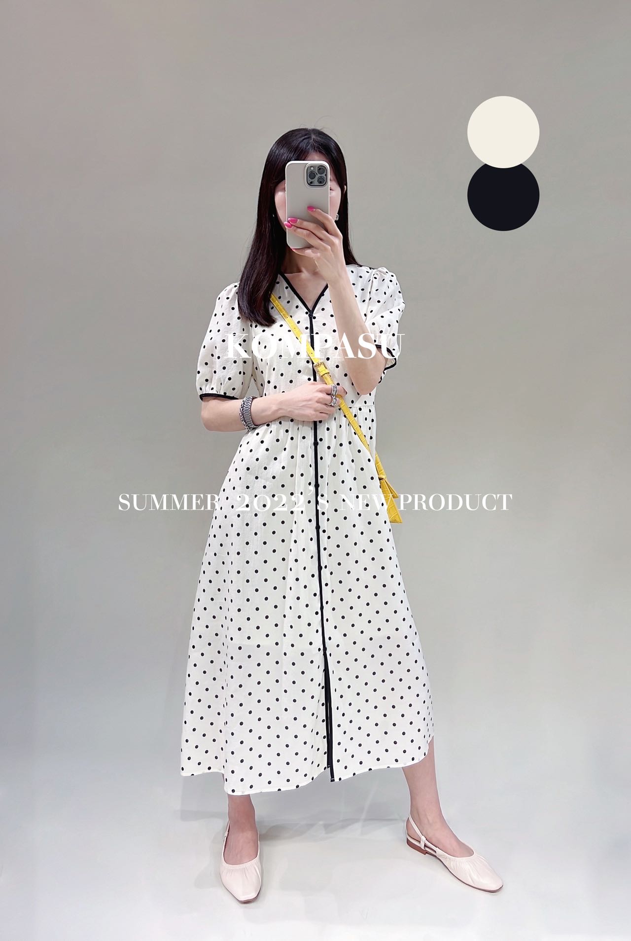 卡帕苏高腰V领泡泡袖长裙 K233203