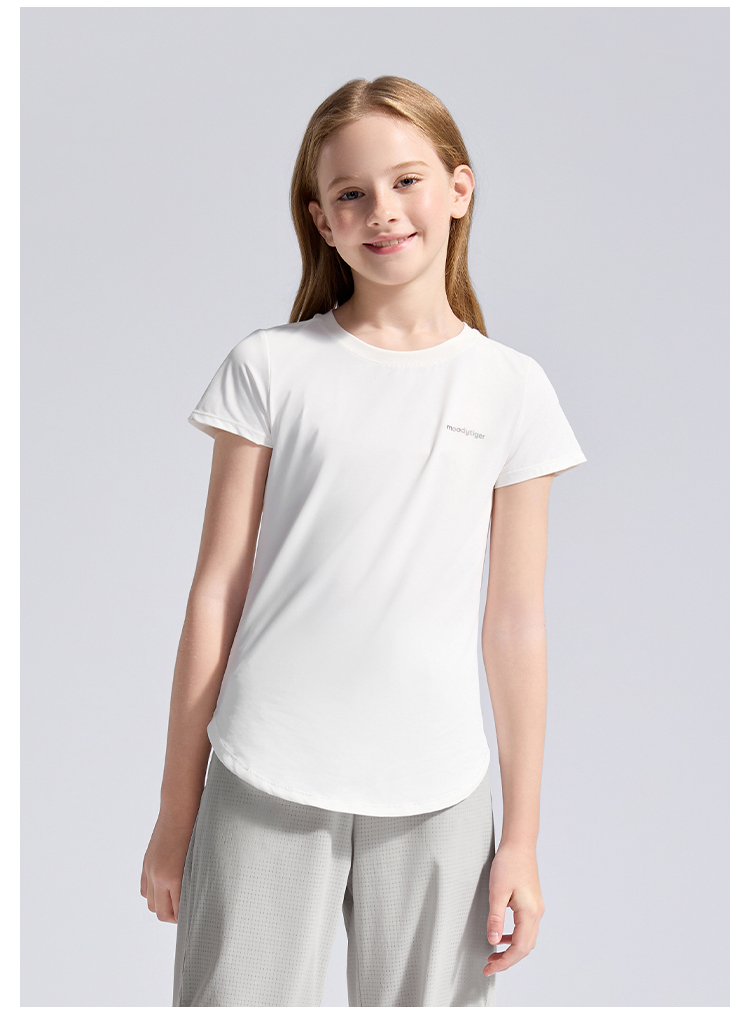 【DR暑假】moodytiger女童夏季新款中大童印花个性背开叉速干短袖T恤32210103