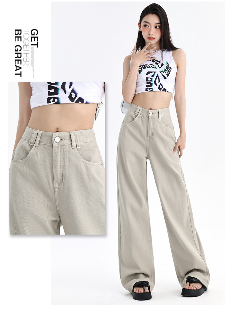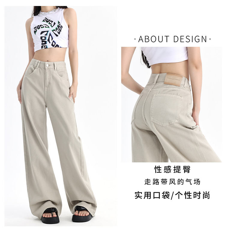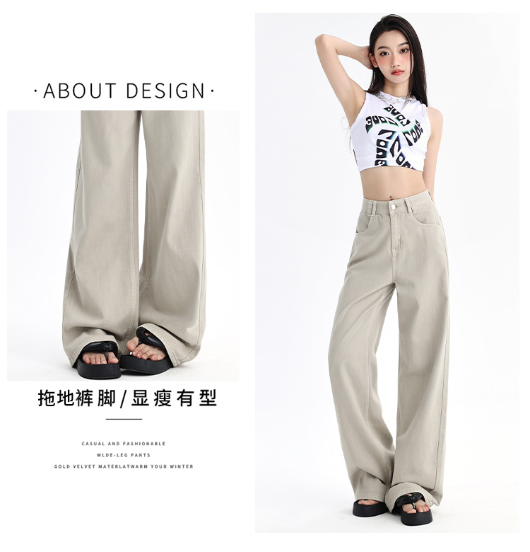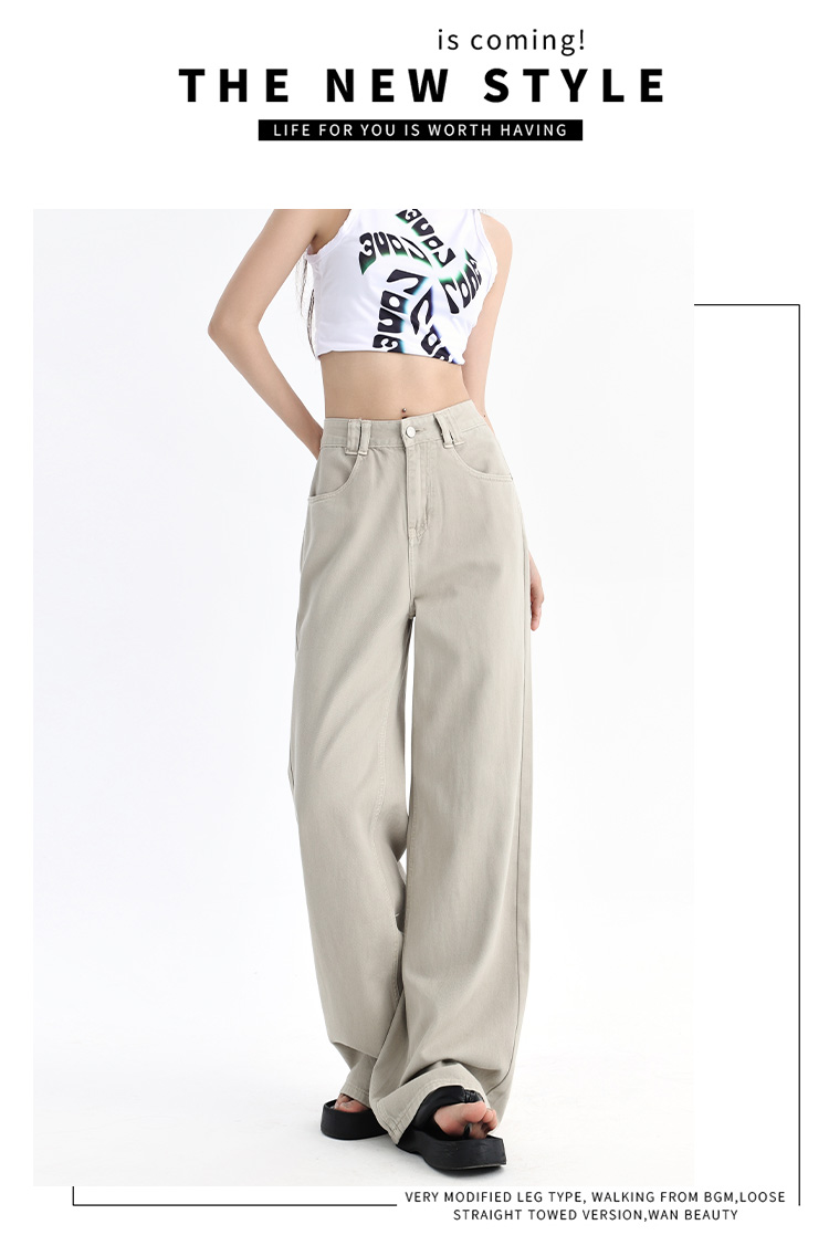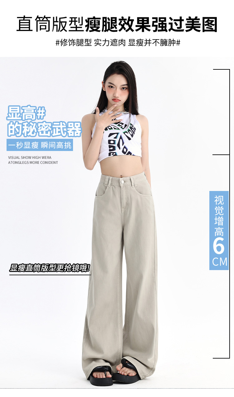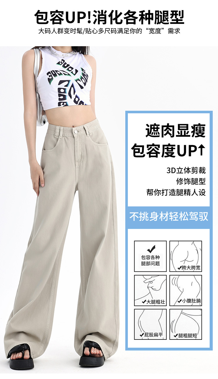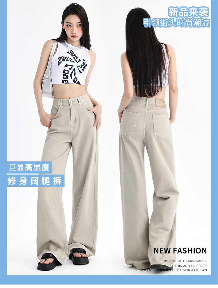 罗蒙四季款女士牛仔裤百搭通勤高腰宽松显瘦阔腿长裤时尚休闲直筒裤子