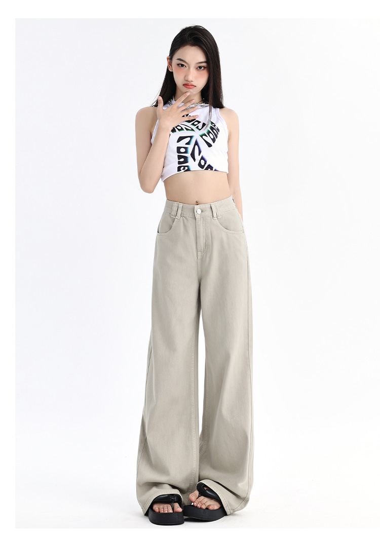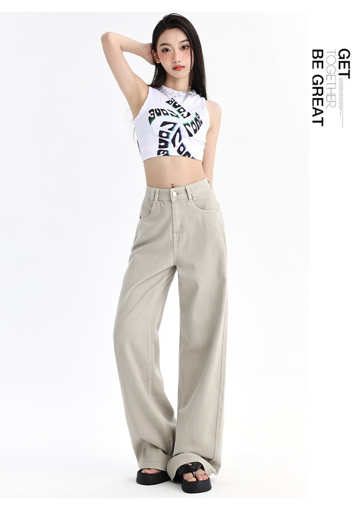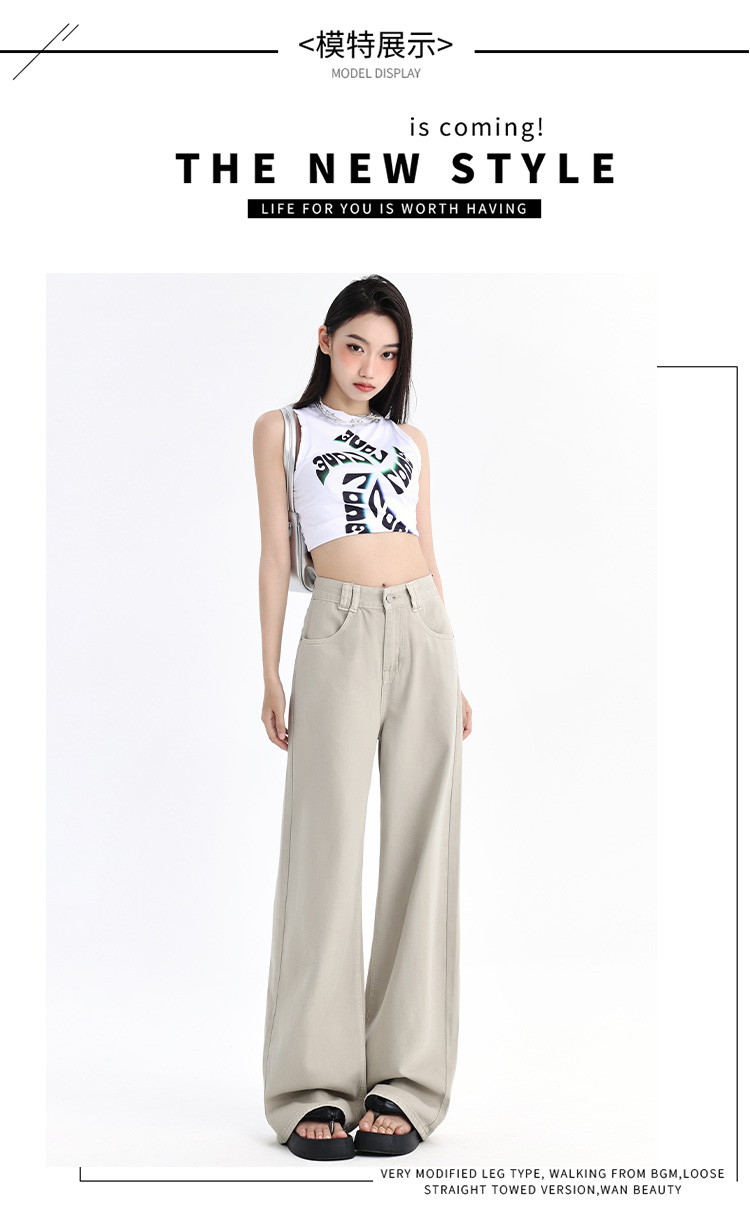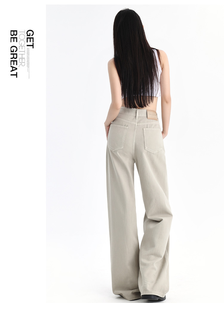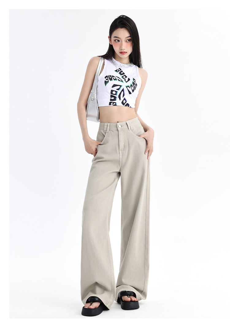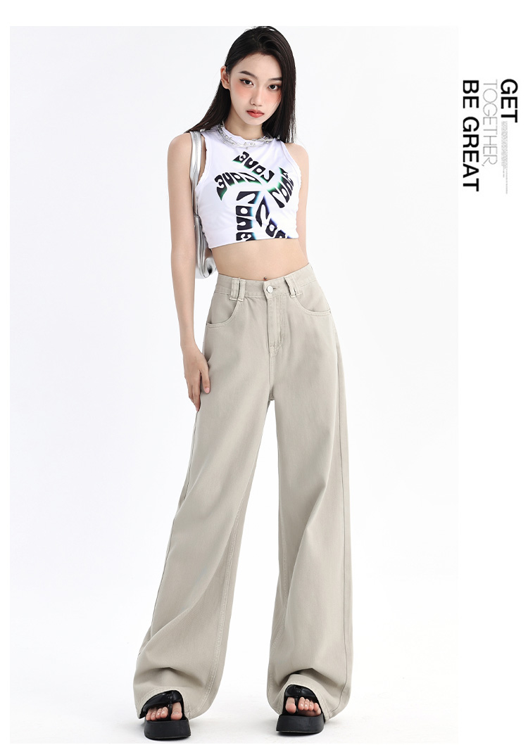 罗蒙四季款女士牛仔裤百搭通勤高腰宽松显瘦阔腿长裤时尚休闲直筒裤子