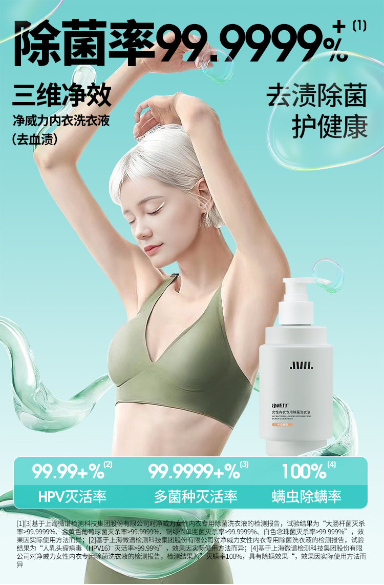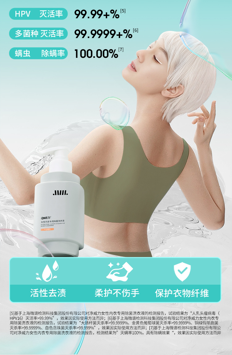 净威力女性内衣专用除菌洗衣液300ml香味任选(赠送同款小样15ml喷雾26ml)