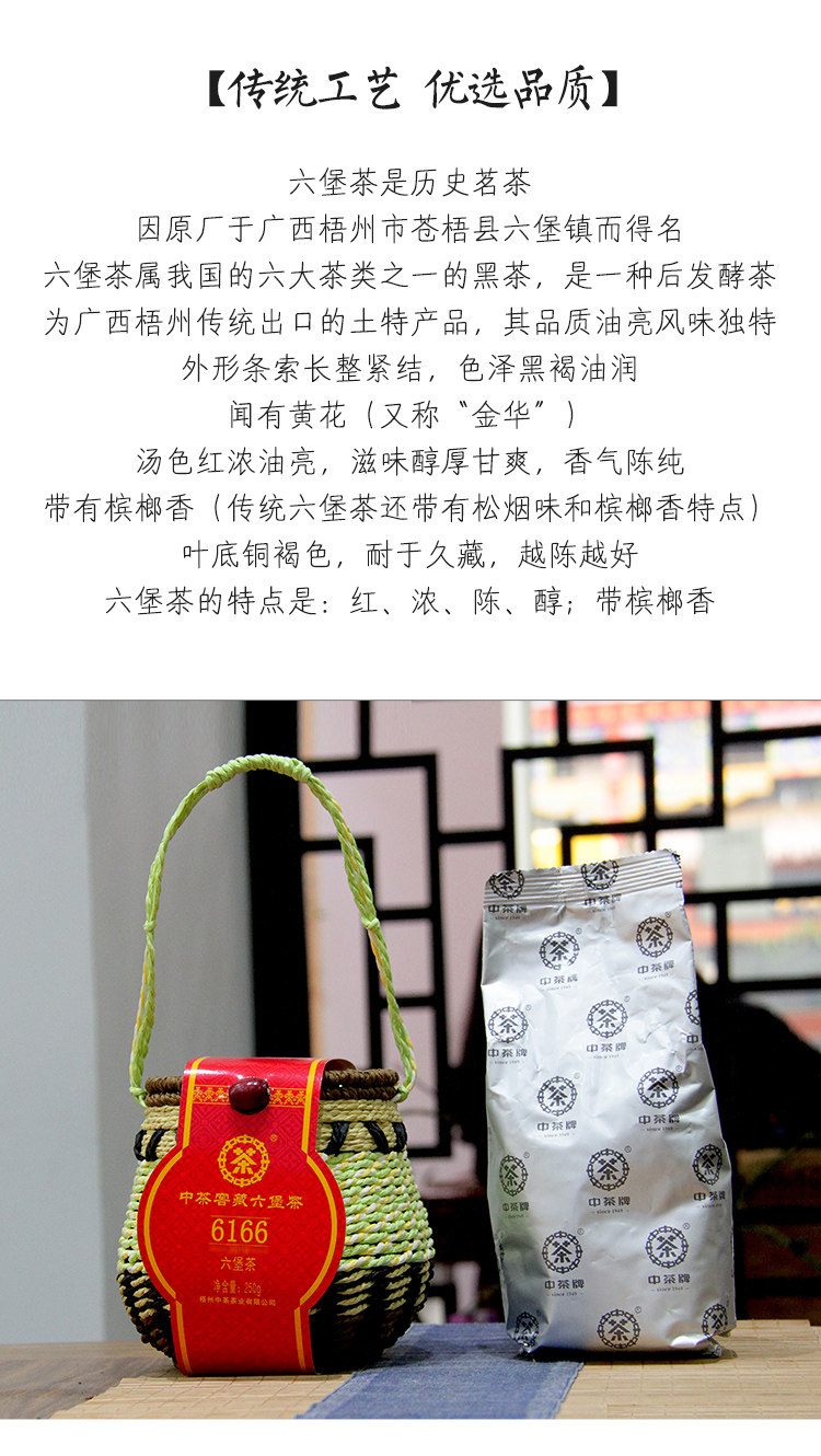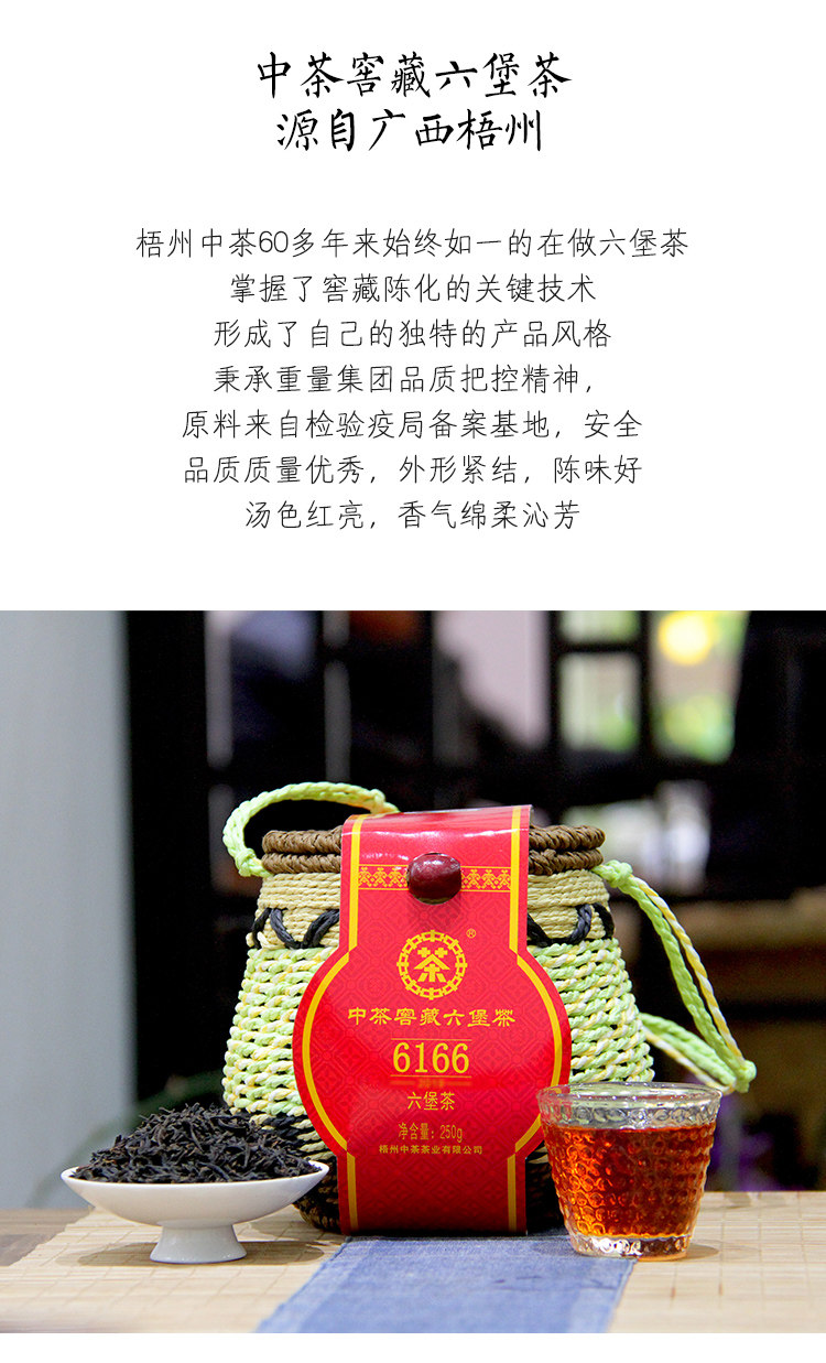 中粮-中茶 6166六堡茶 2021年梧州陈年窖藏黑茶一级散茶250克/原产地直发