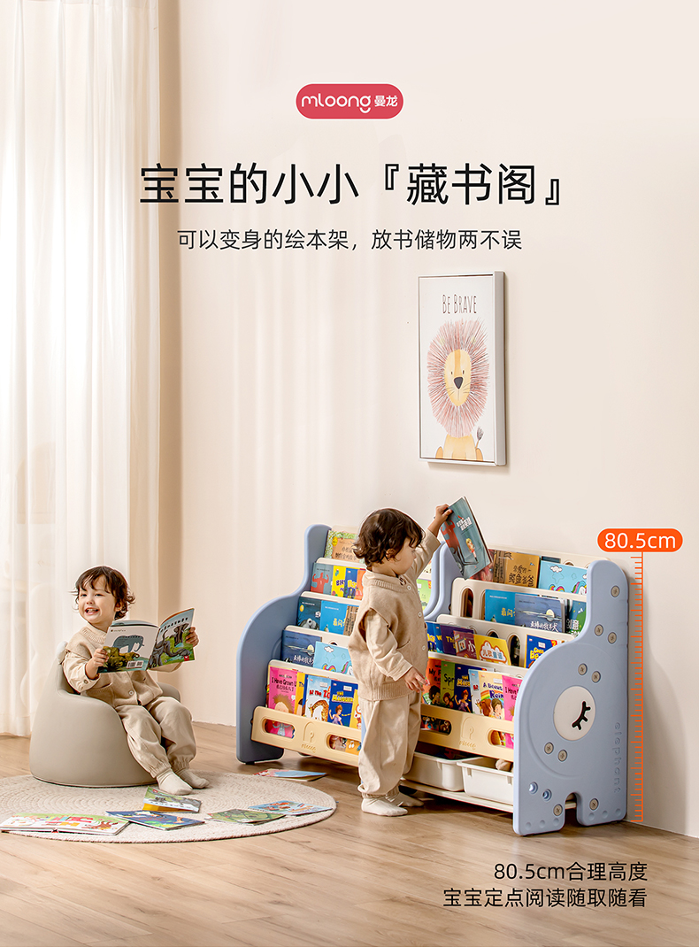 【冬日暖拥】曼龙mloong儿童书架宝宝绘本架落地书柜置物架维尔象绘本架