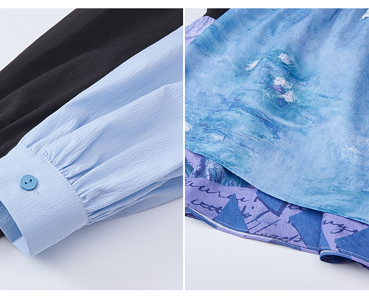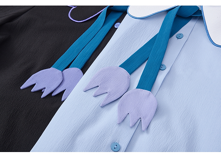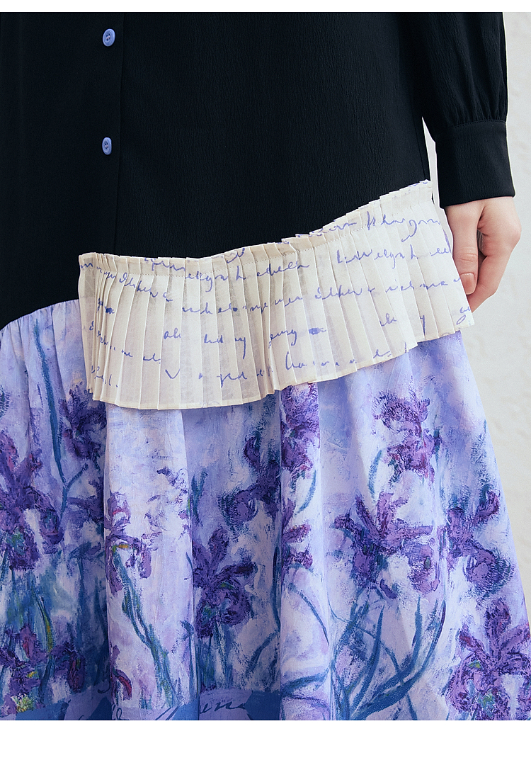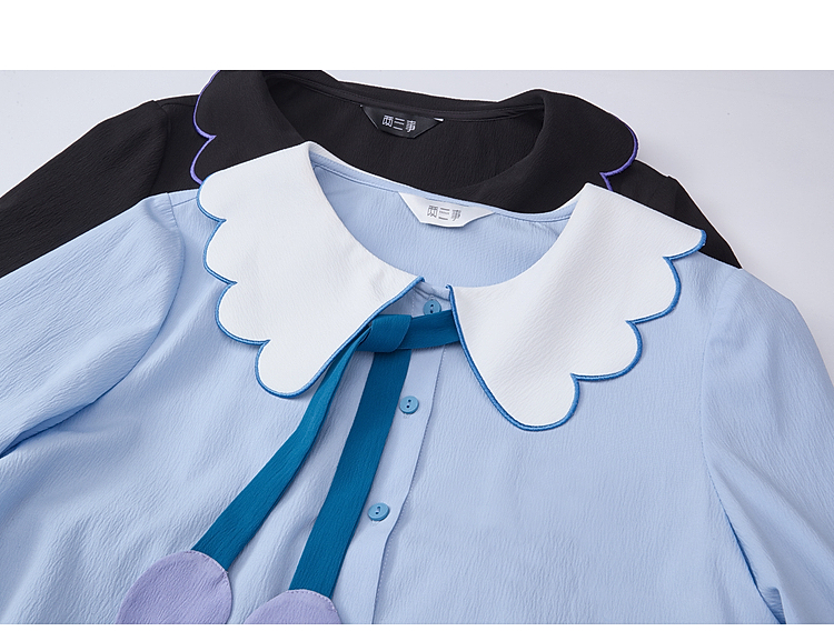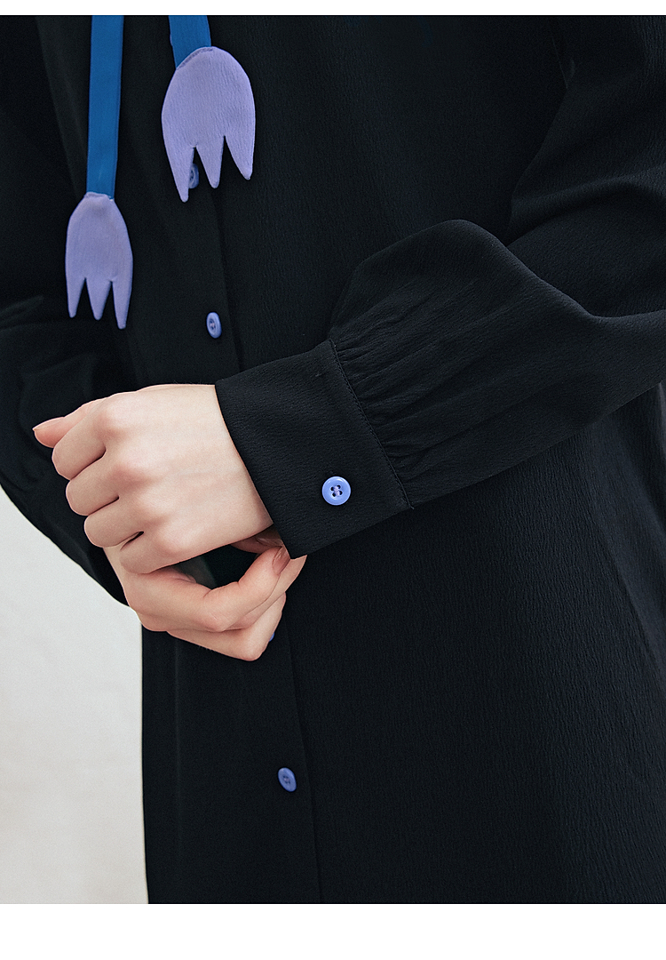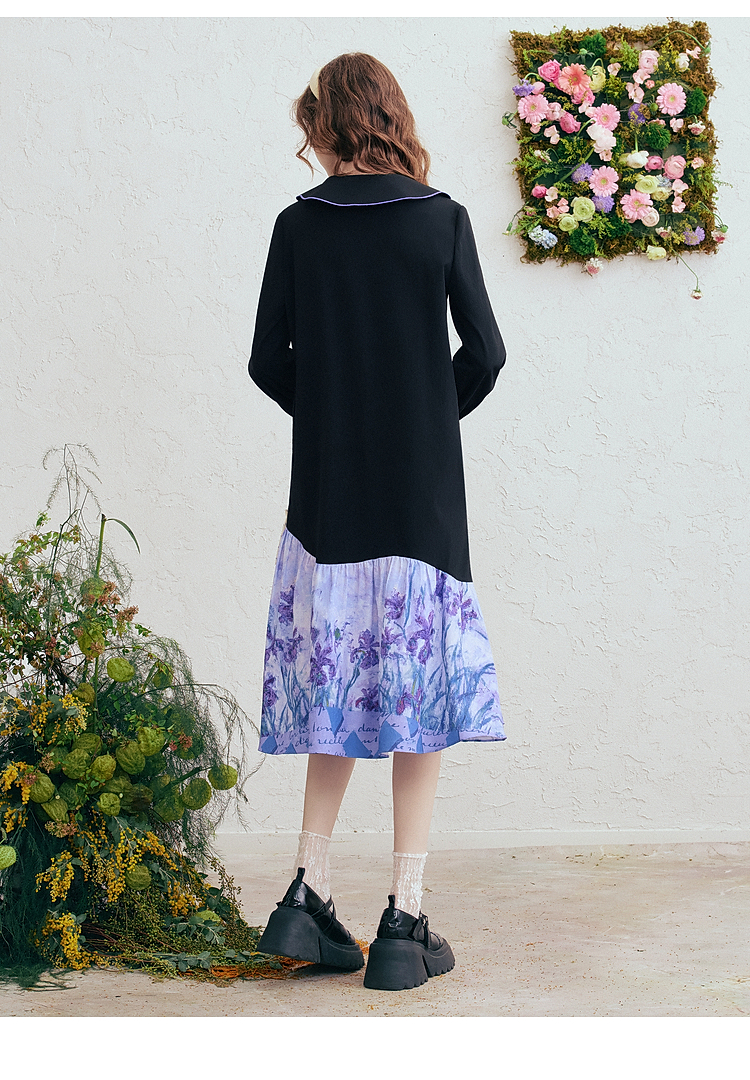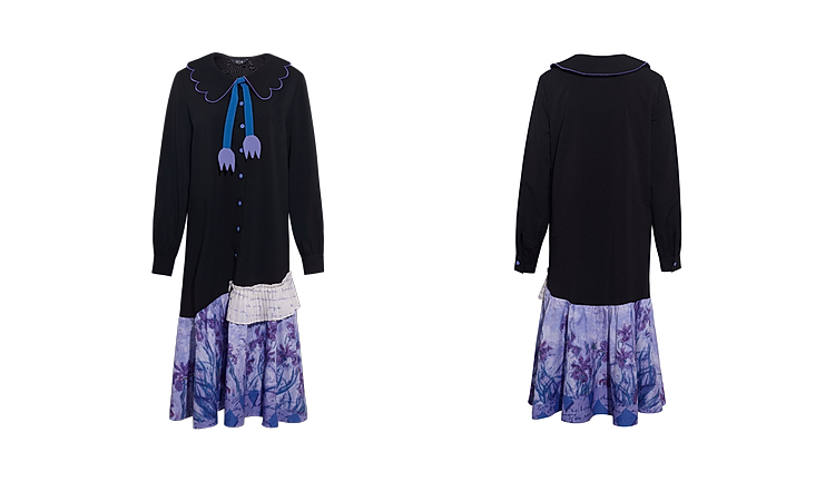 两三事梦溯芳泽2026春季新款印花裙摆可拆郁金香领带娃娃领连衣裙