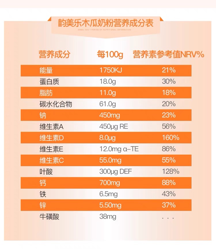【医务版本】韵美乐木瓜奶粉 产后月子营养奶 660g