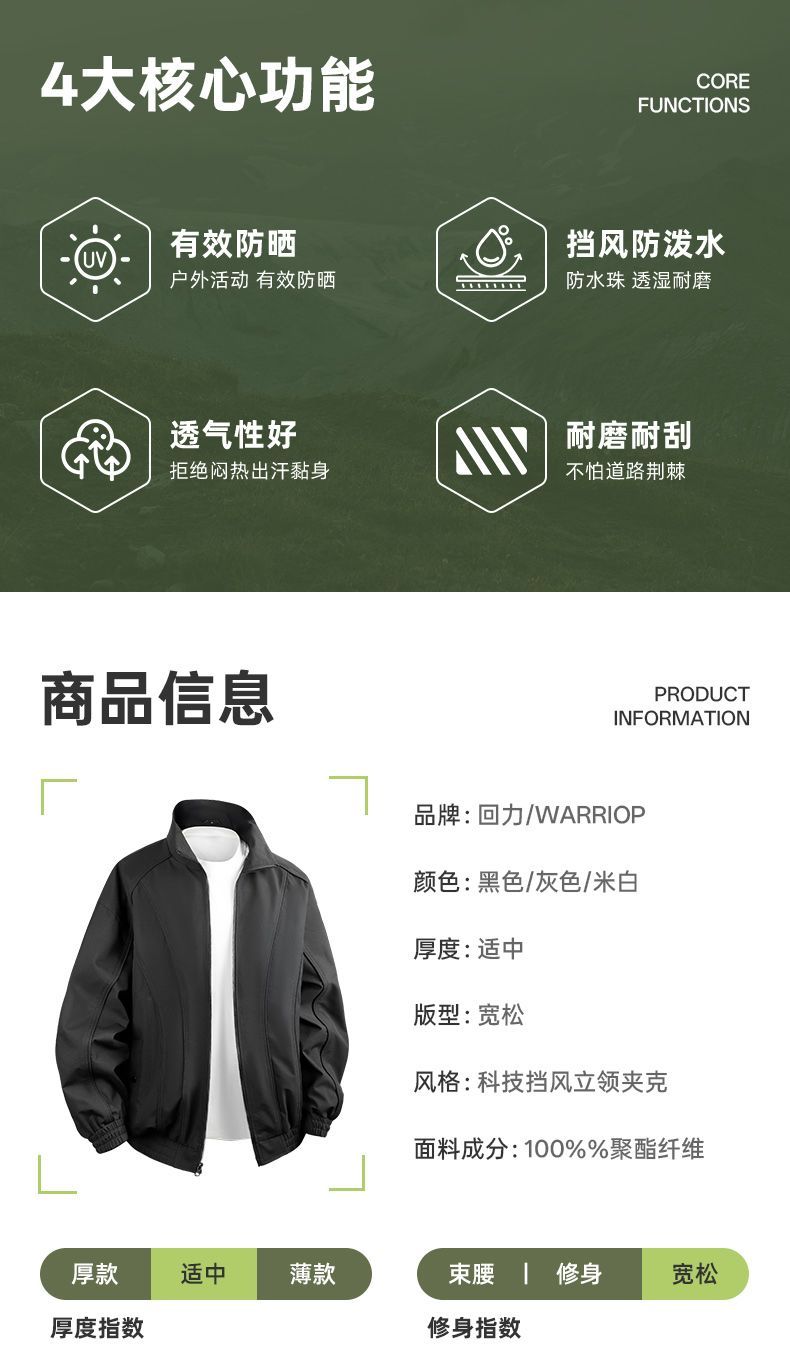 回力2025秋季立领夹克男宽松户外防风冲锋上衣美式潮流飞行员外套