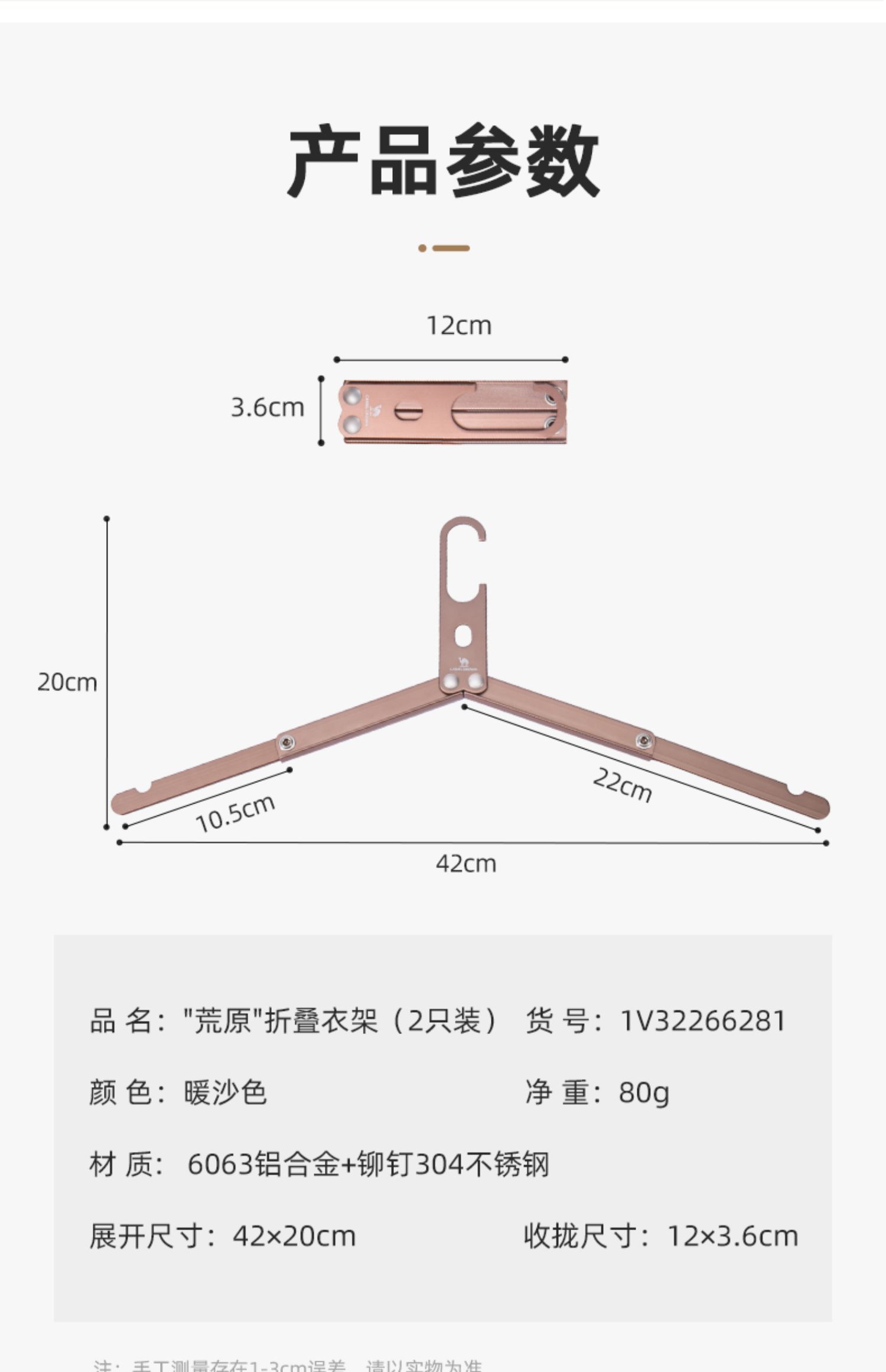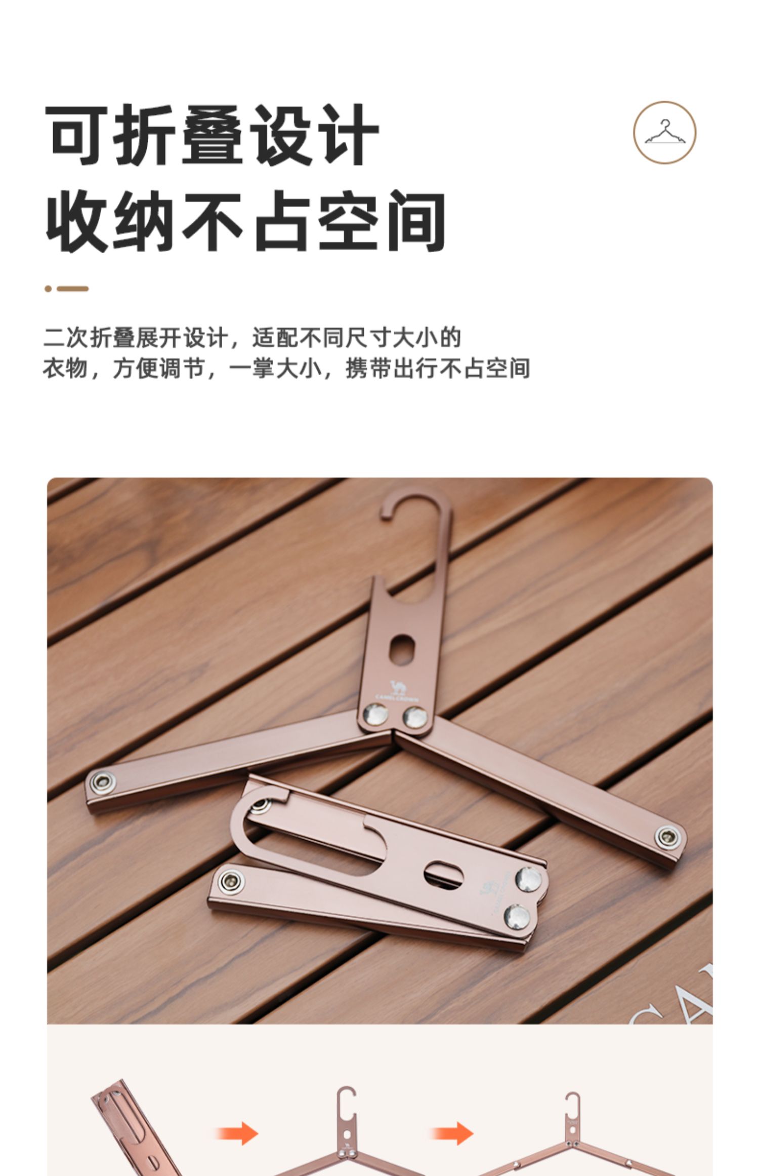 骆驼户外铝合金多功能折叠衣架旅行便携式晒衣挂架简易防滑挂扣 1V32266281