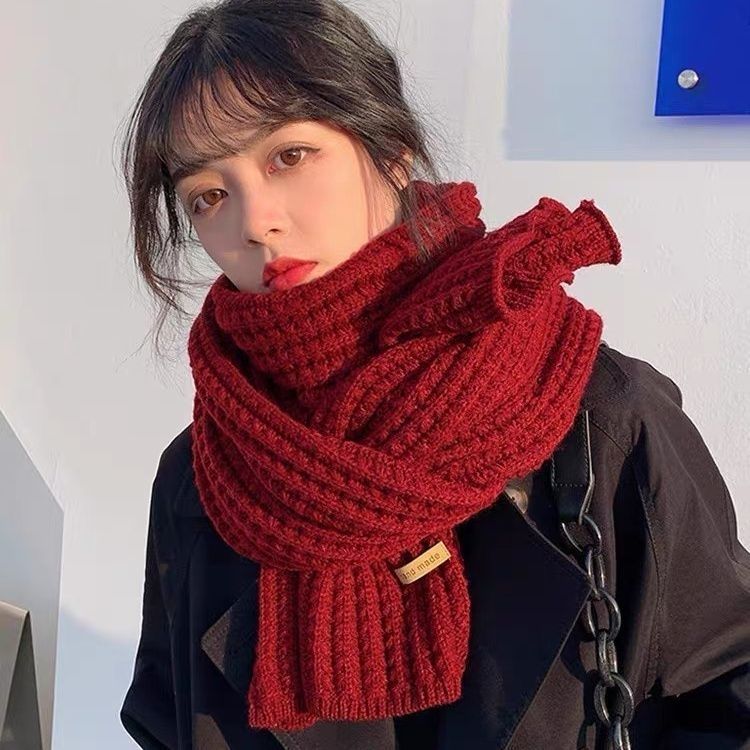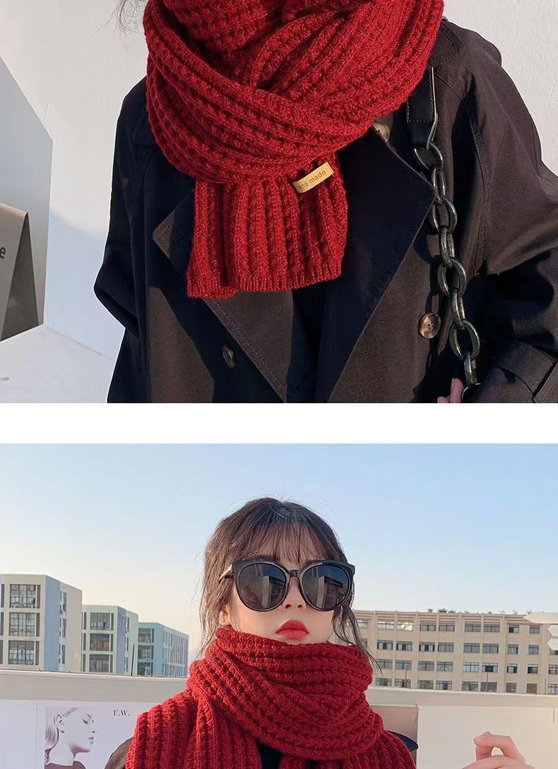 冬季韩系潮氛围感女校园情侣款保暖学生网红百搭纯色针织毛线围巾