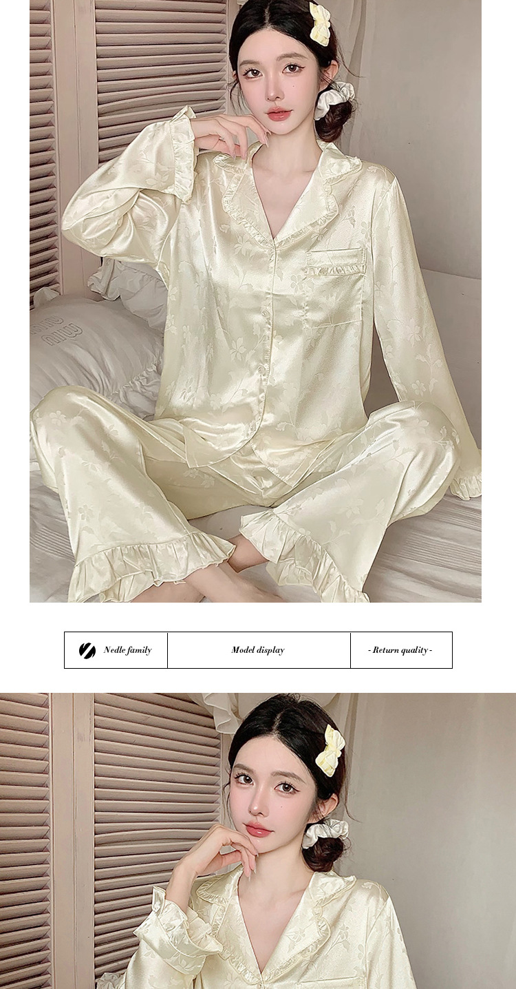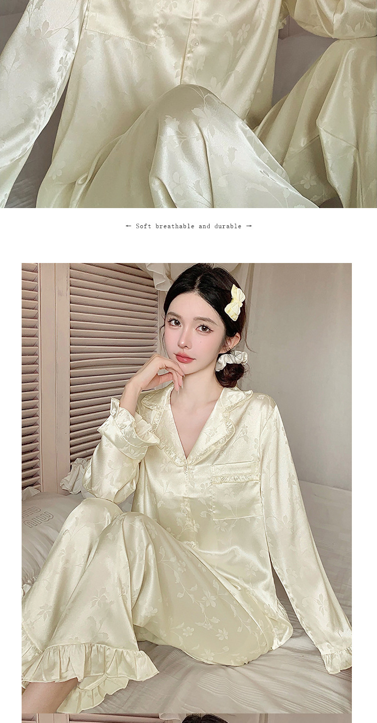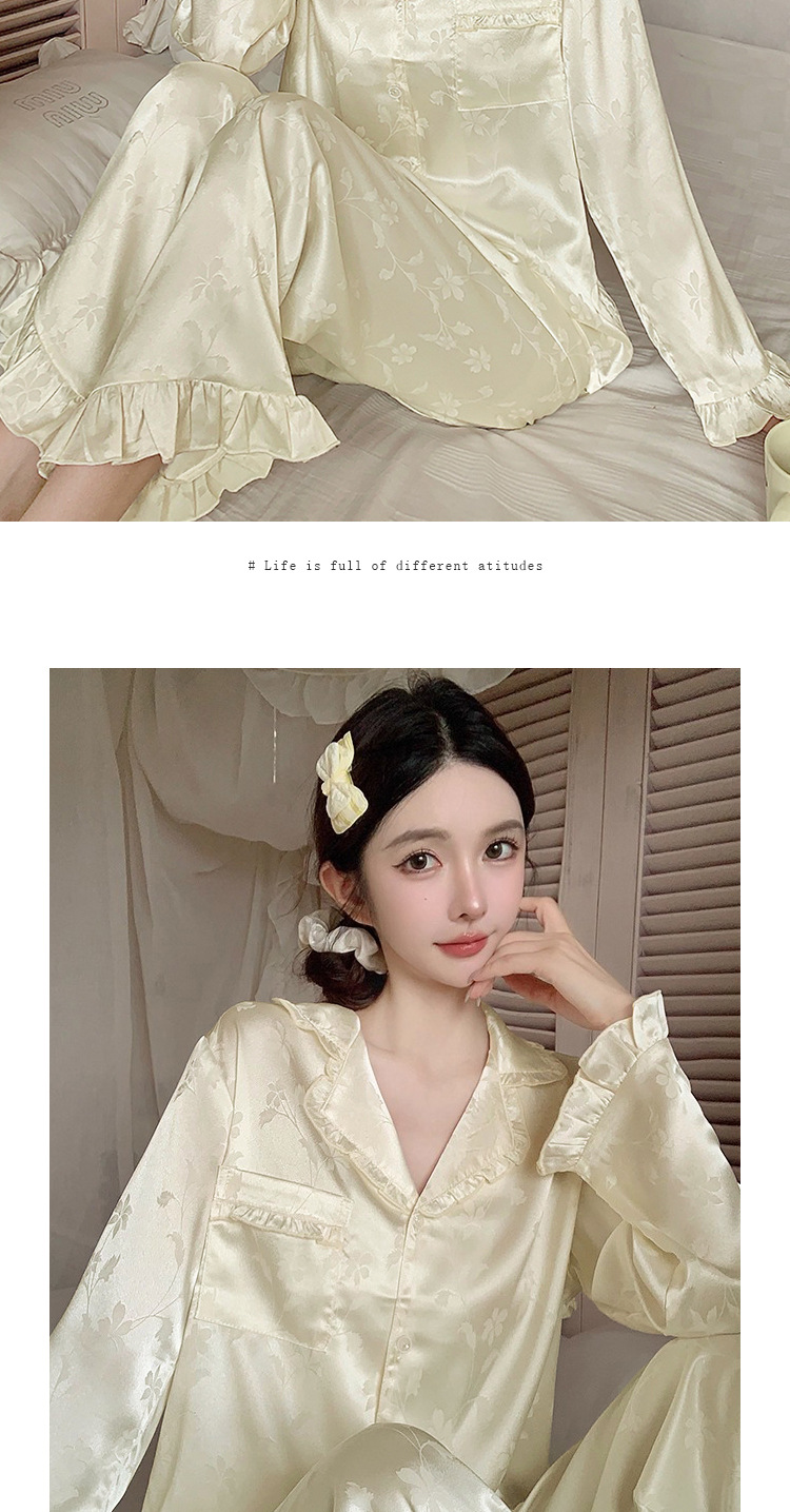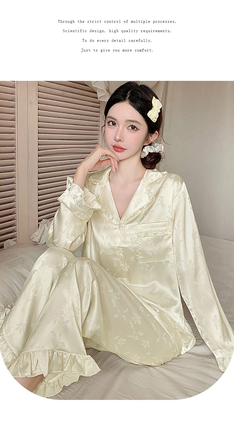 轻奢荷叶边花卉睡衣女春秋爆款长袖秋款冰丝柔软家居服两件套新款新品