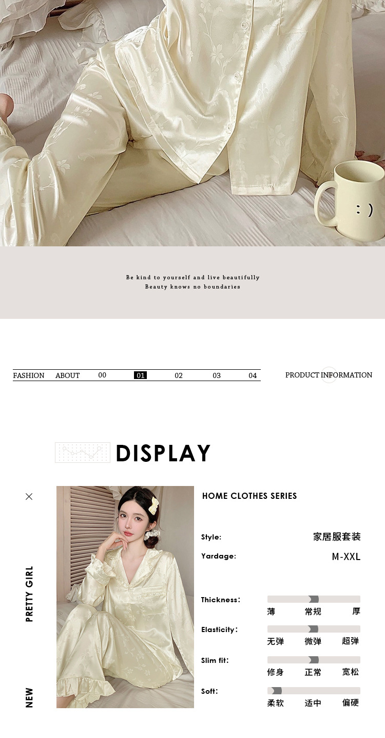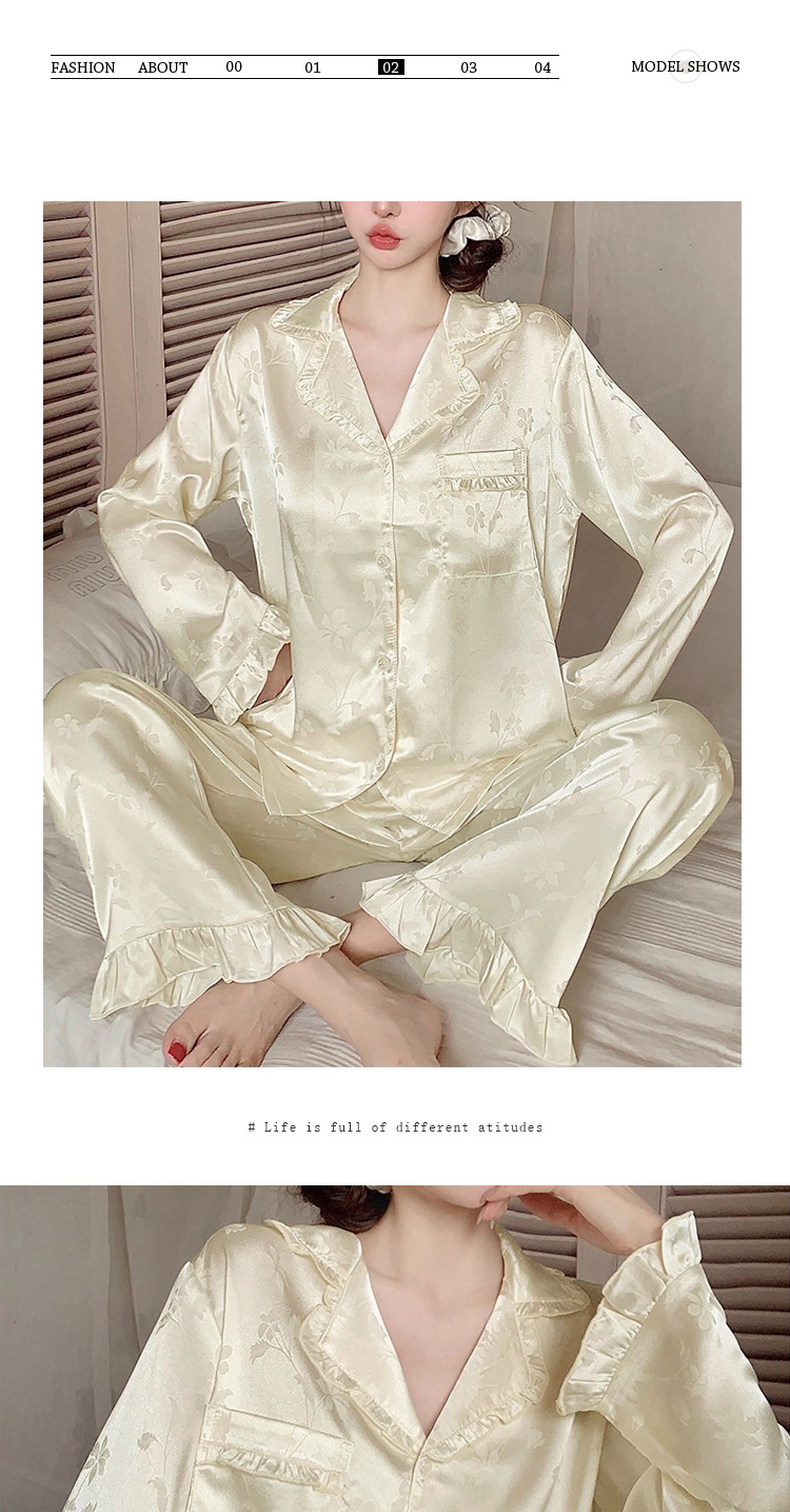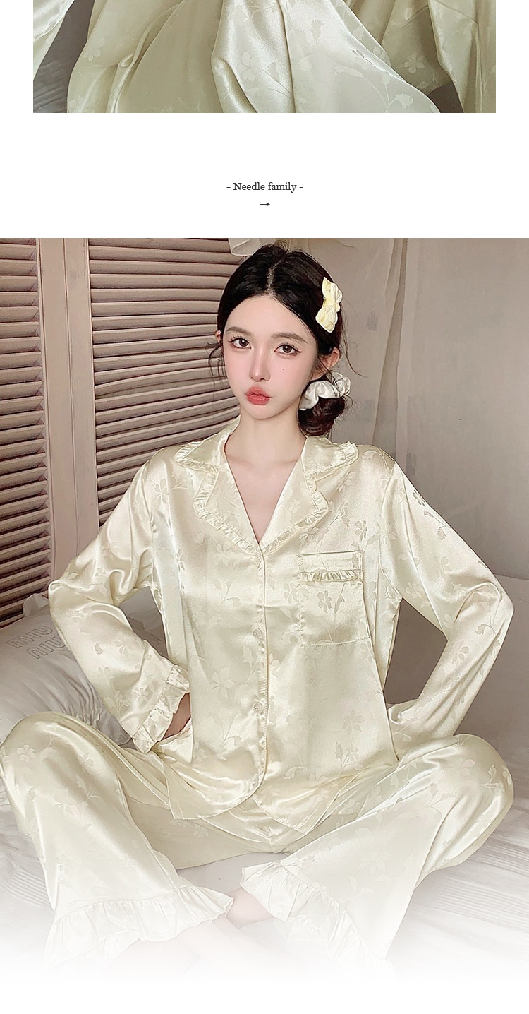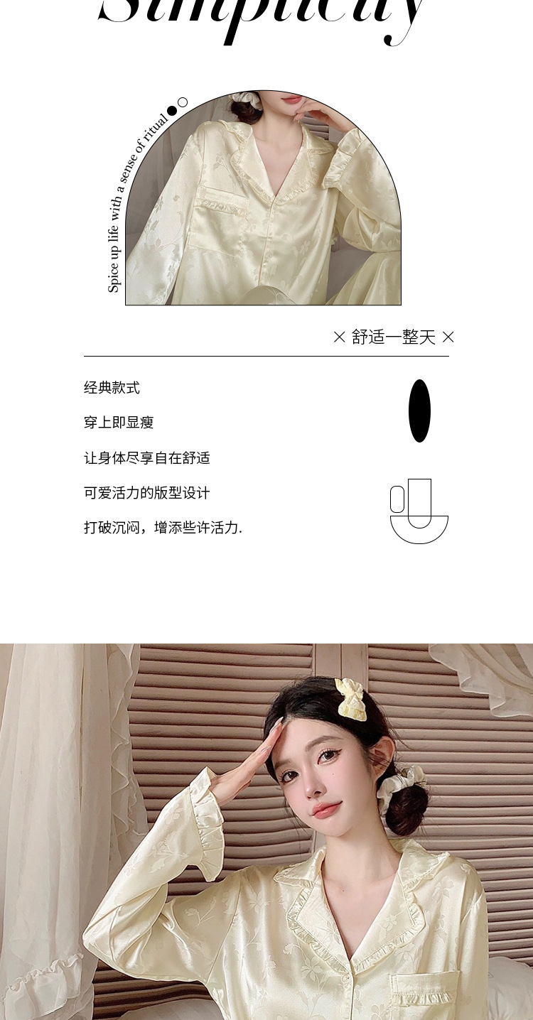 轻奢荷叶边花卉睡衣女春秋爆款长袖秋款冰丝柔软家居服两件套新款新品