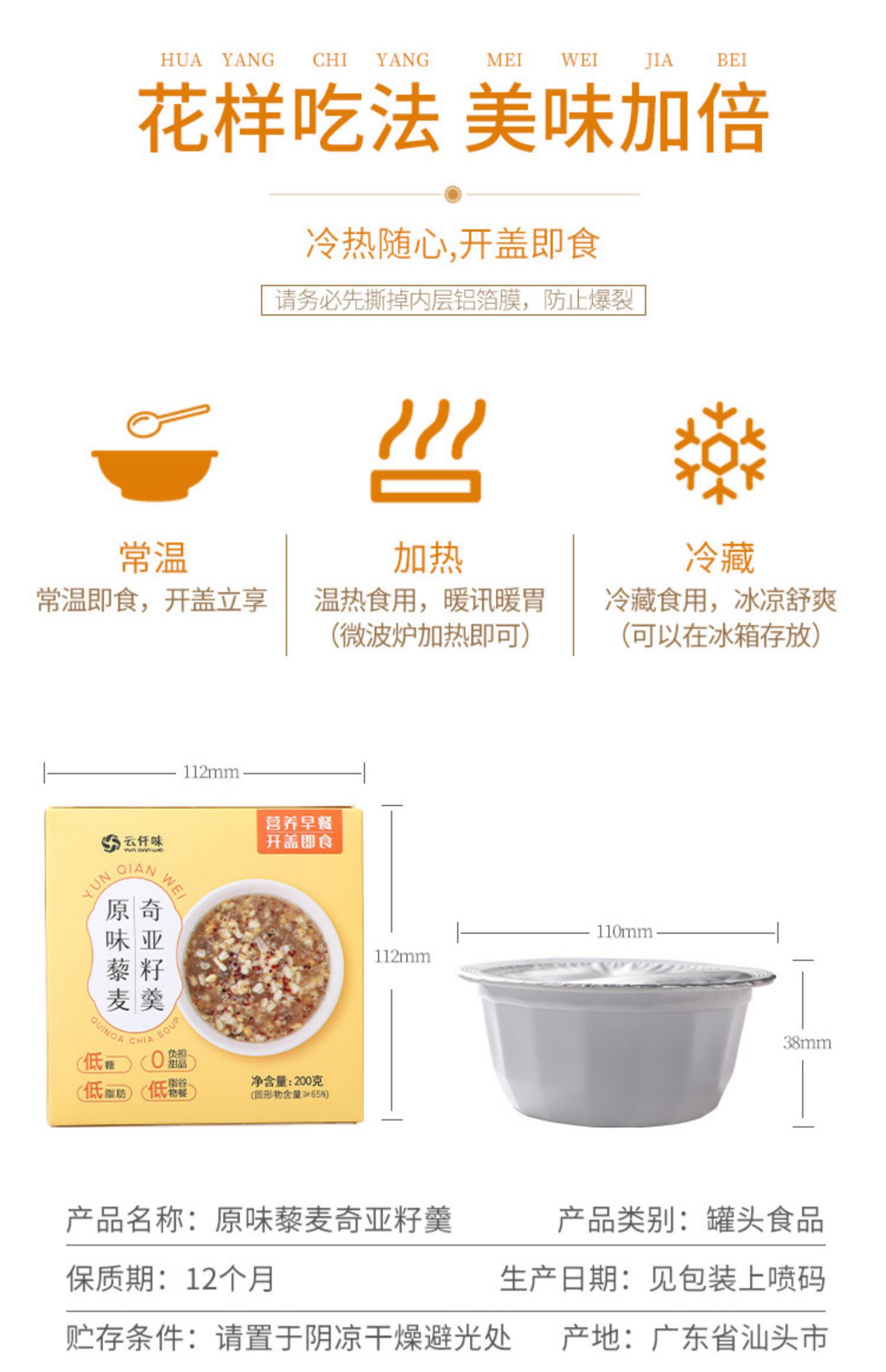 云仟味牌原味藜麦奇亚籽羹200g/盒