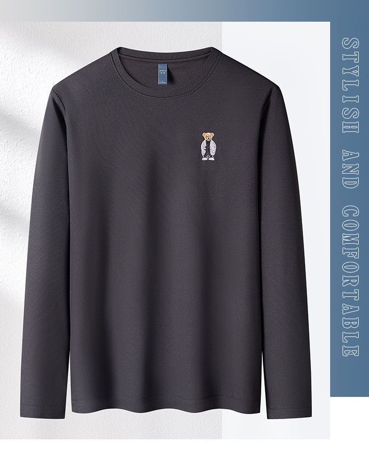 【小熊绣花】罗蒙春夏男装圆领t恤男长袖t恤男舒适男士t恤长袖上衣男体恤