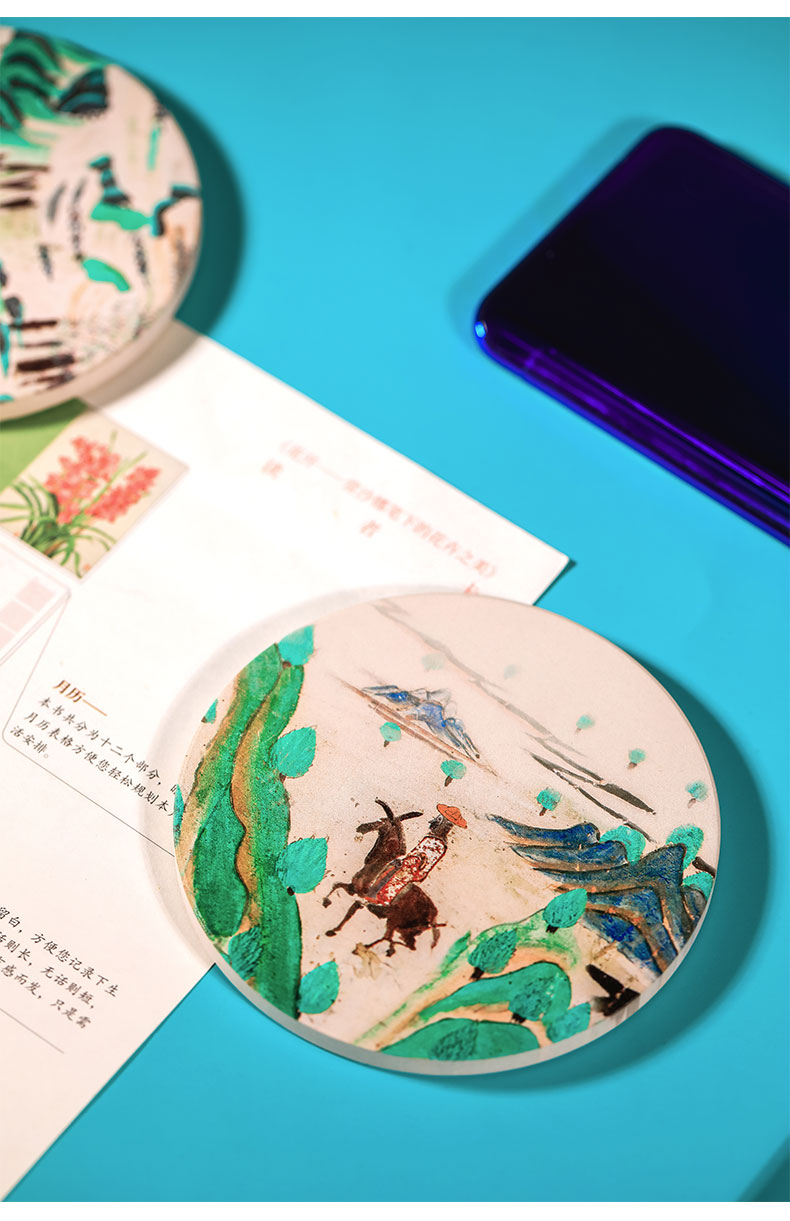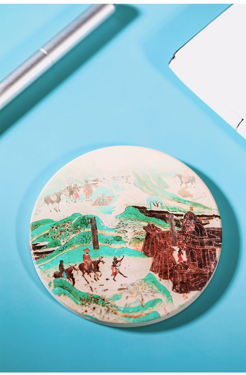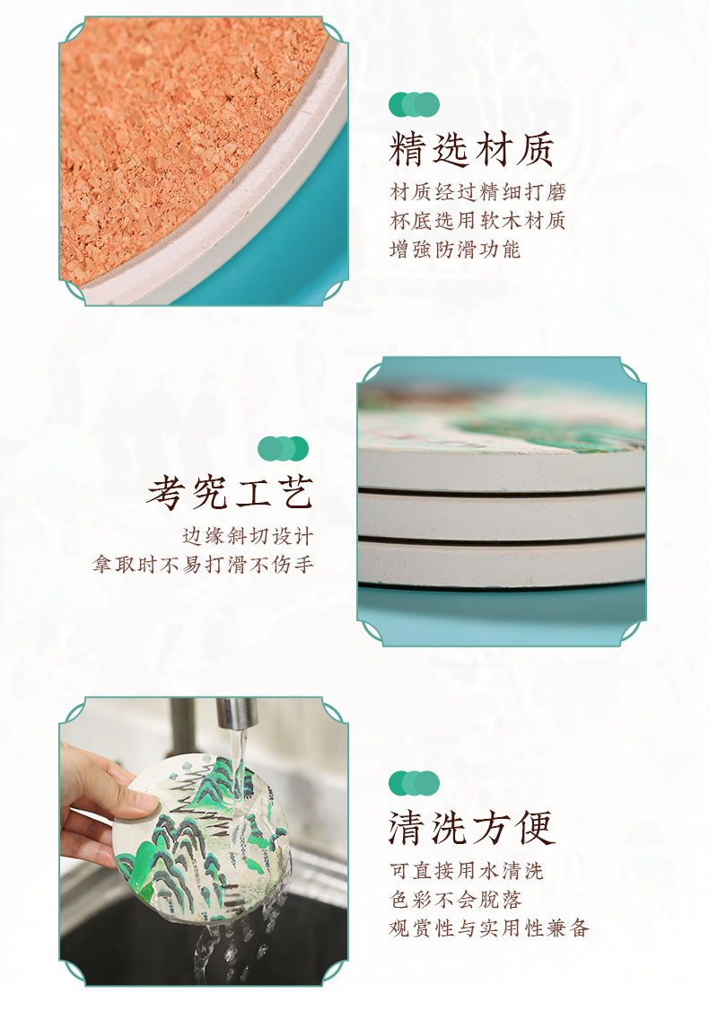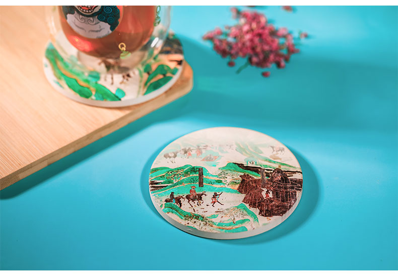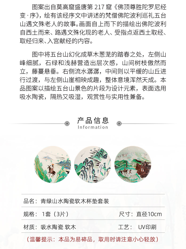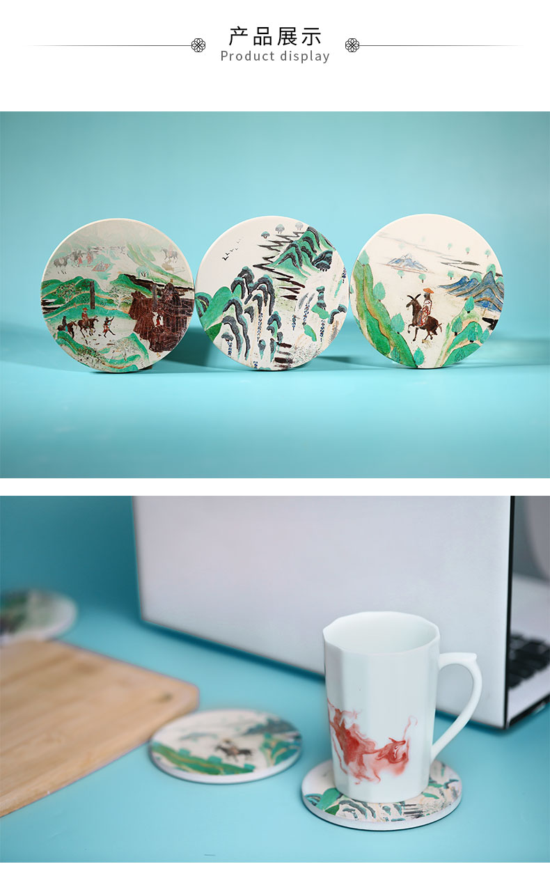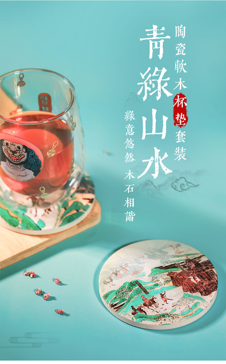 敦煌研究院青绿山水吸水陶瓷杯垫隔热垫礼品生日礼物三件装