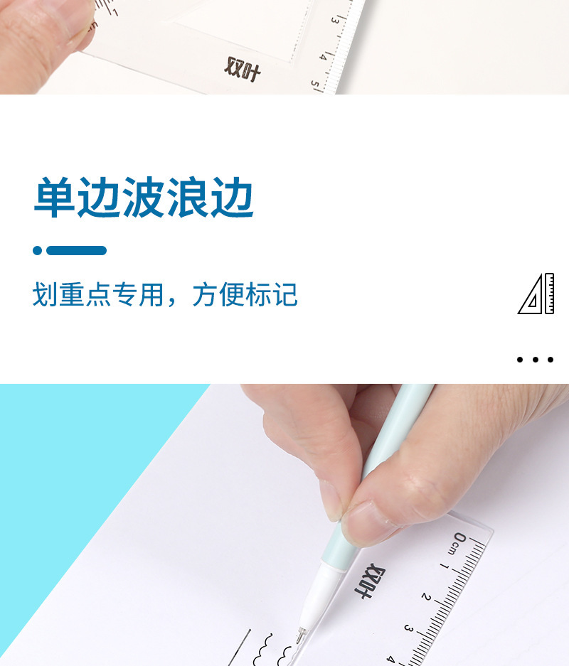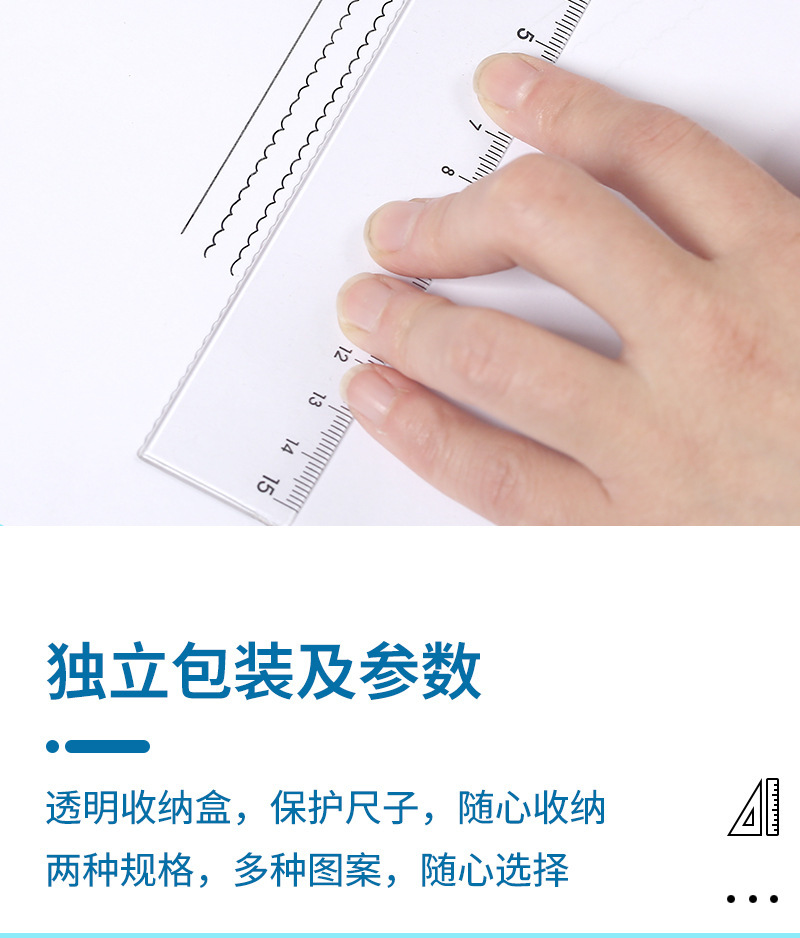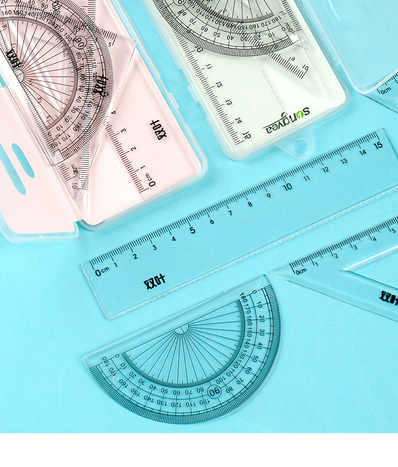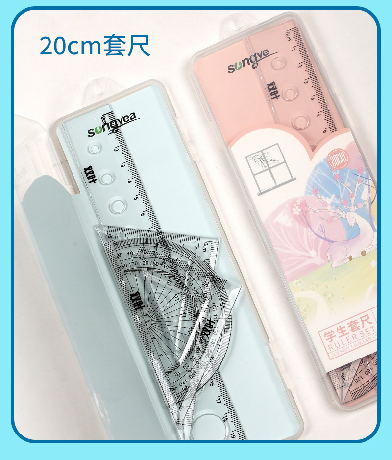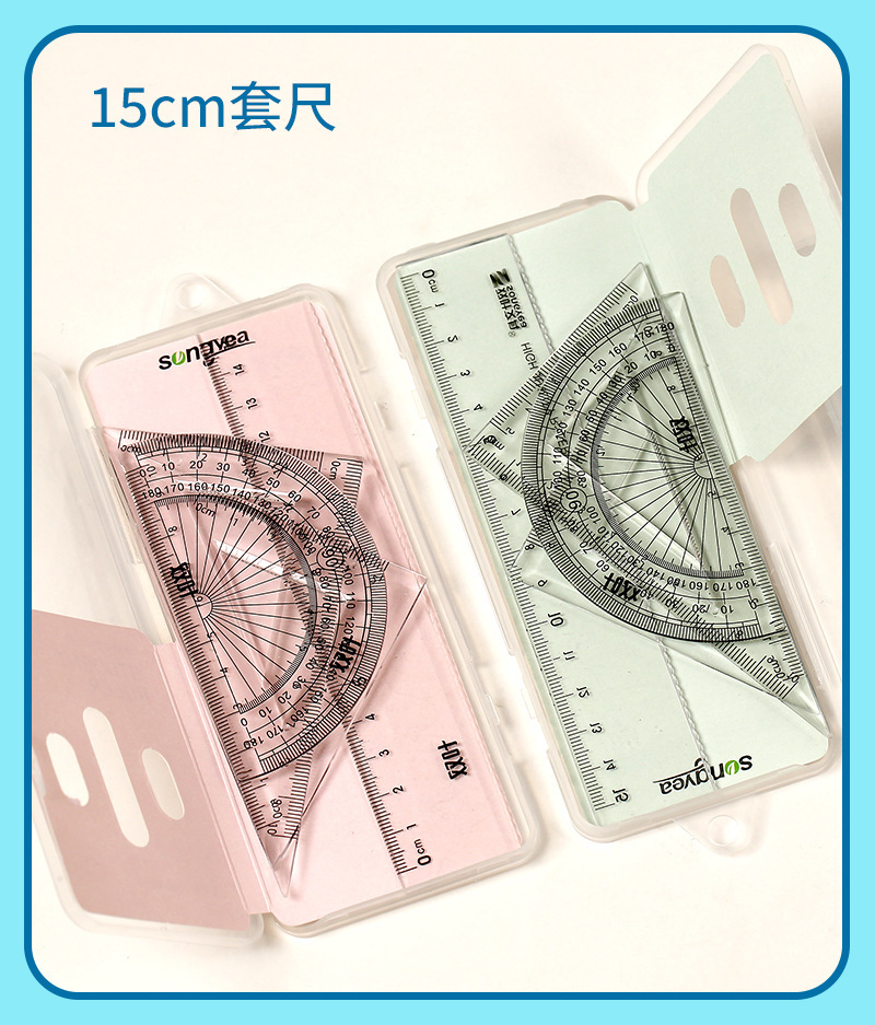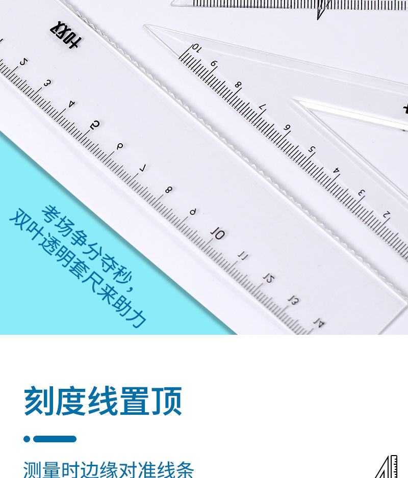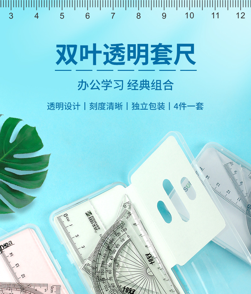 【开学季!双叶透明套尺】盒装套尺4件套;15cm尺20cm尺子带波浪线。考试套装,学生奖品文具,透明设计,刻度清晰