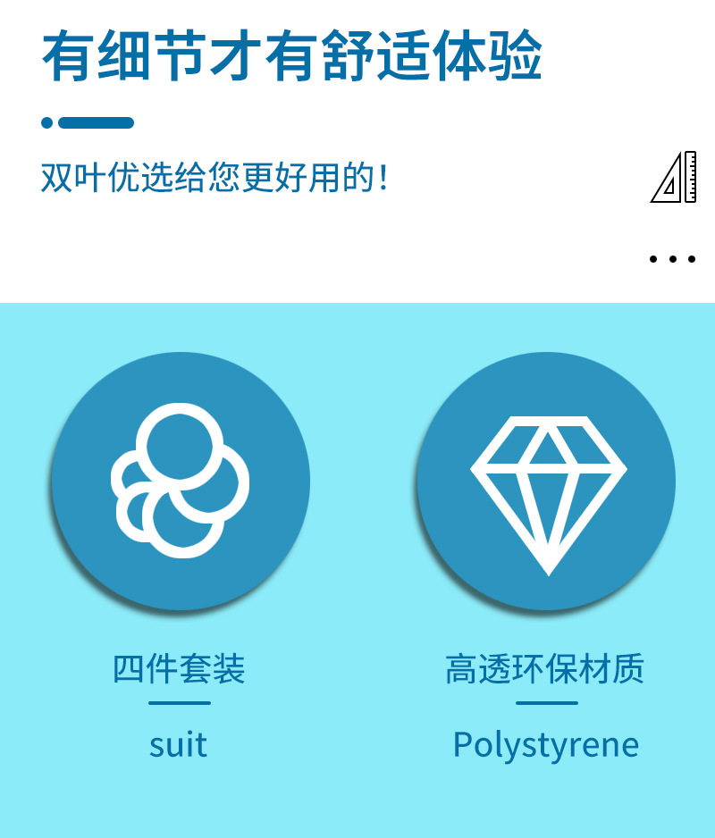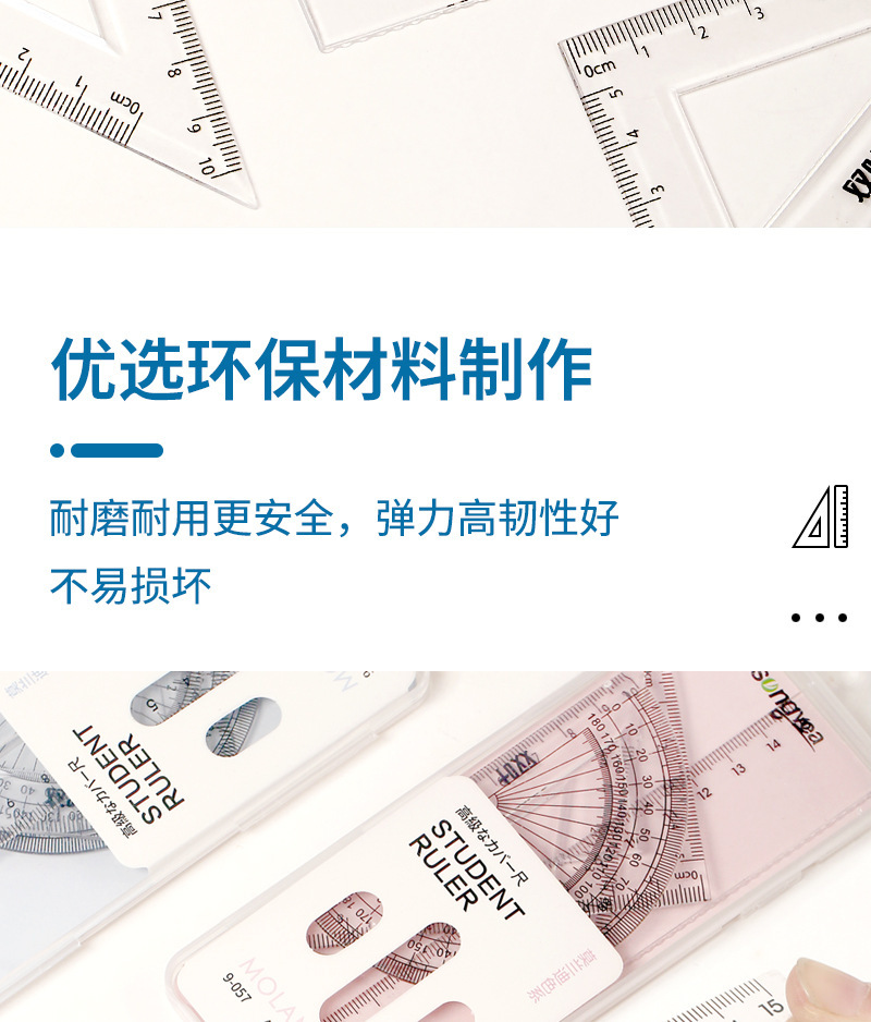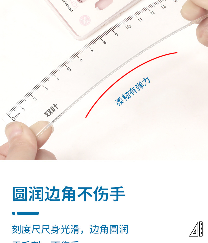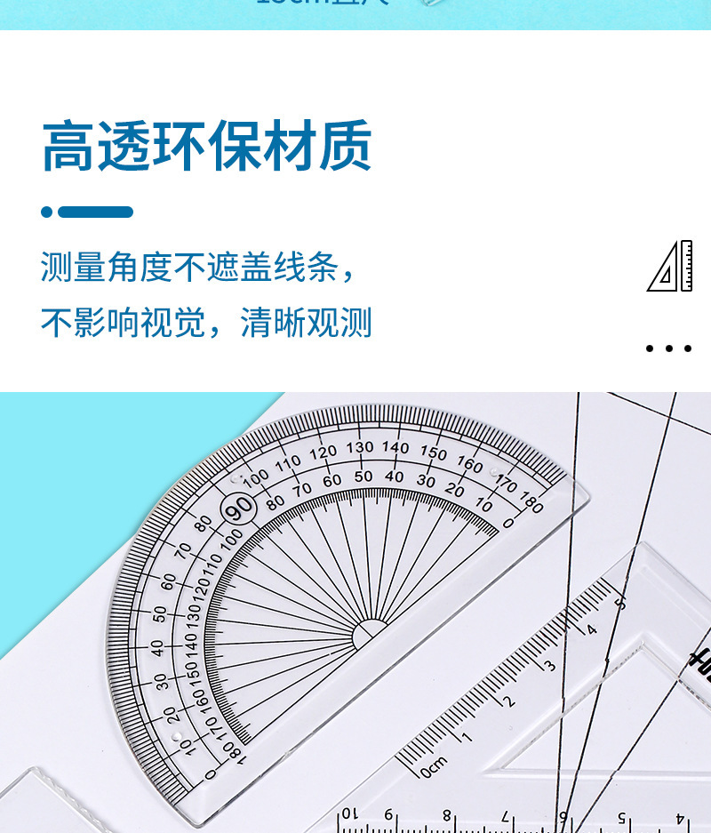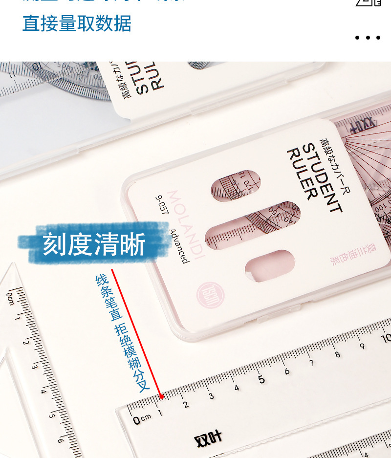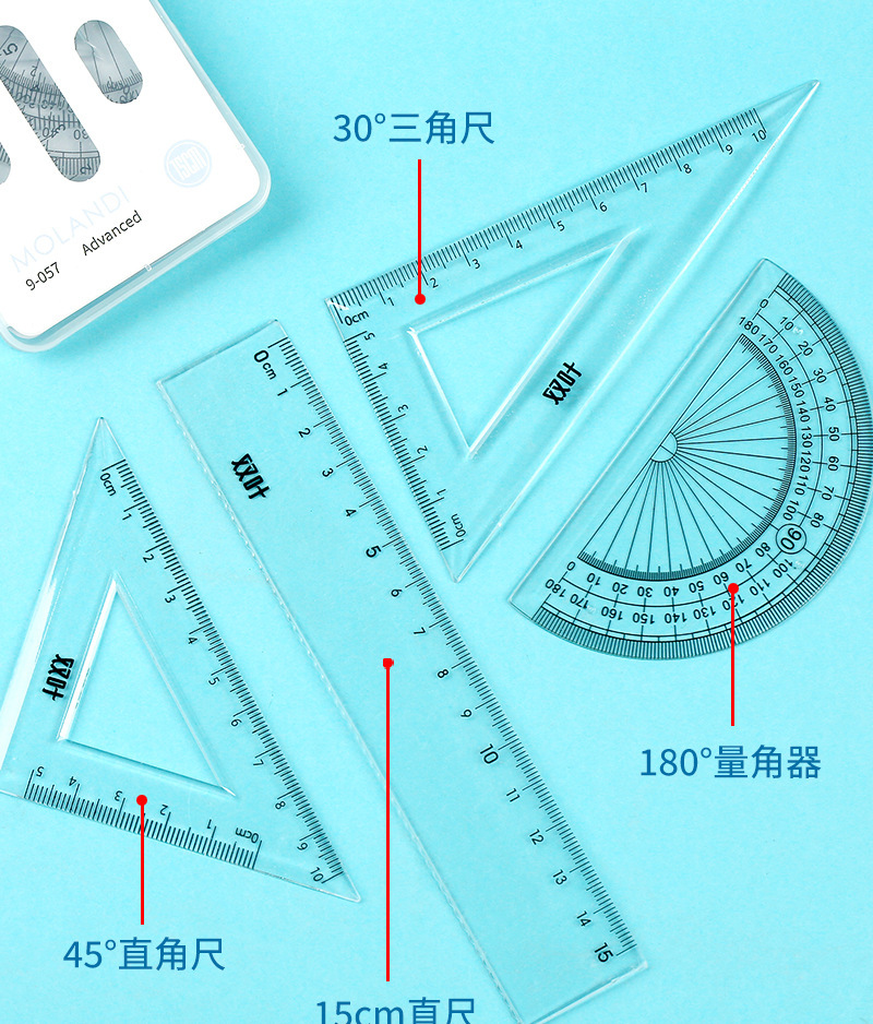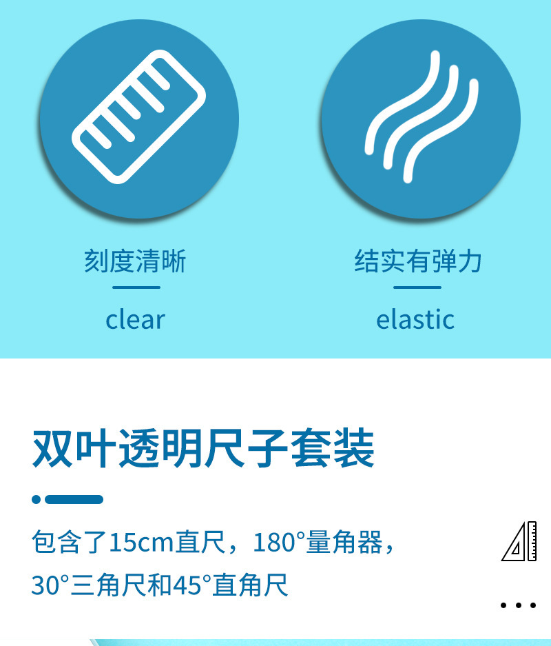 【开学季!双叶透明套尺】盒装套尺4件套;15cm尺20cm尺子带波浪线。考试套装,学生奖品文具,透明设计,刻度清晰