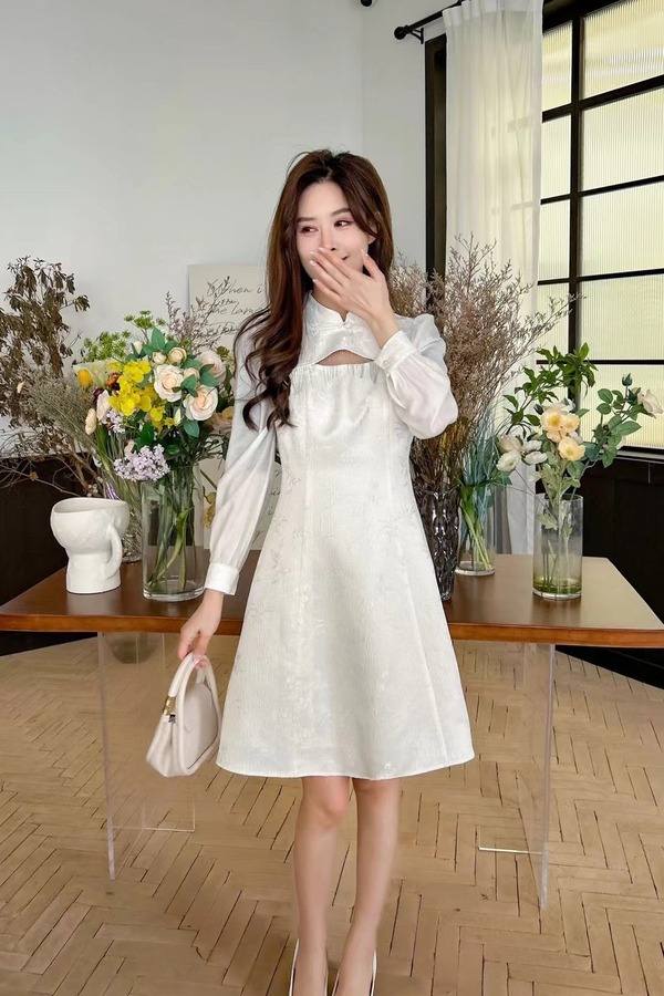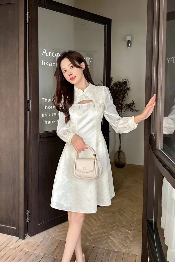 Le Malene 白色新中式流苏镂空连衣裙 19837