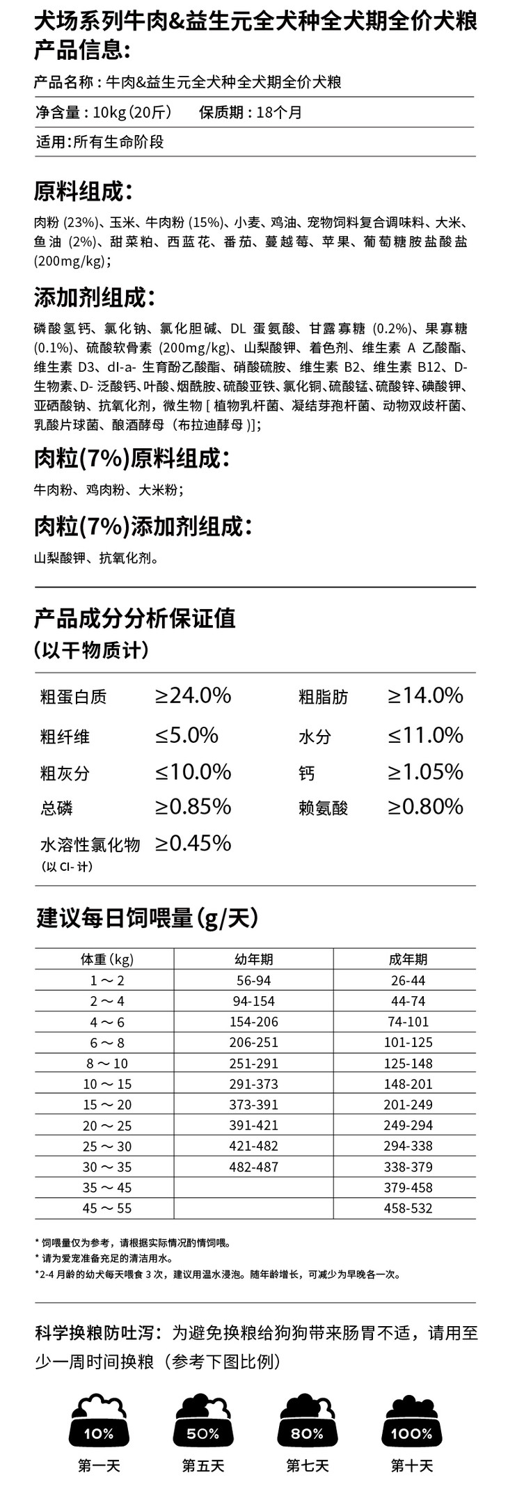 牛肉益生元20斤 全犬期通用粮 强骨护胃