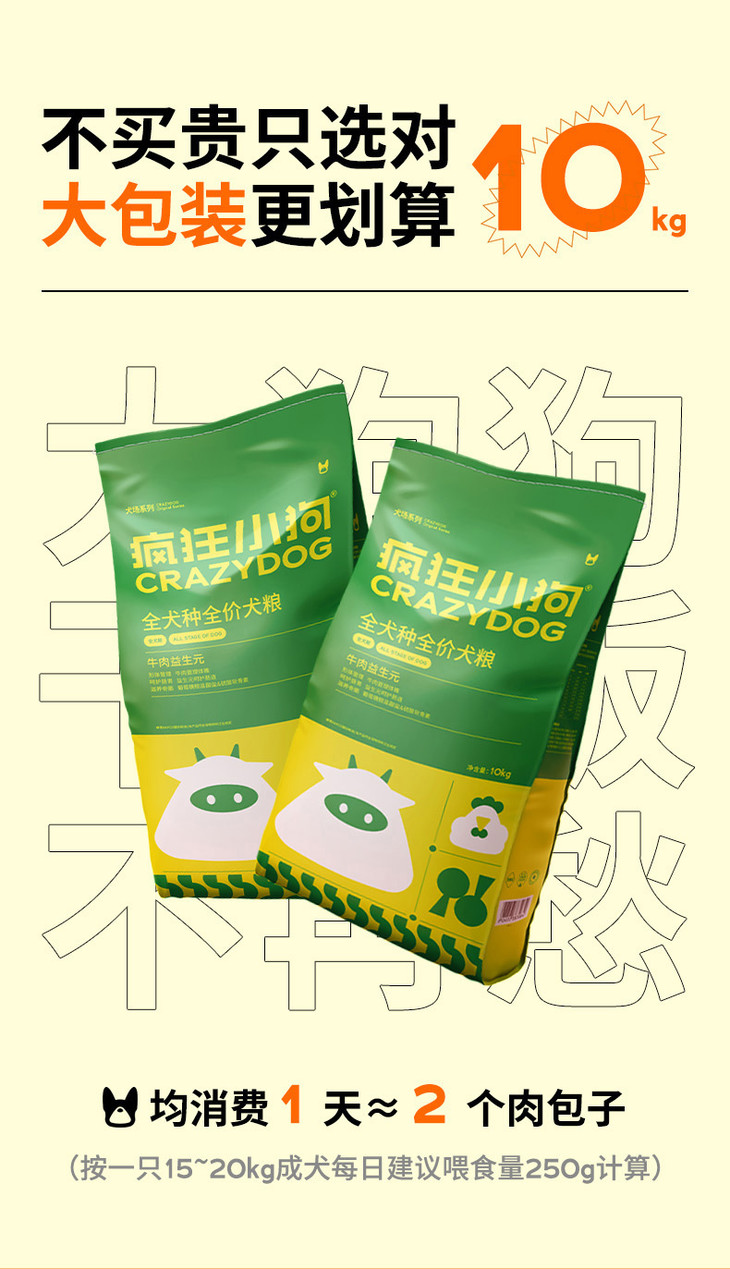 | 品牌: 疯狂小狗 | 品名: 全犬期牛肉味犬粮 10000g |