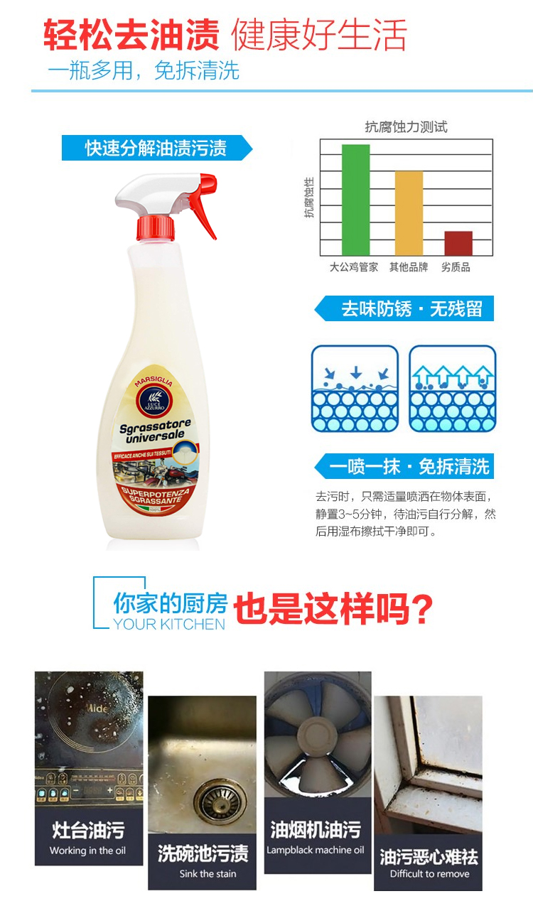 【中欧班列】意大利LUCE AZZURRO菲斯安娜多功能油污净 原装进口厨房多功能油烟机油污净 750ML/瓶