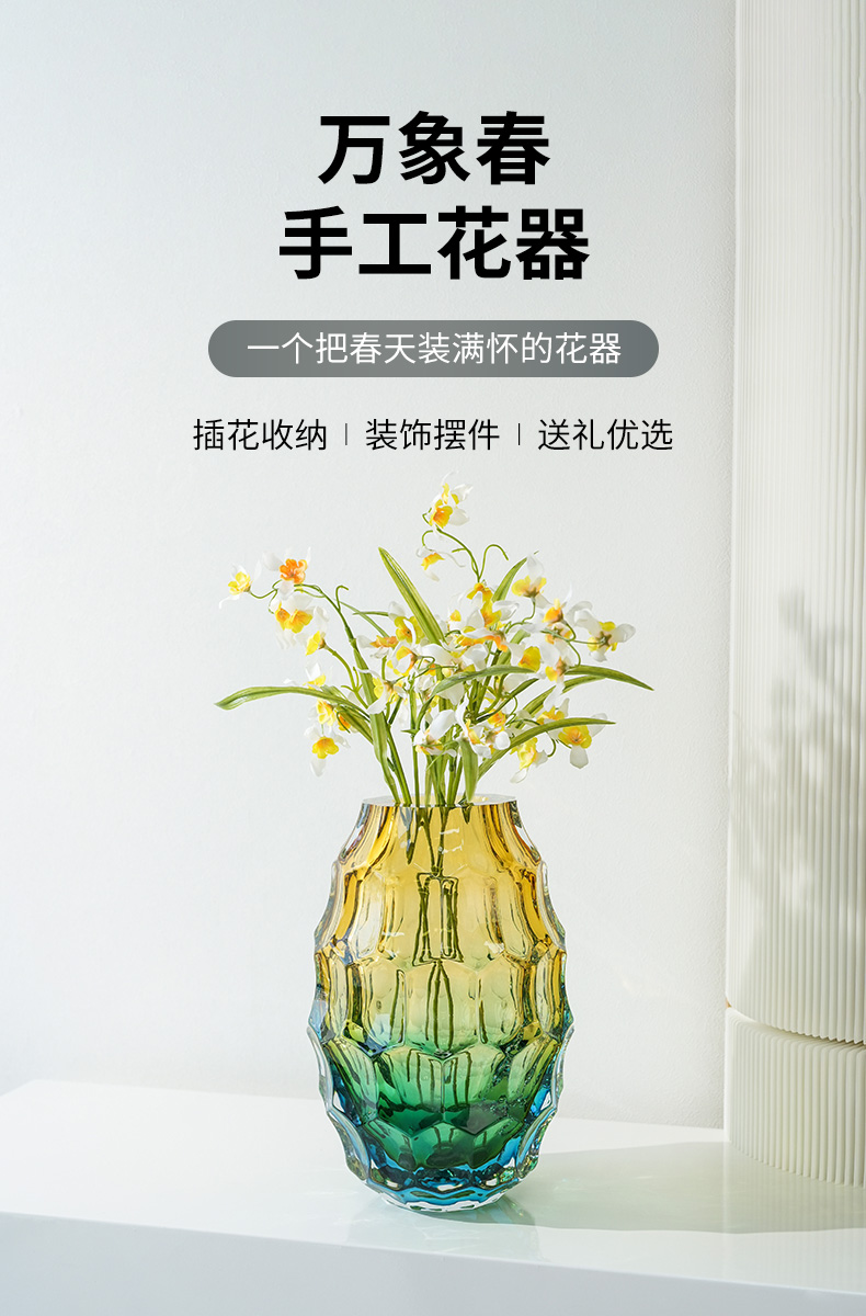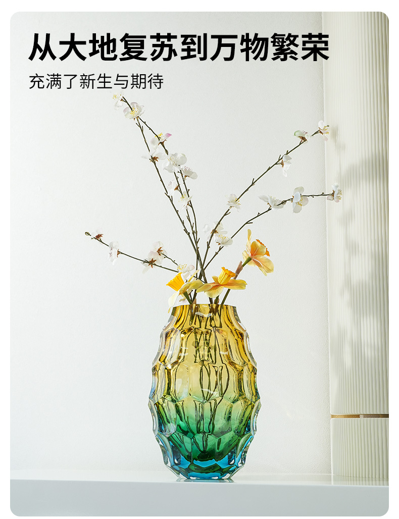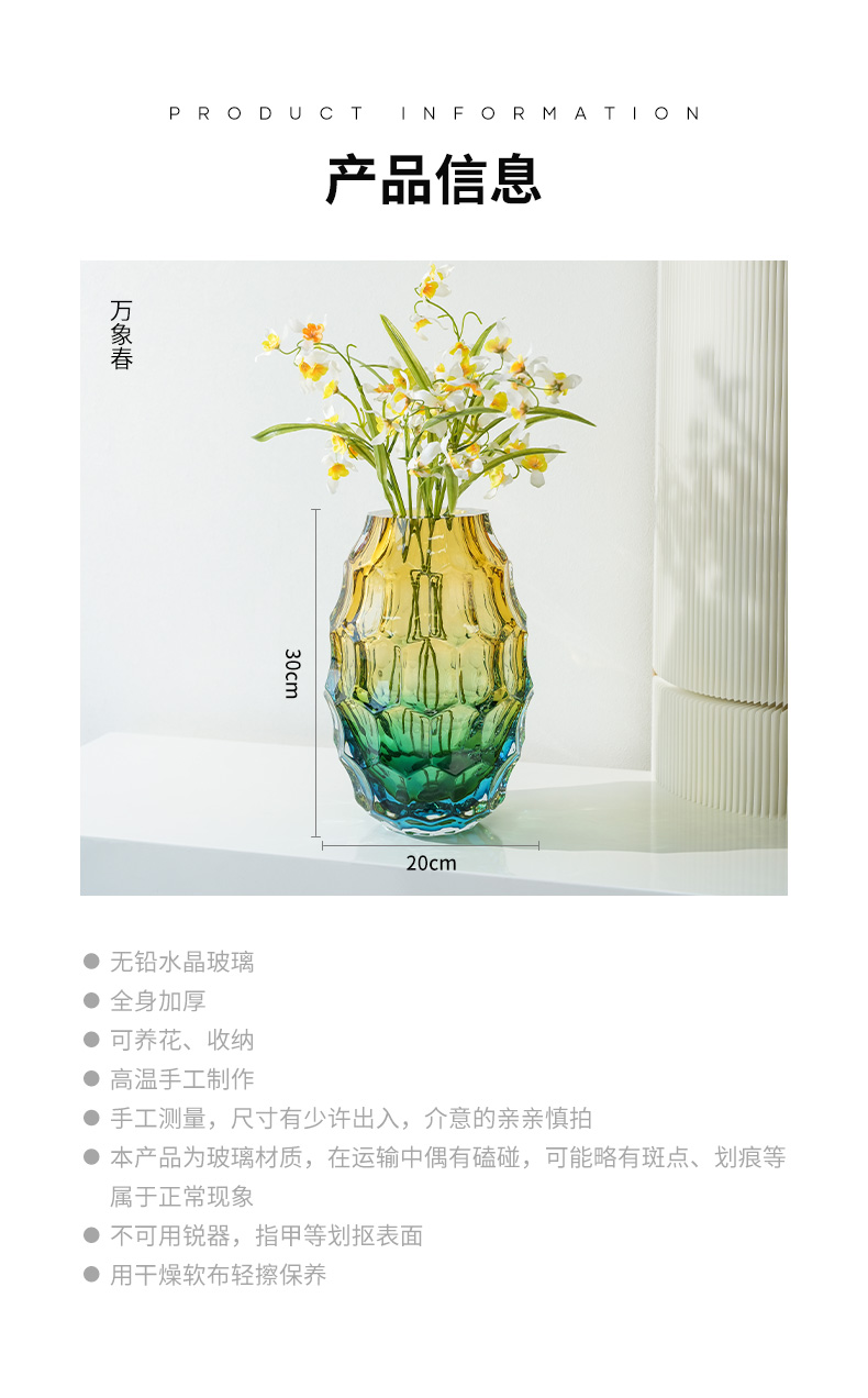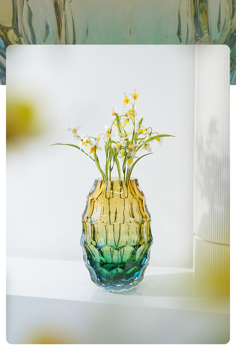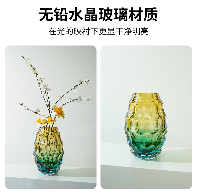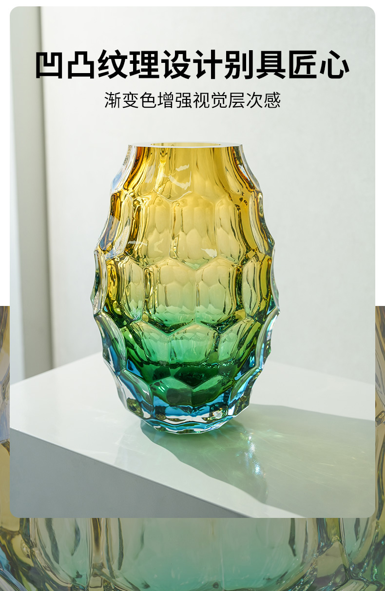 JZ晶尊考尔莱琉璃花瓶金琥珀渐变色30cm