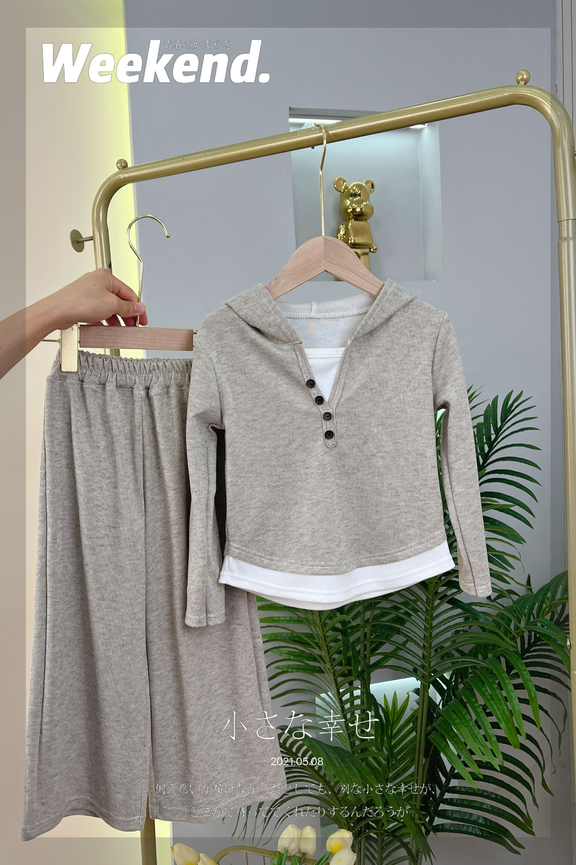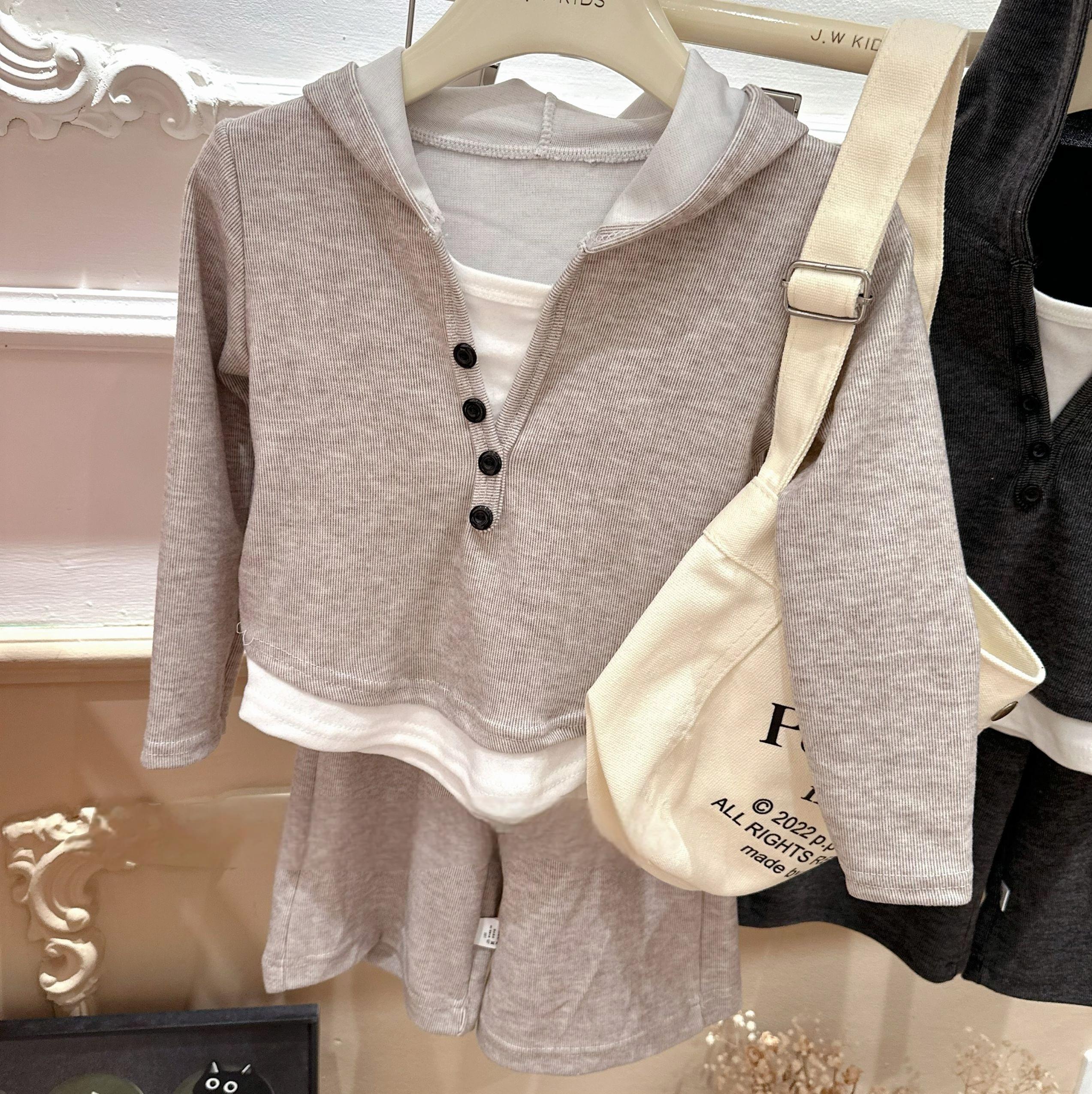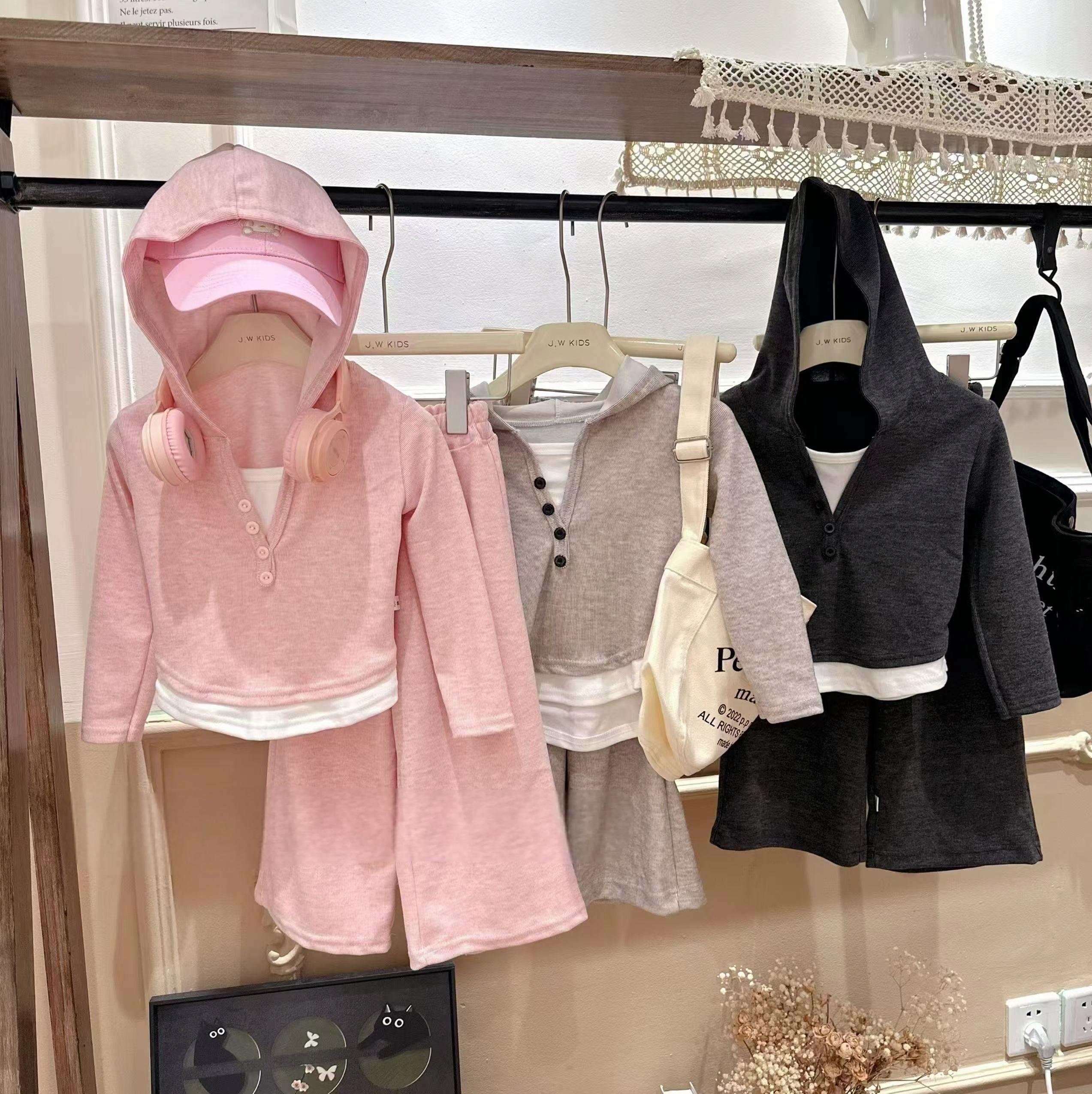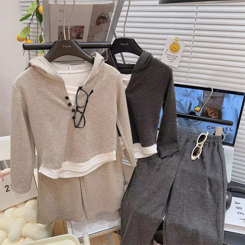 慕斯绒假两件连帽打底衫+阔腿裤秋季两件套套装儿童洋气