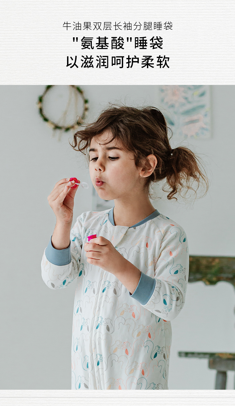 【Nest Designs】牛油果儿童双层长袖分腿睡袋