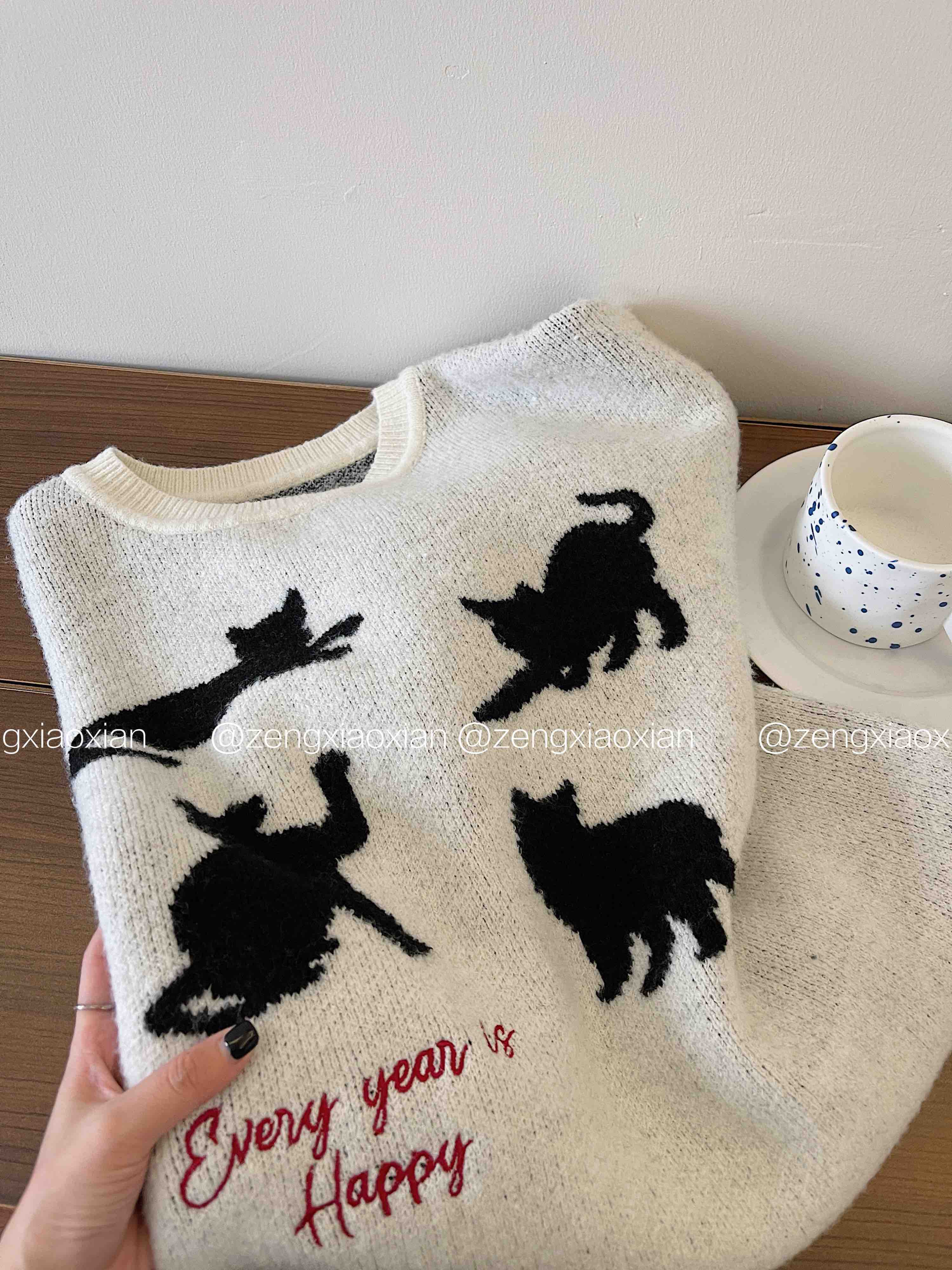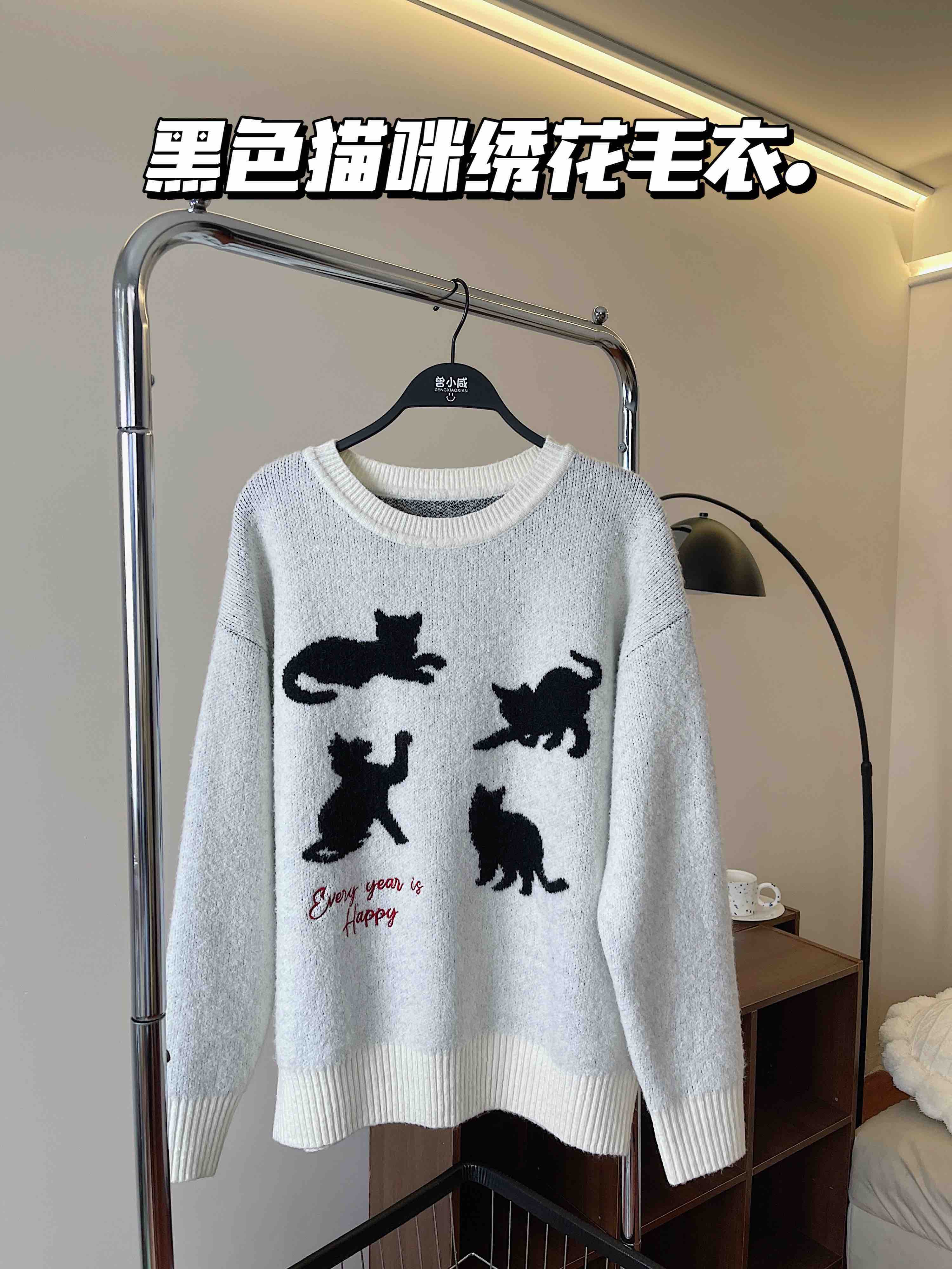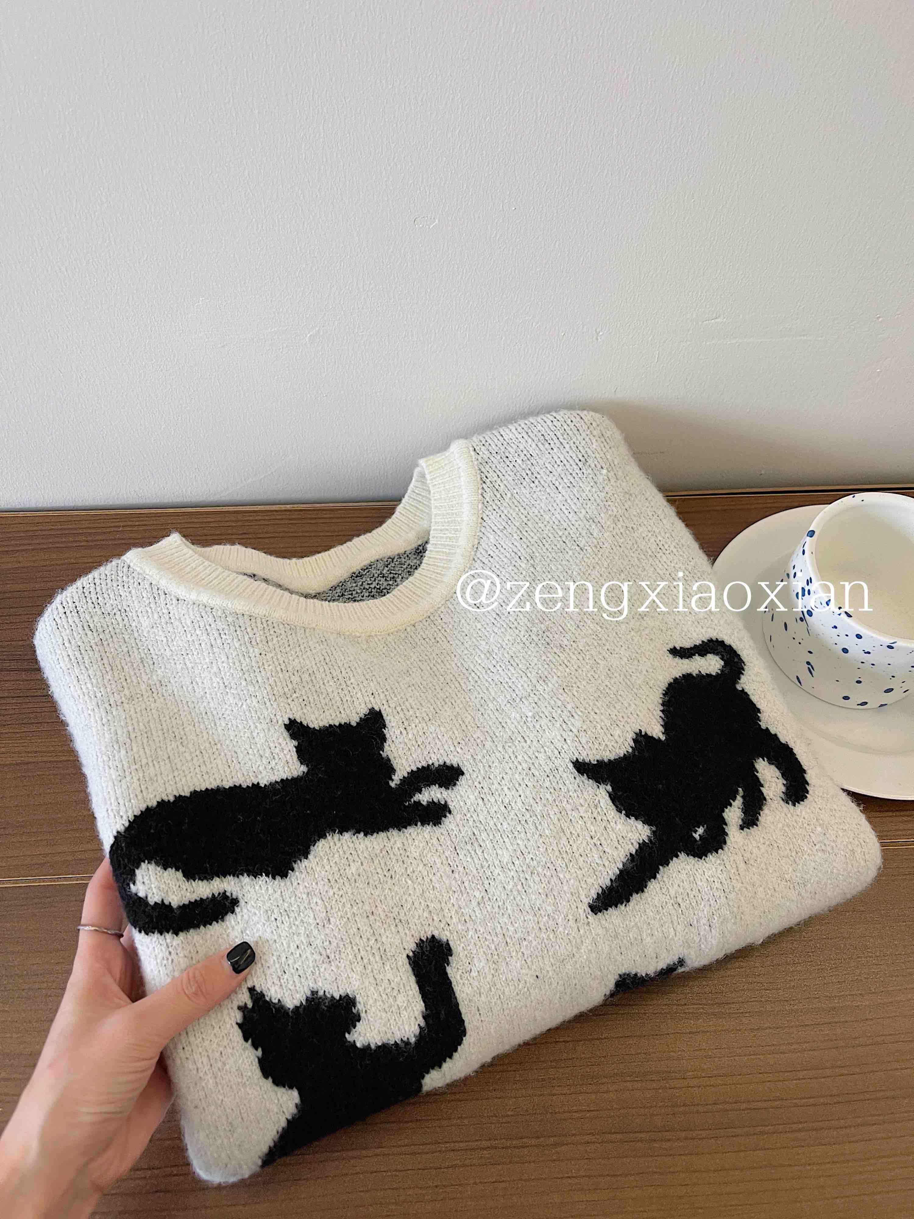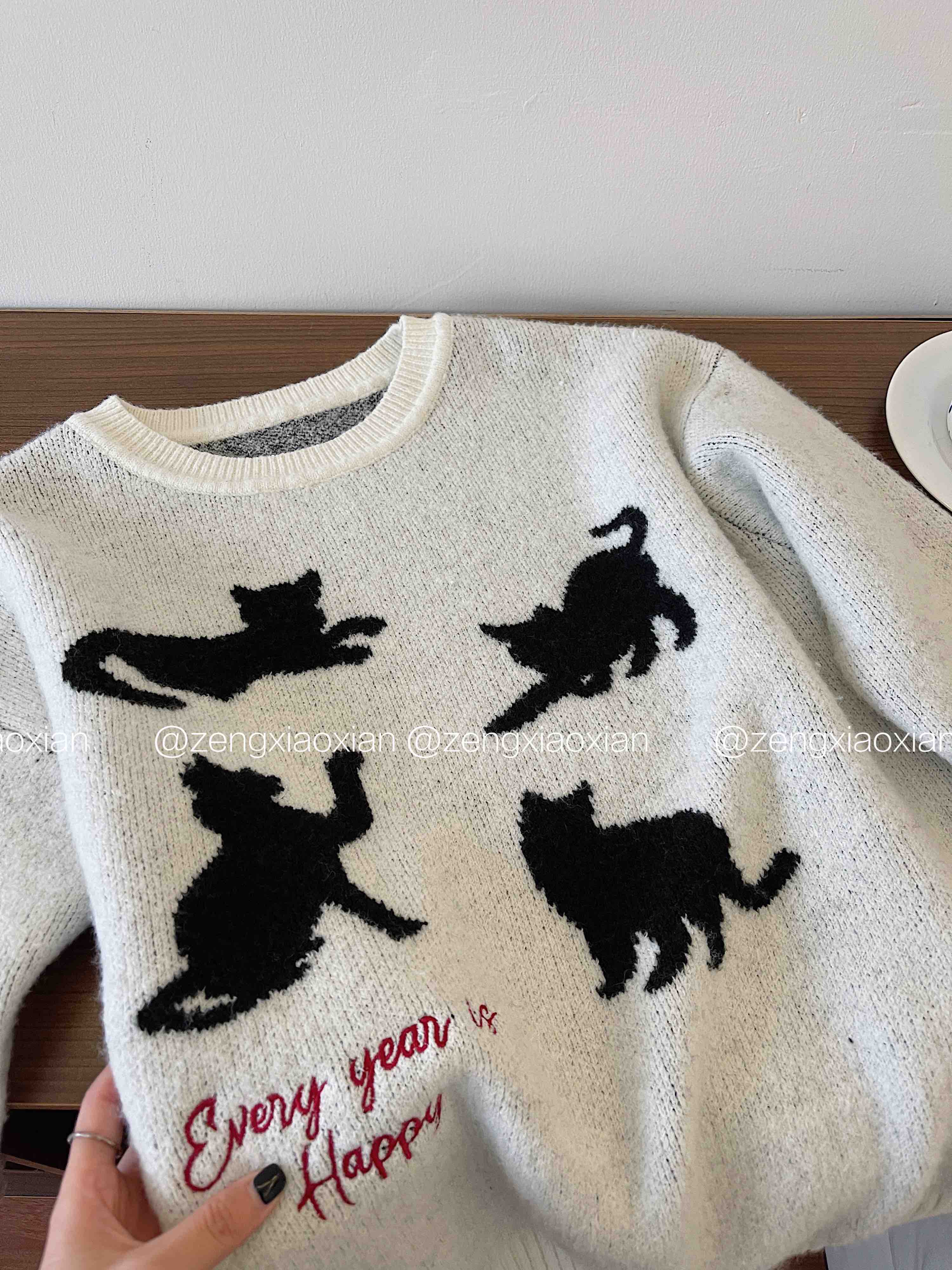 <曾小咸推荐> 黑色猫咪绣花毛衣